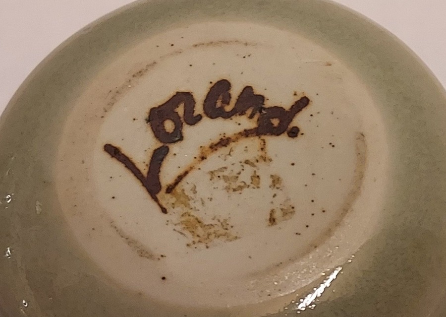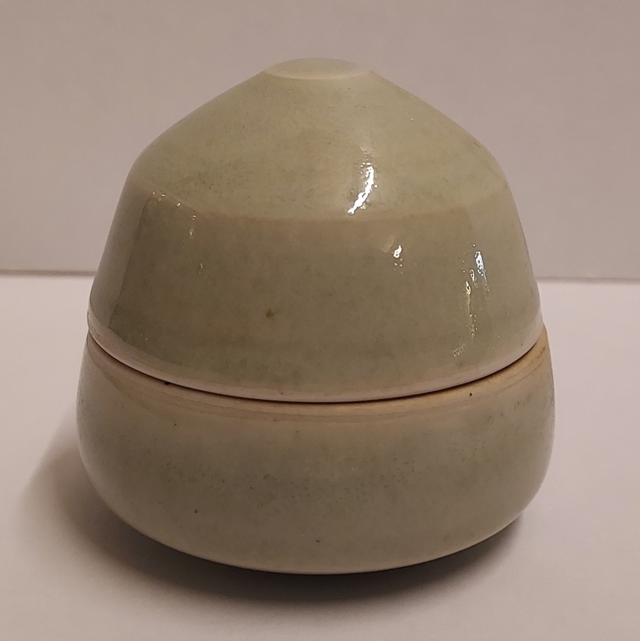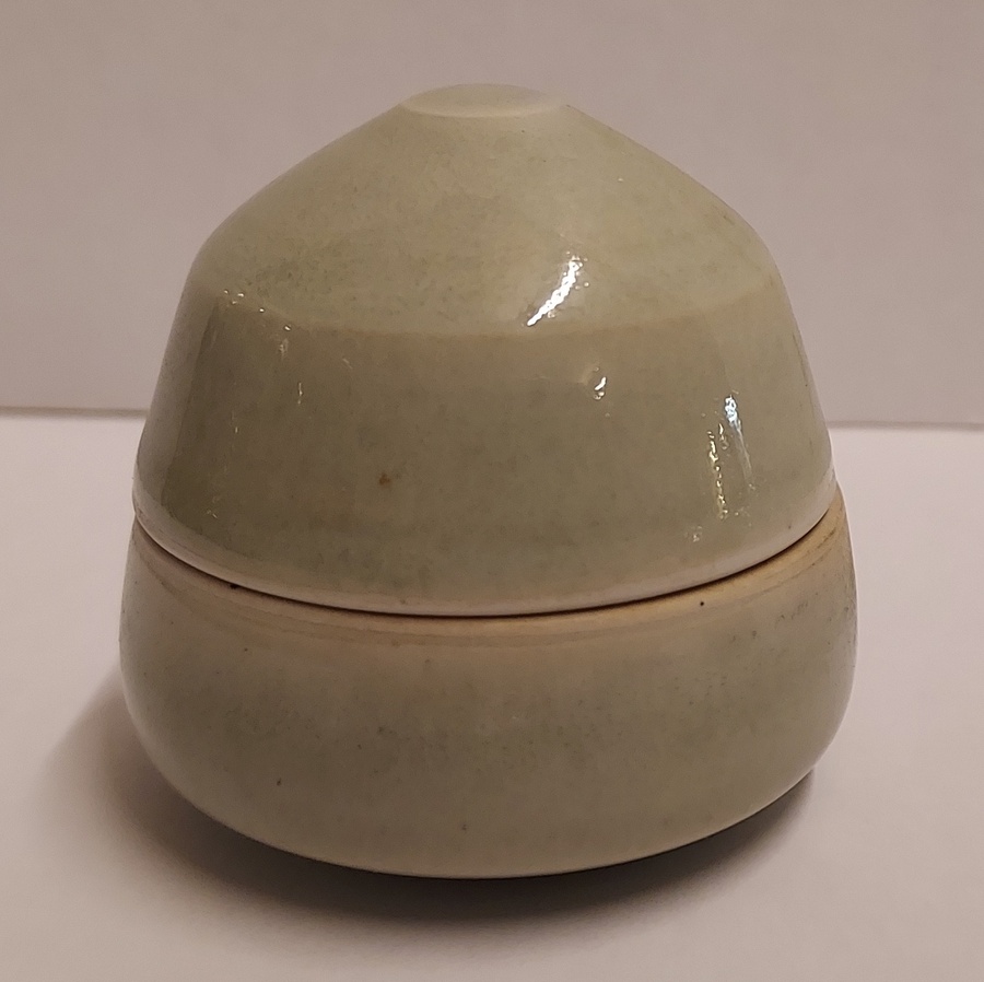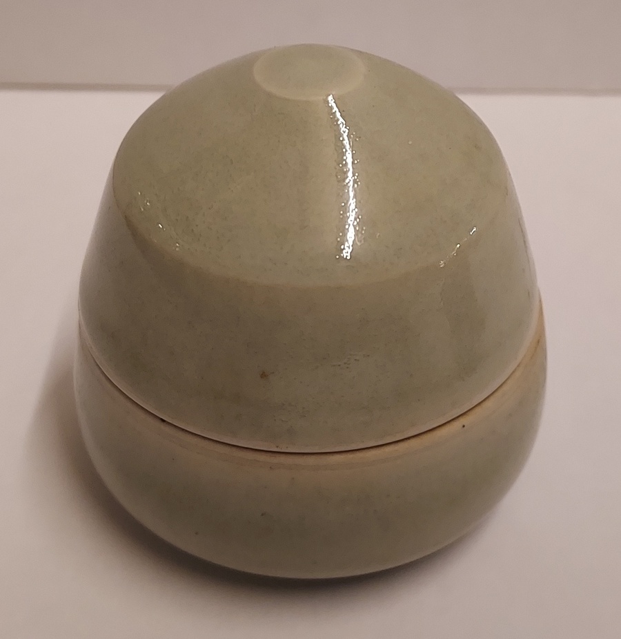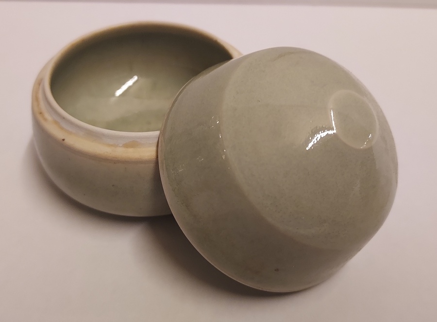 Petite boîte avec glaçure céladon. Signée sur le dessous.
