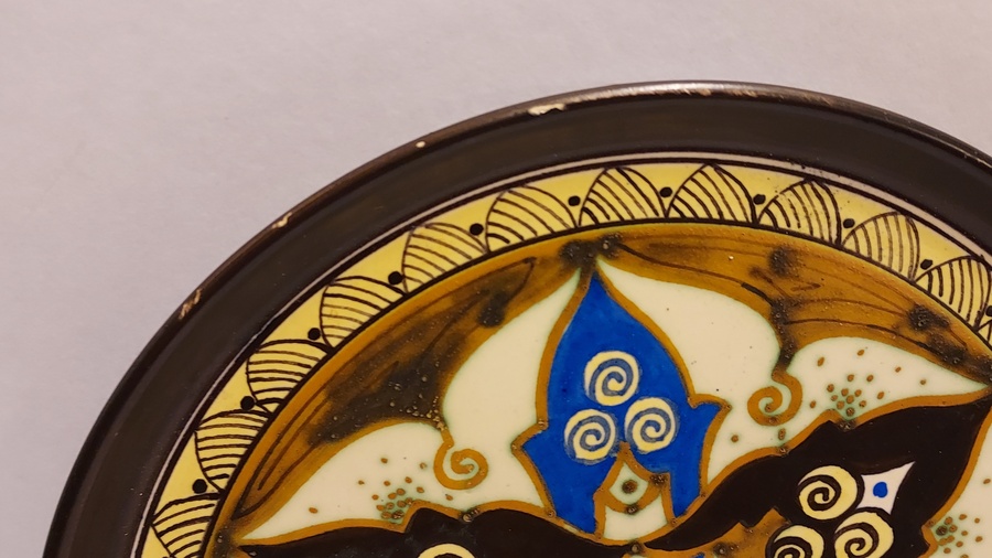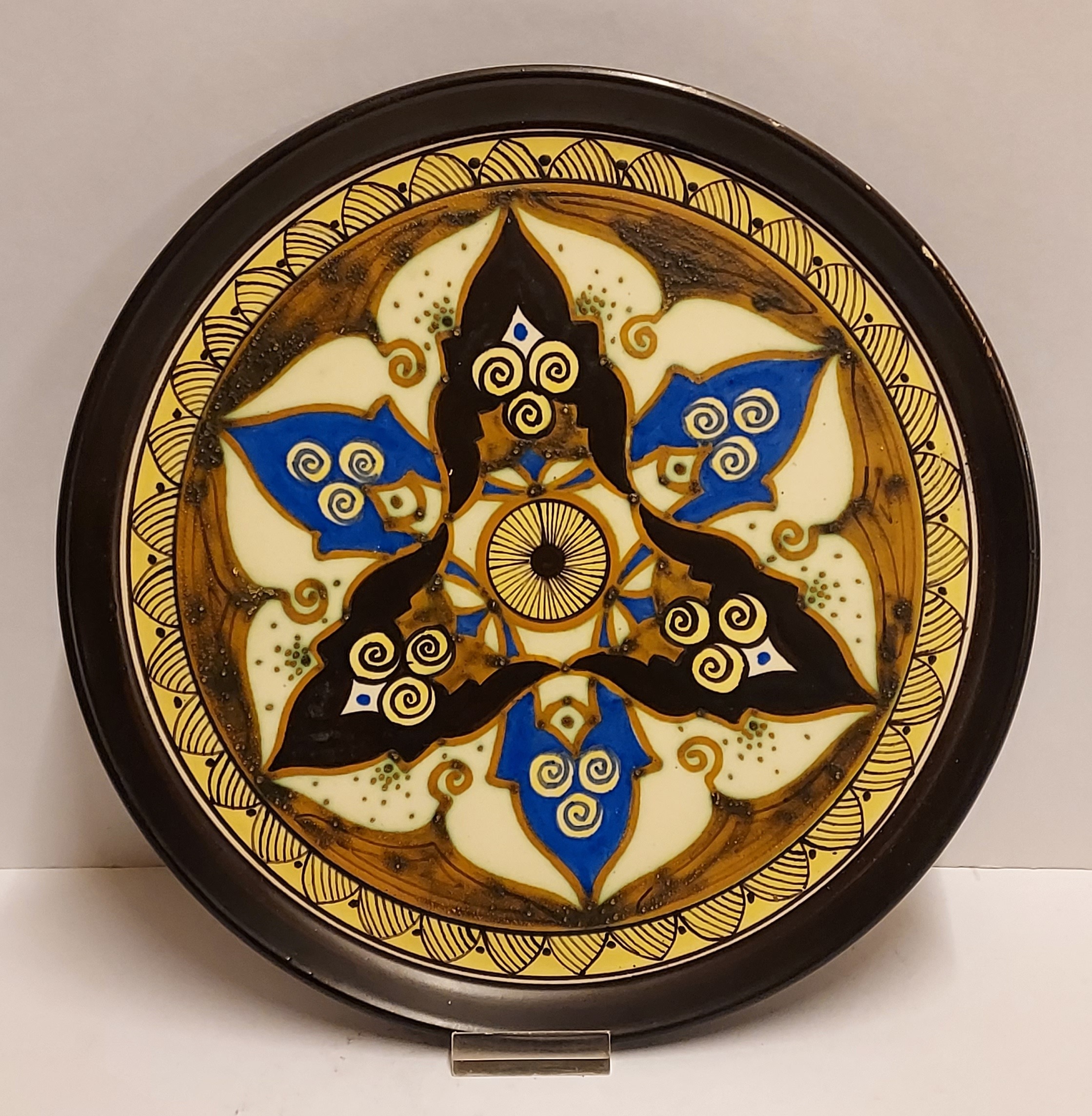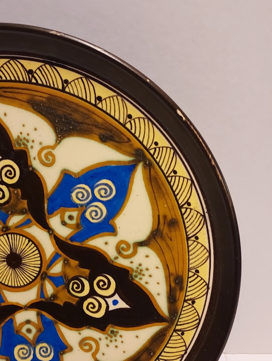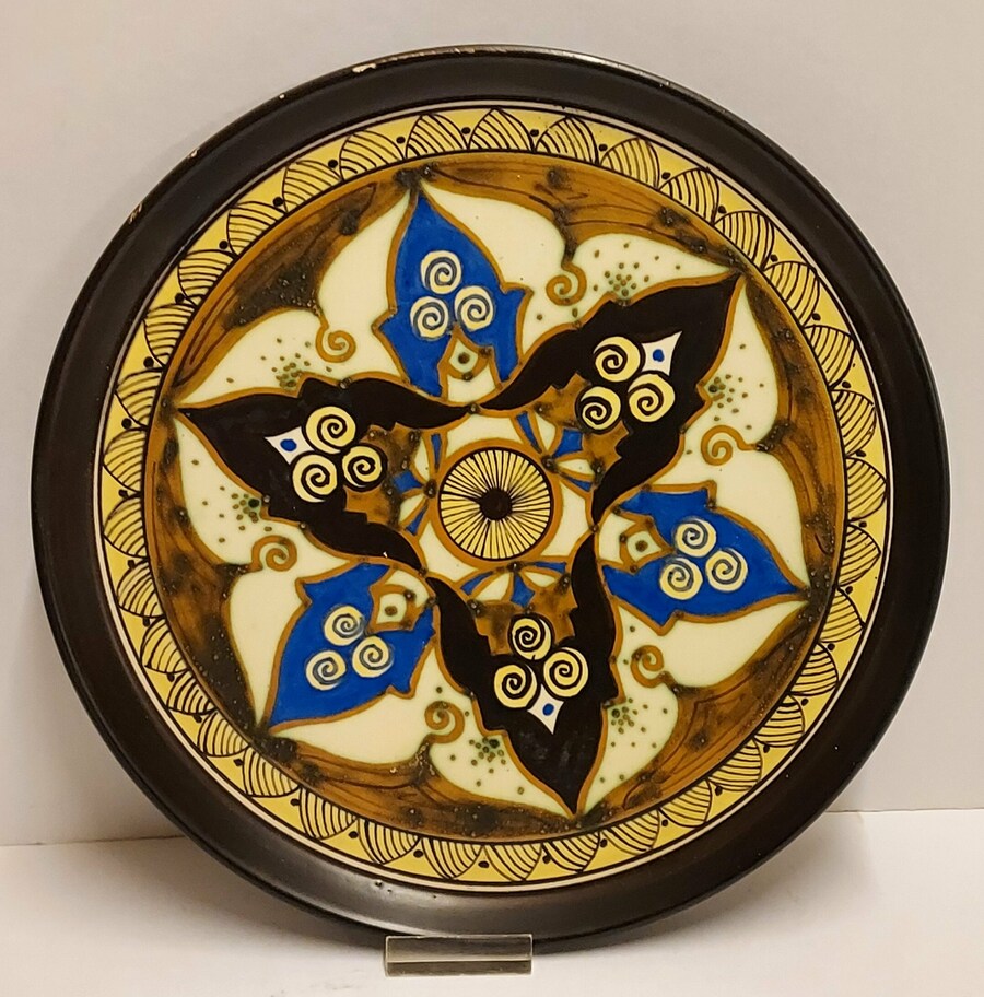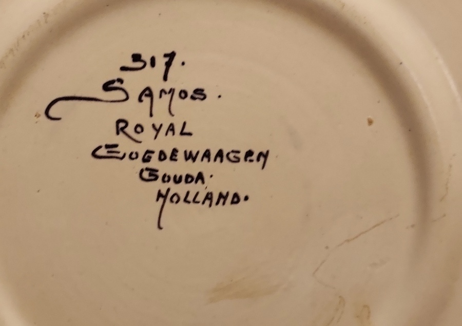 Plateau en faïence avec décoration polychrome. Marqué Samos sur le revers.