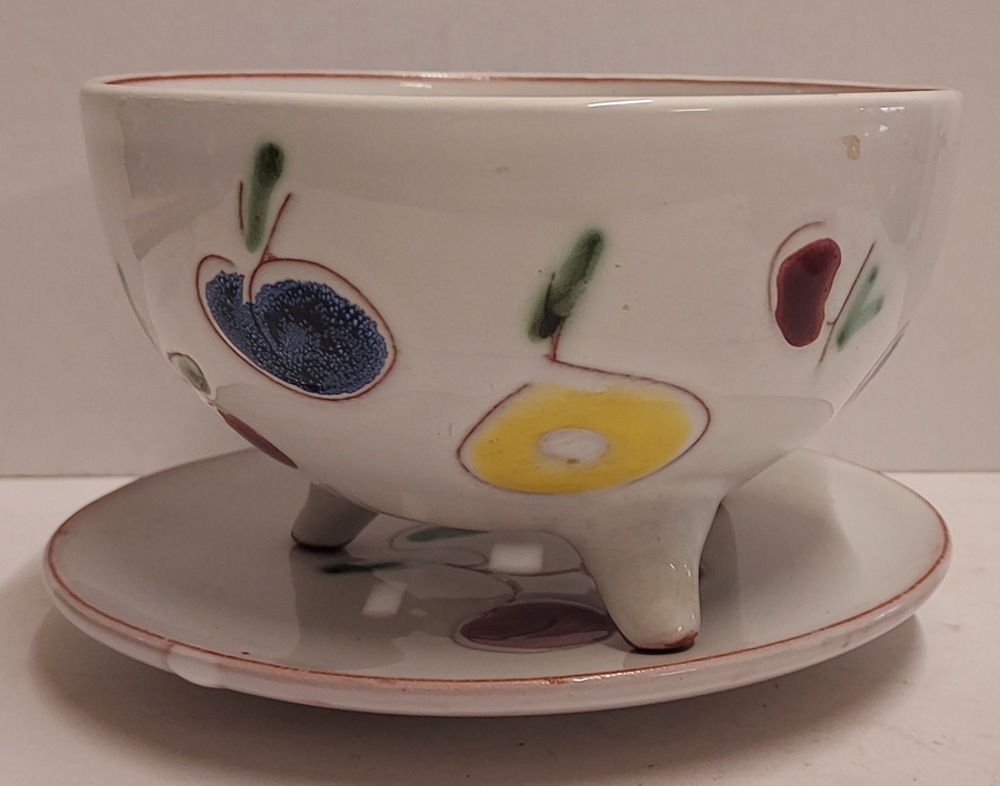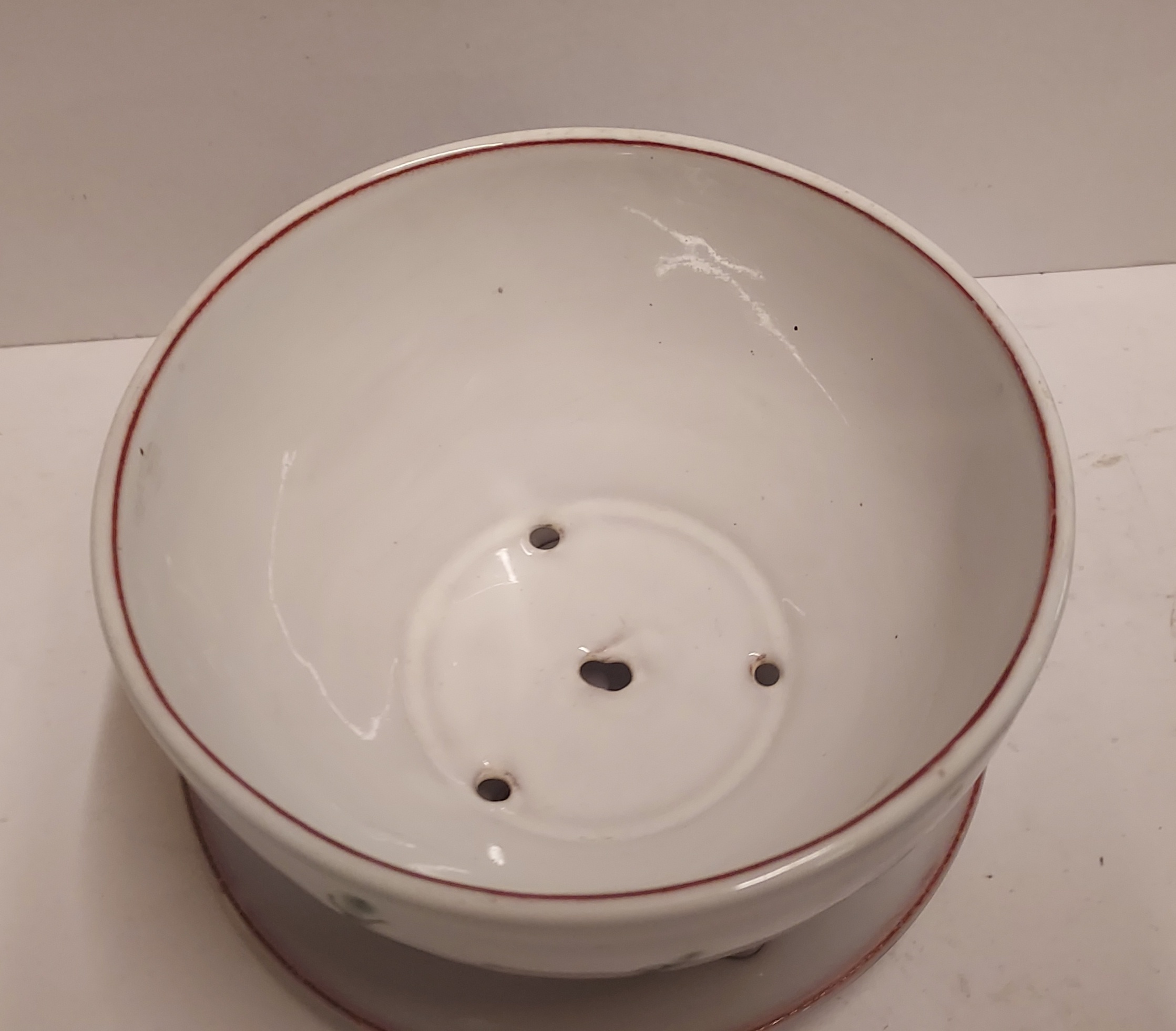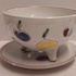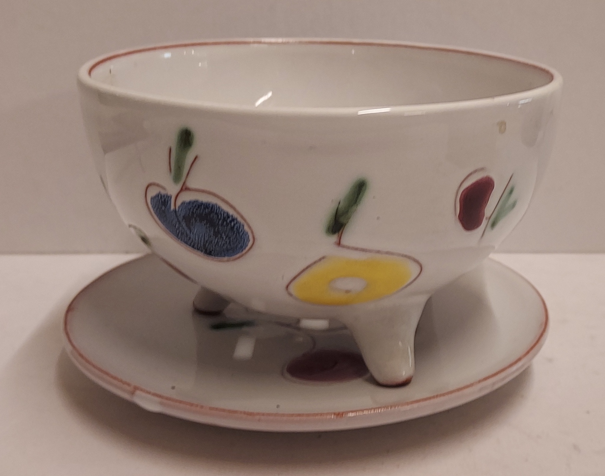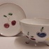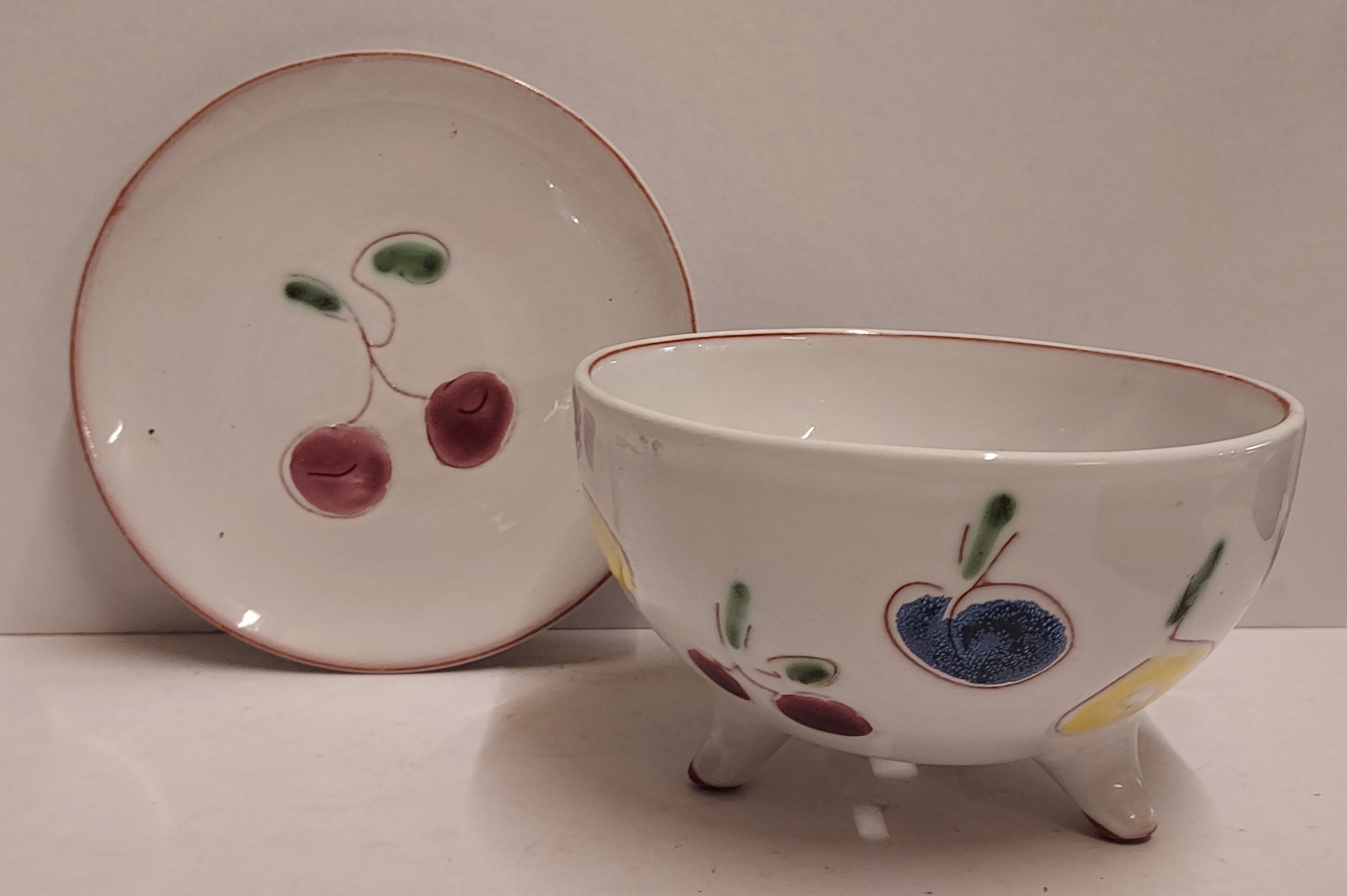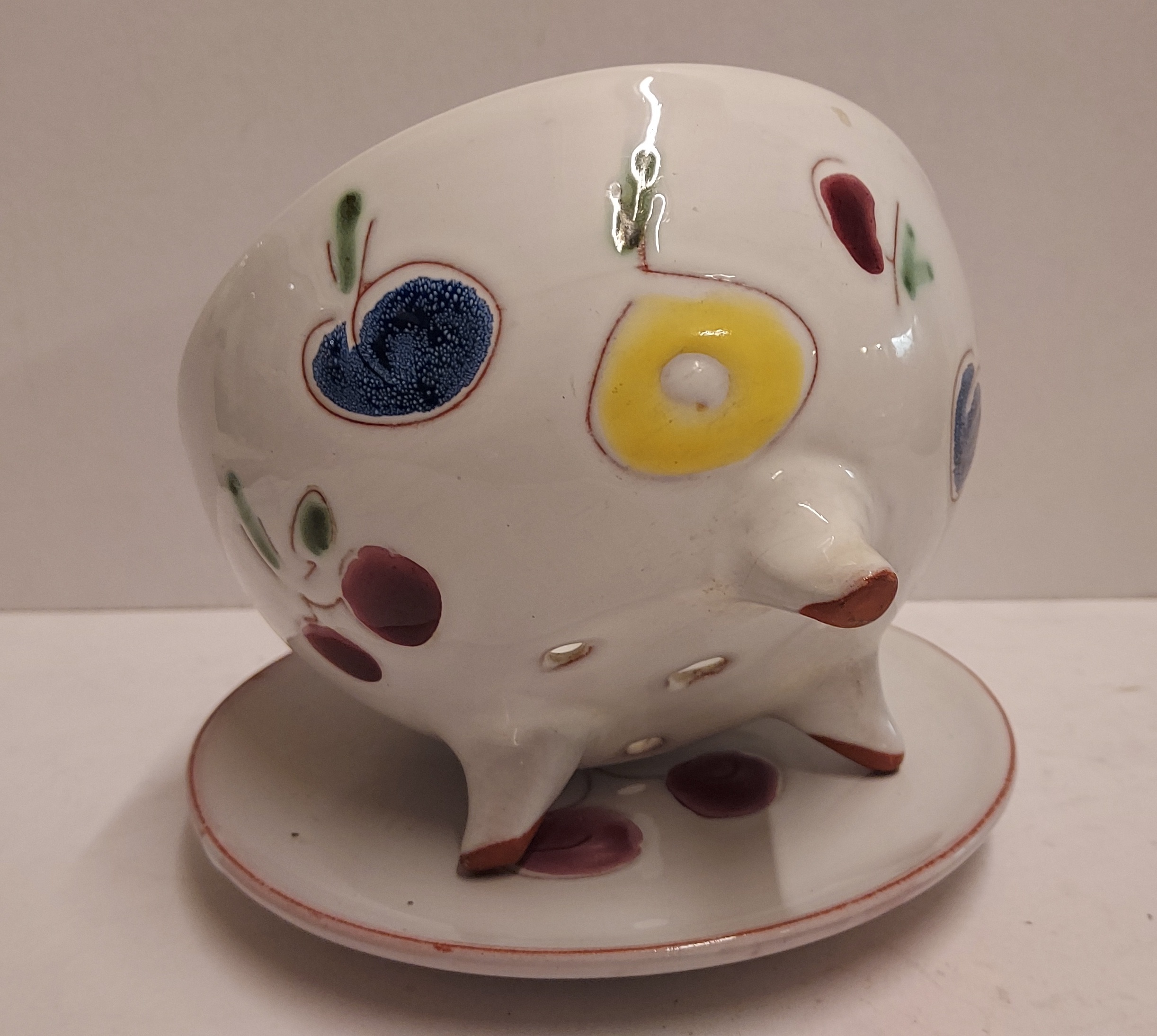 Terracotta avec glaçure d'étain et décoration de fruits. Non signé.