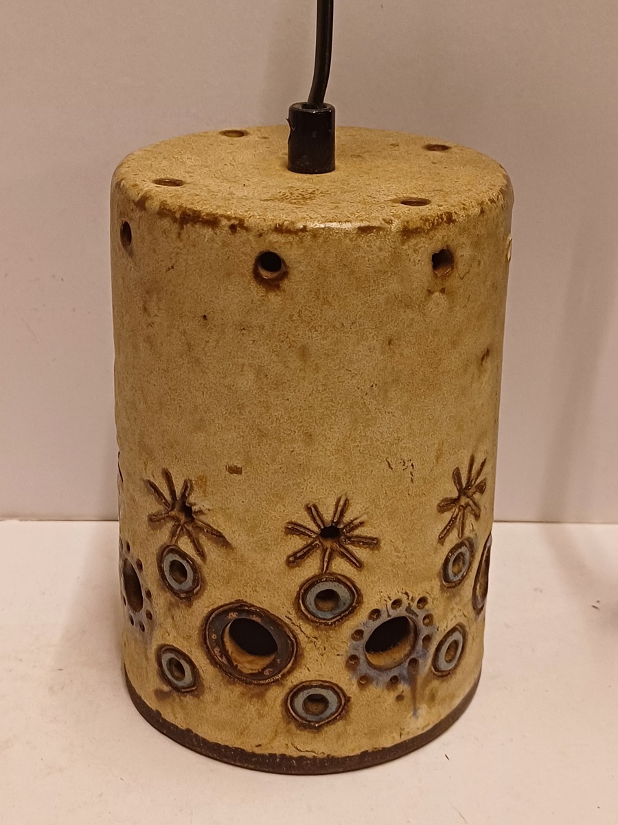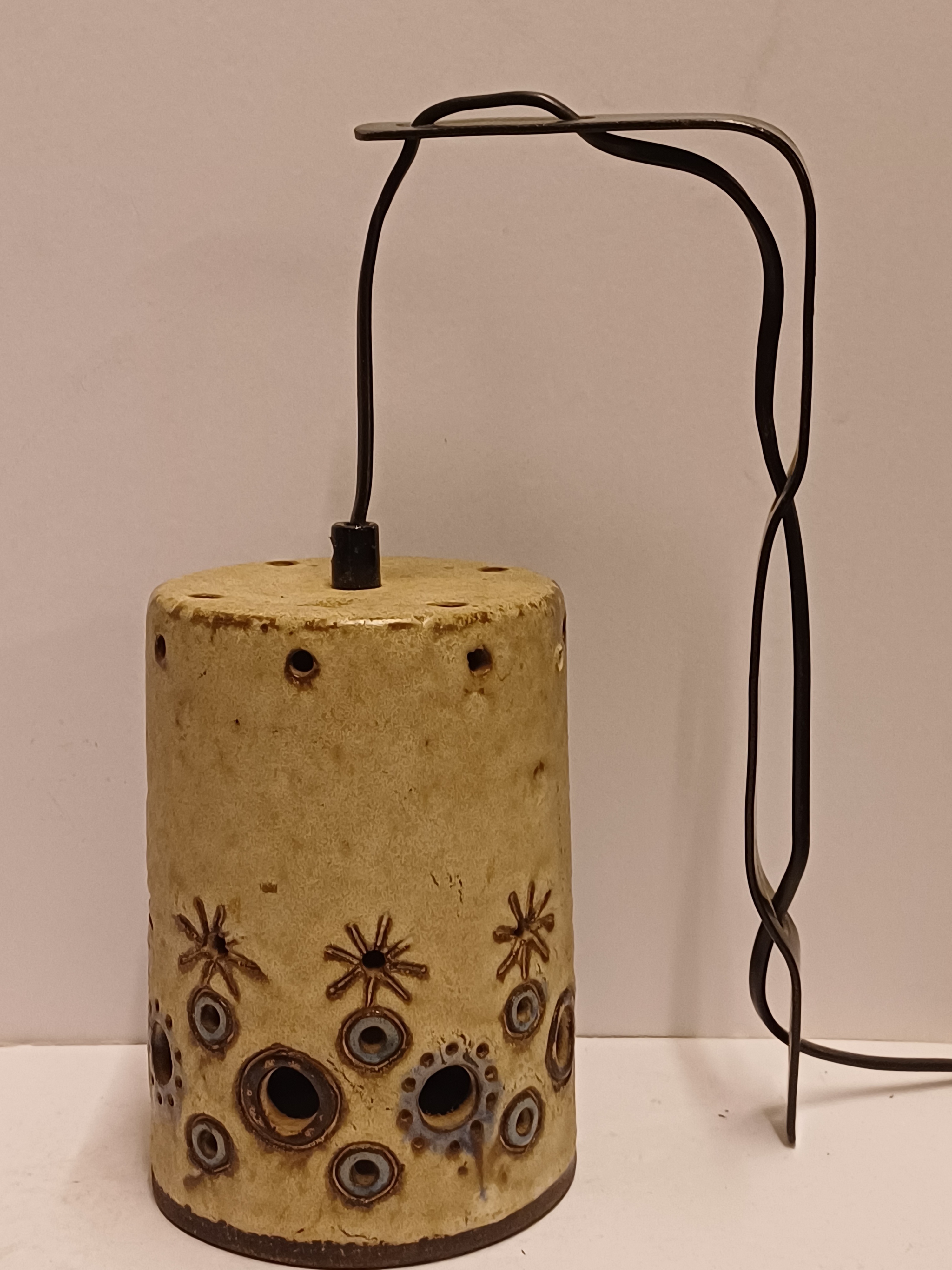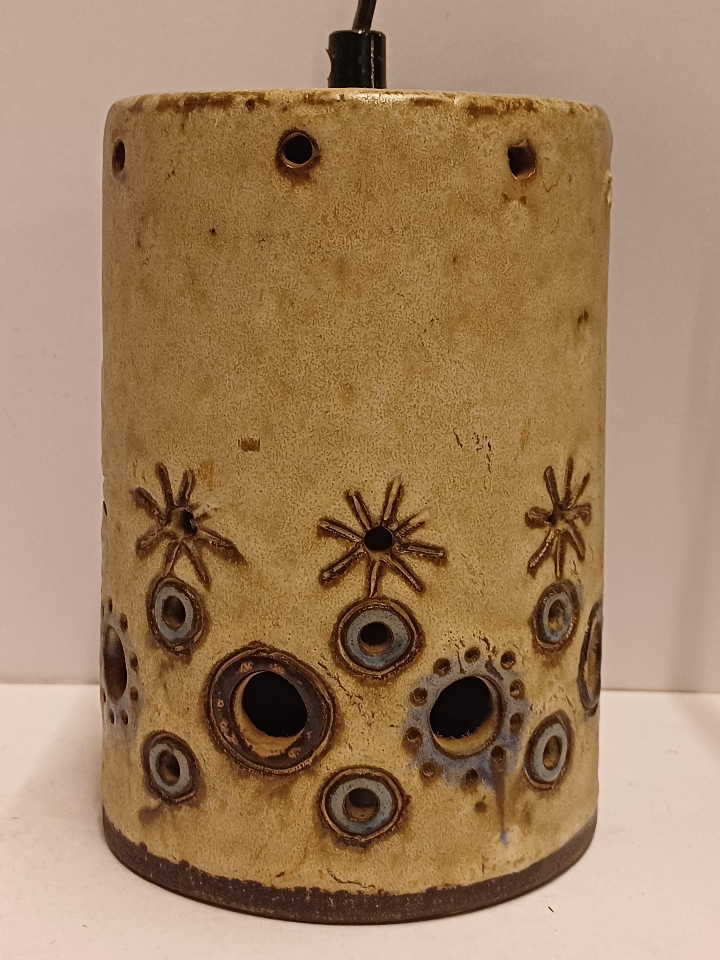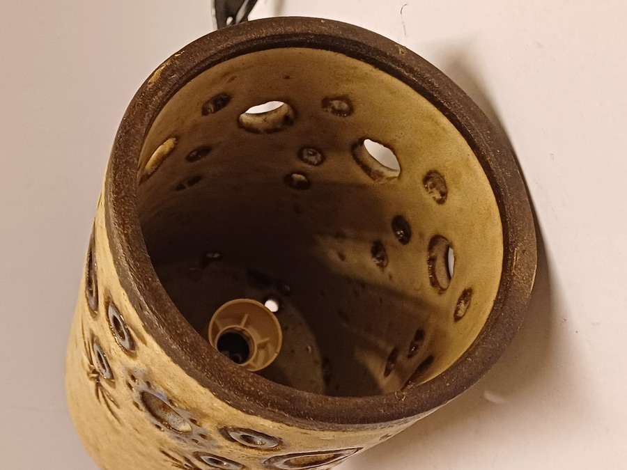 Aardewerken cilindrische lampenkap met opengewerkt decor. Niet gesigneerd