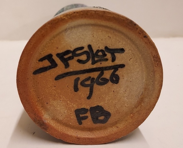 Vase avec glaçure effet peau de serpent. Base signée JF Slot 1966 FB