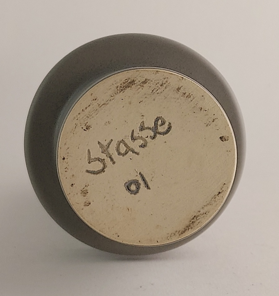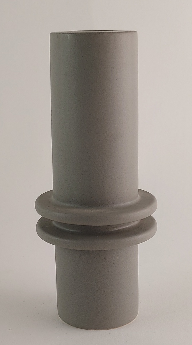 Chandelier en céramique gris glacé avec 2 anneaux. Signé à la base et daté '01.