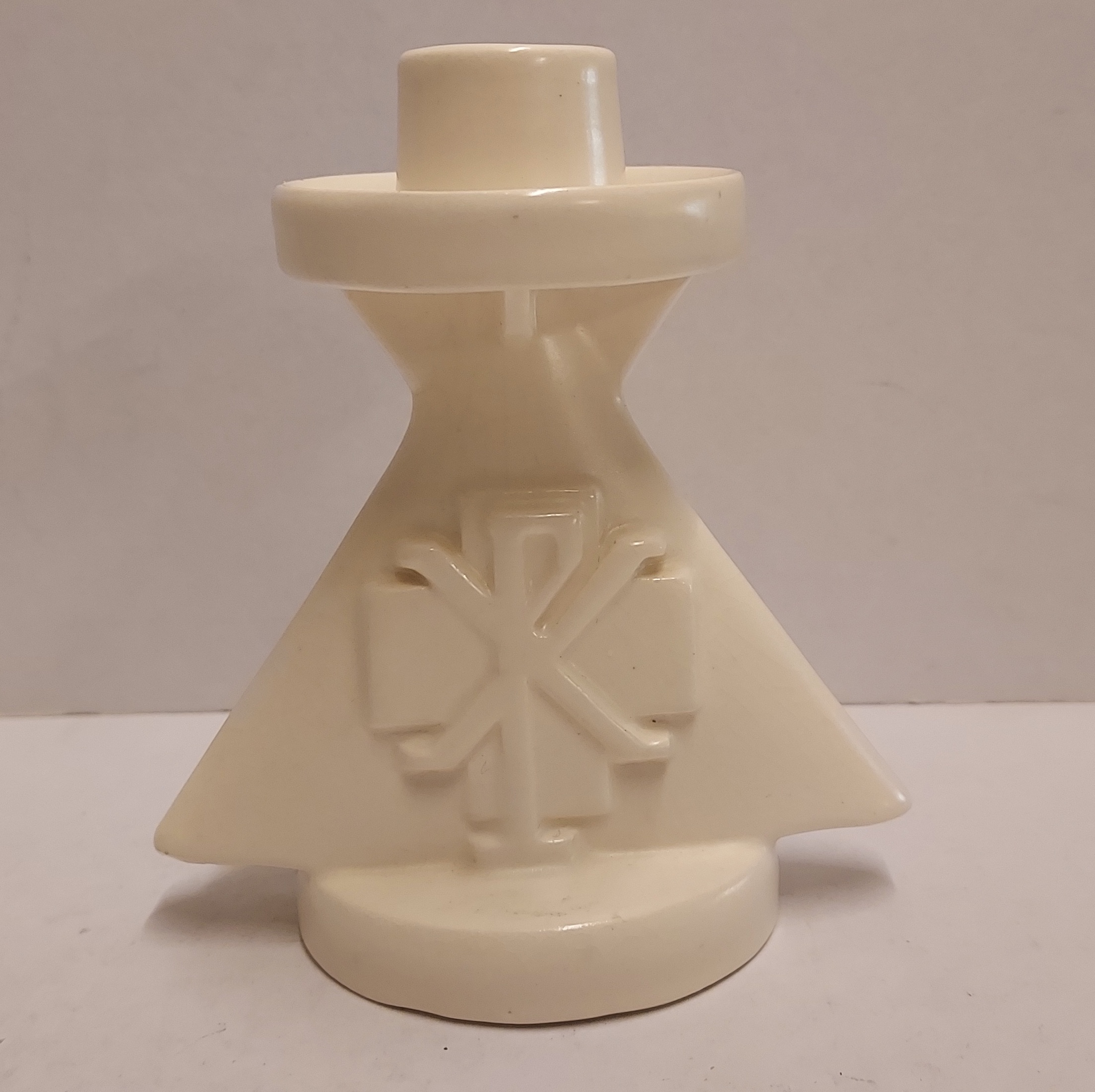 Chandelier glacé à la crème avec le symbole de Pax Christi. Dessous avec marque de fabrique.