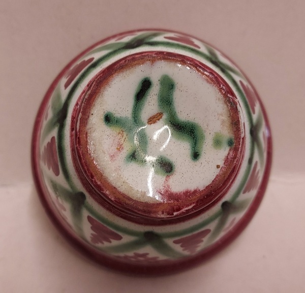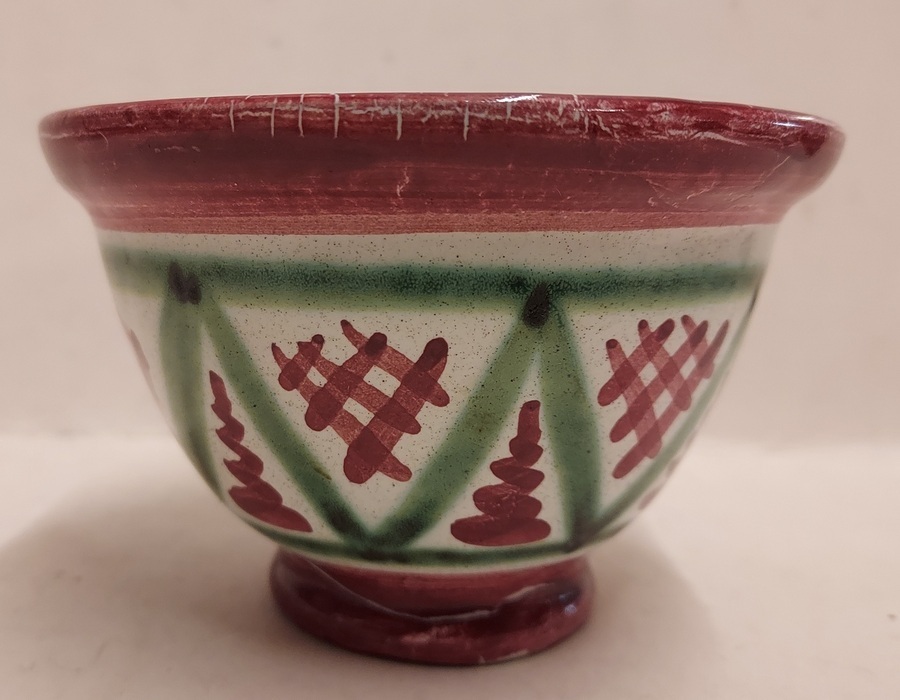 Petit bol avec un décor de Simon Engelhart en rouge et vert