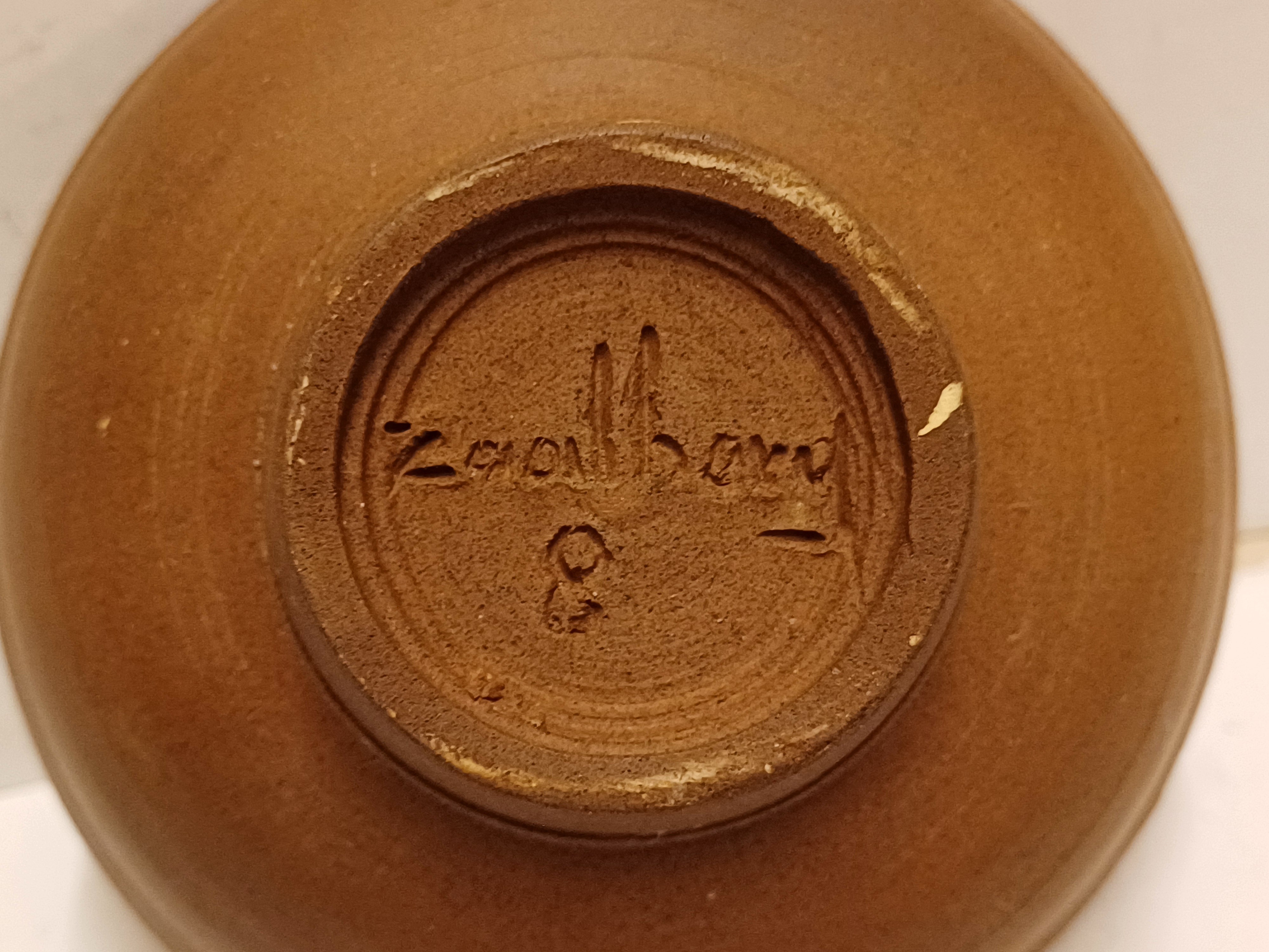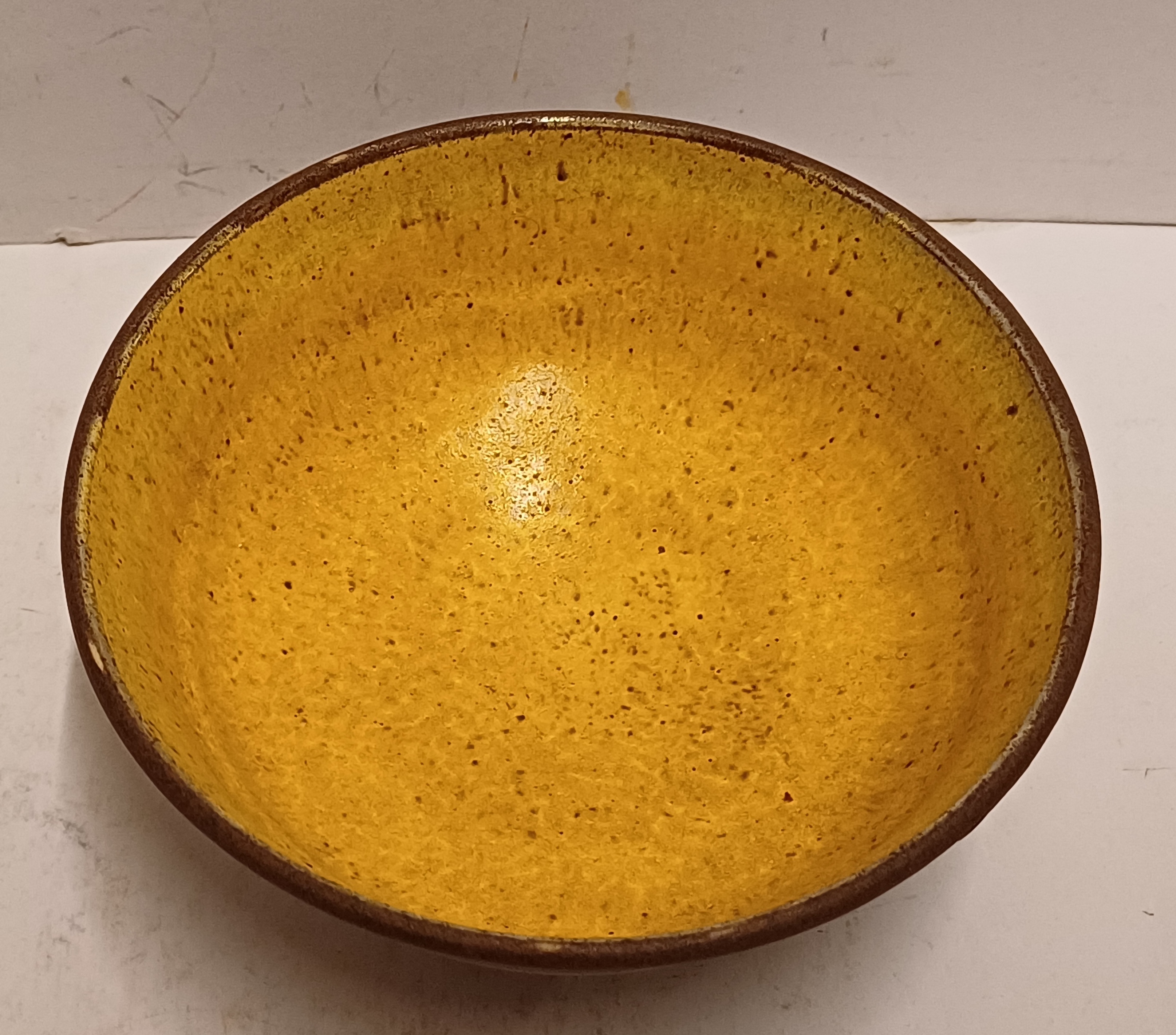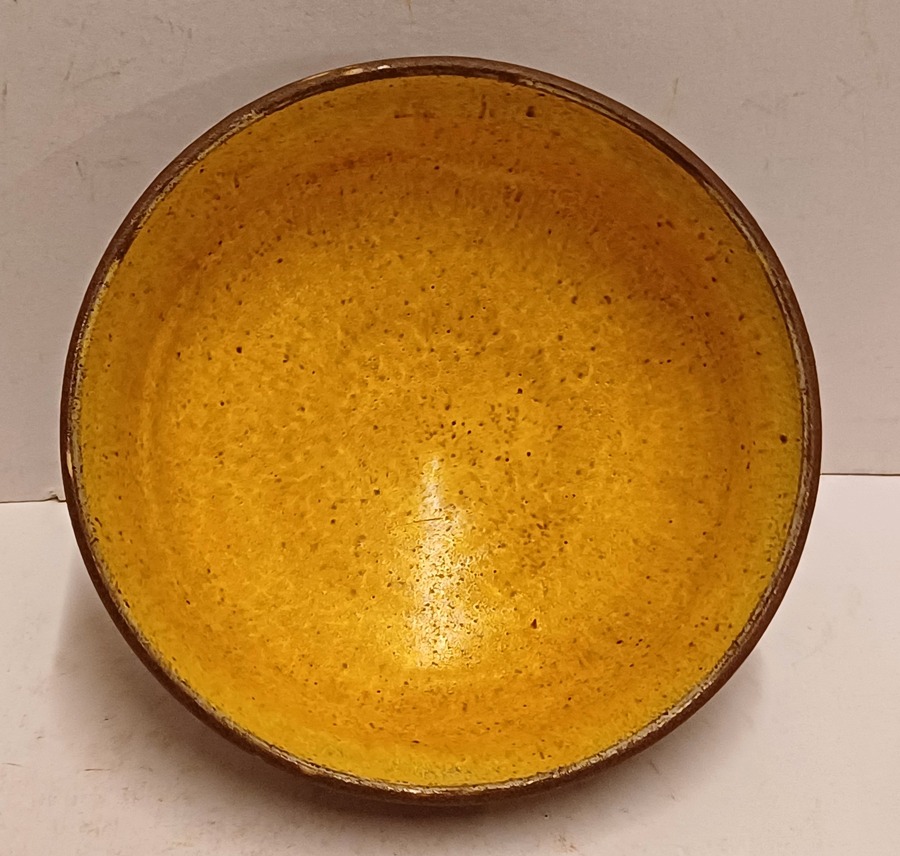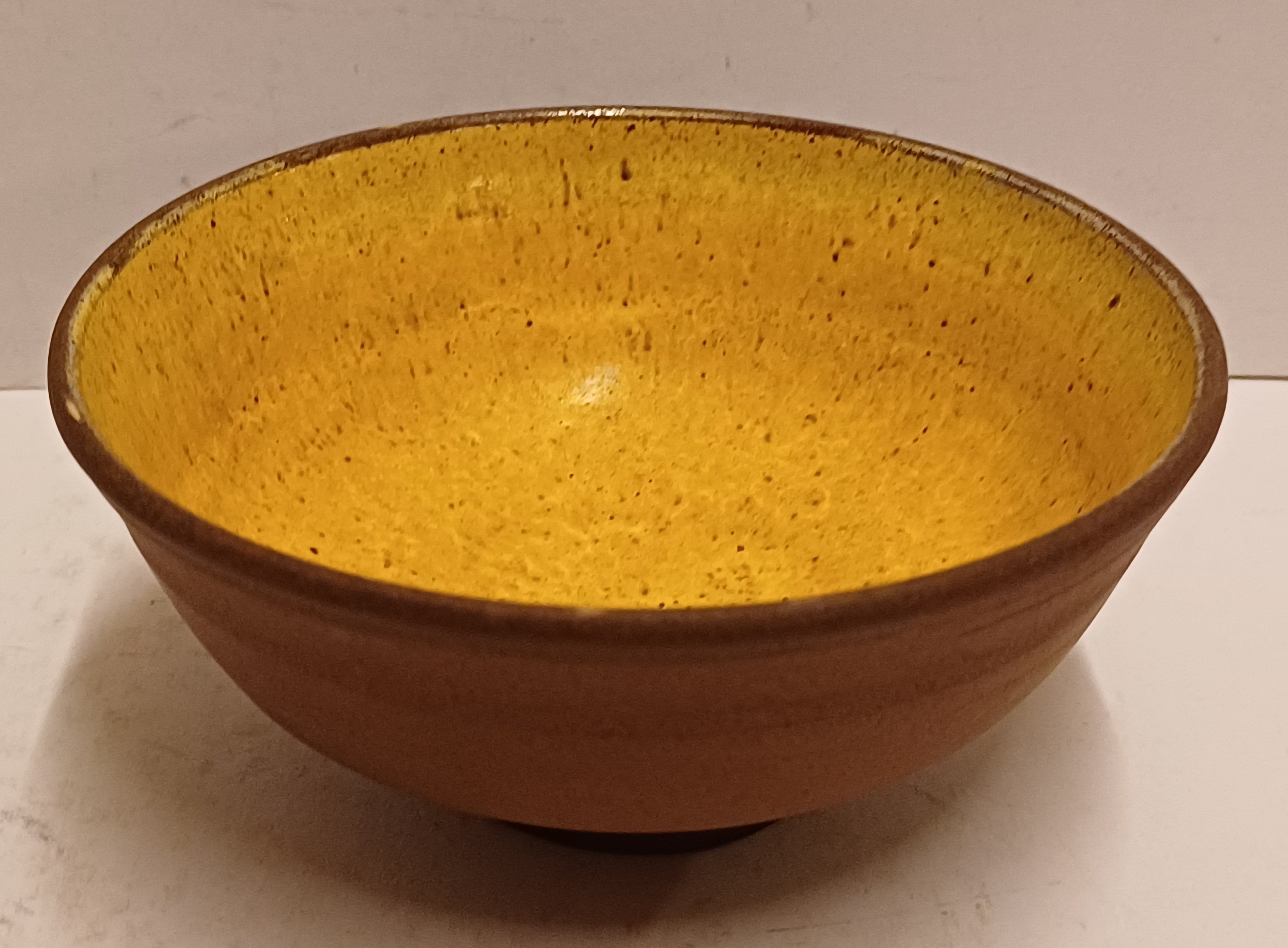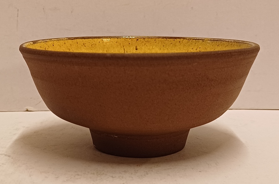 Kommetje met geel geglazuurde binnenzijde. Onderzijde voluit gesigneerd