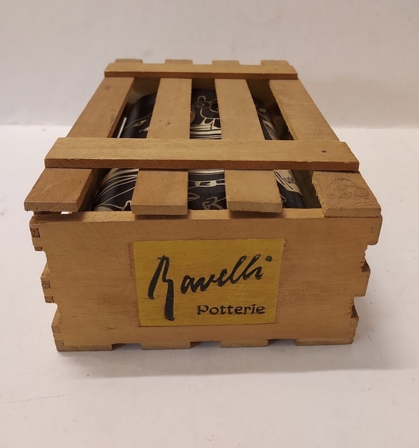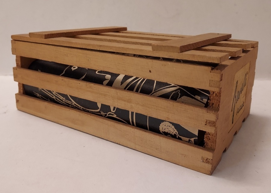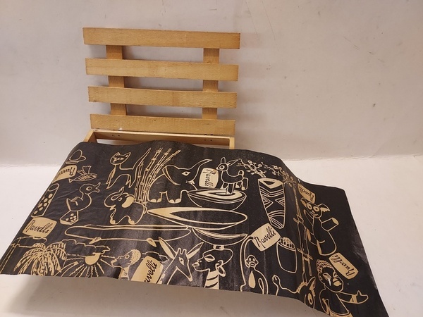 Caisse en bois vide avec papier d'emballage de Ravelli.