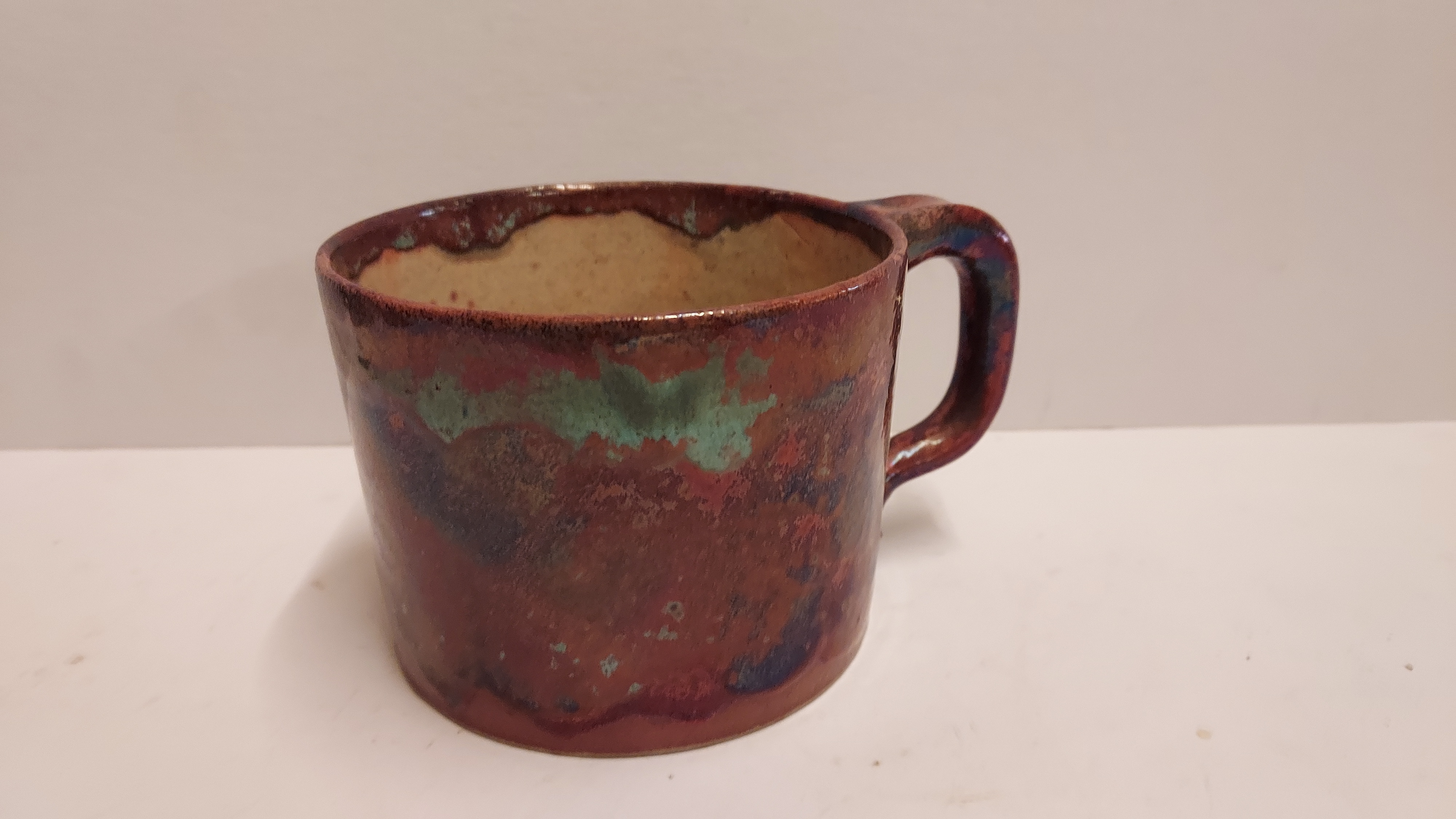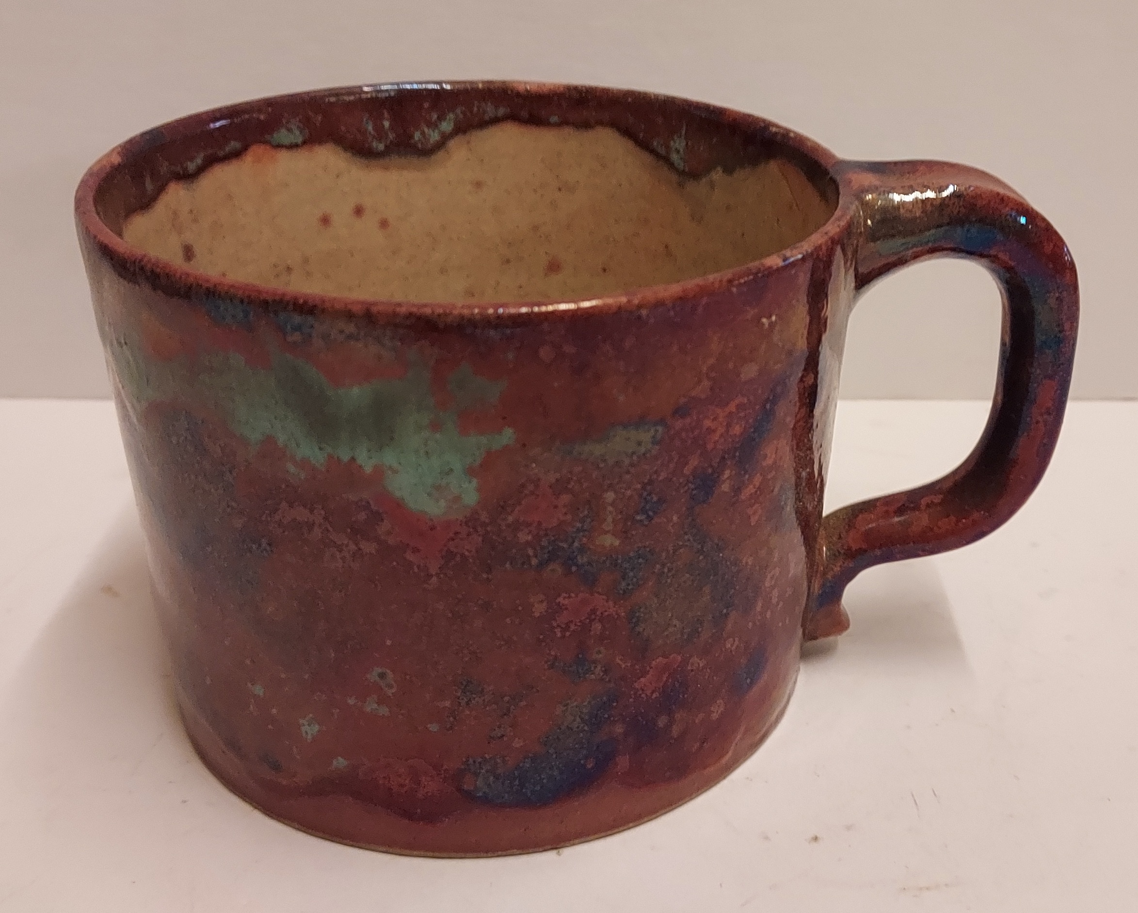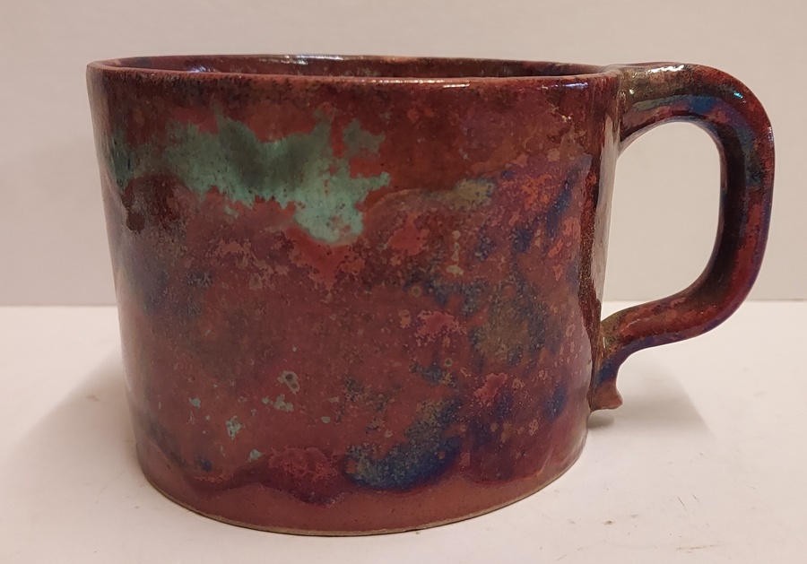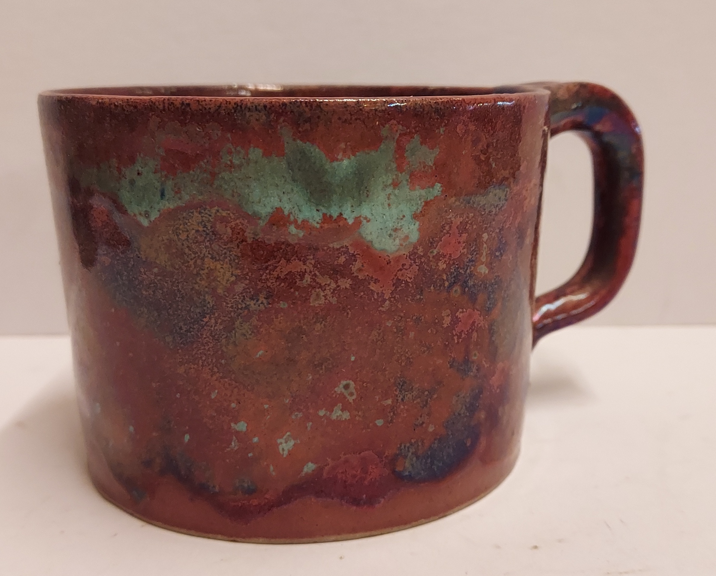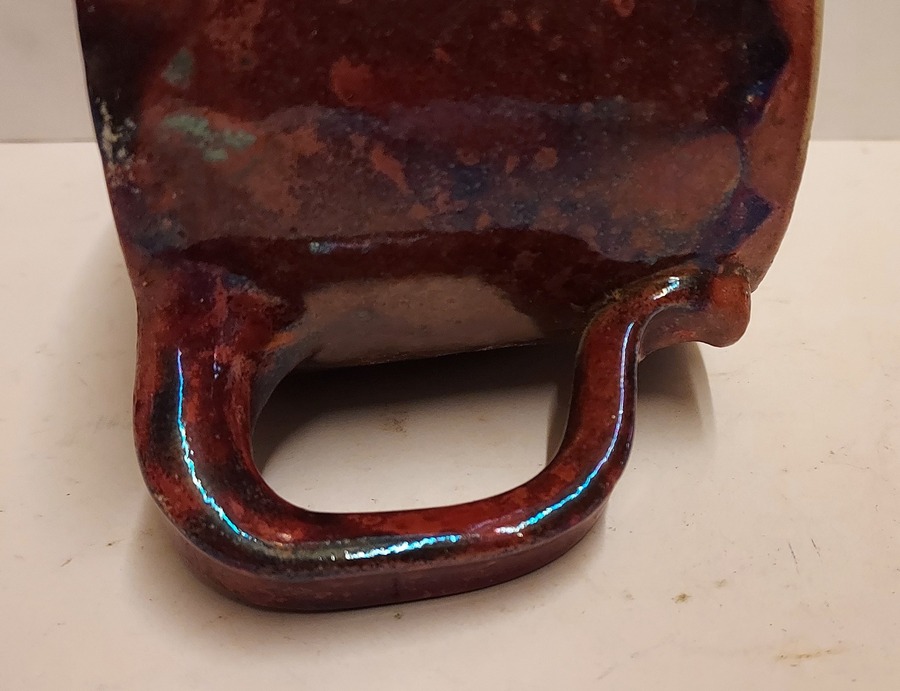 Mug cylindrique avec glaçure métallique. Signé sur le dessous.