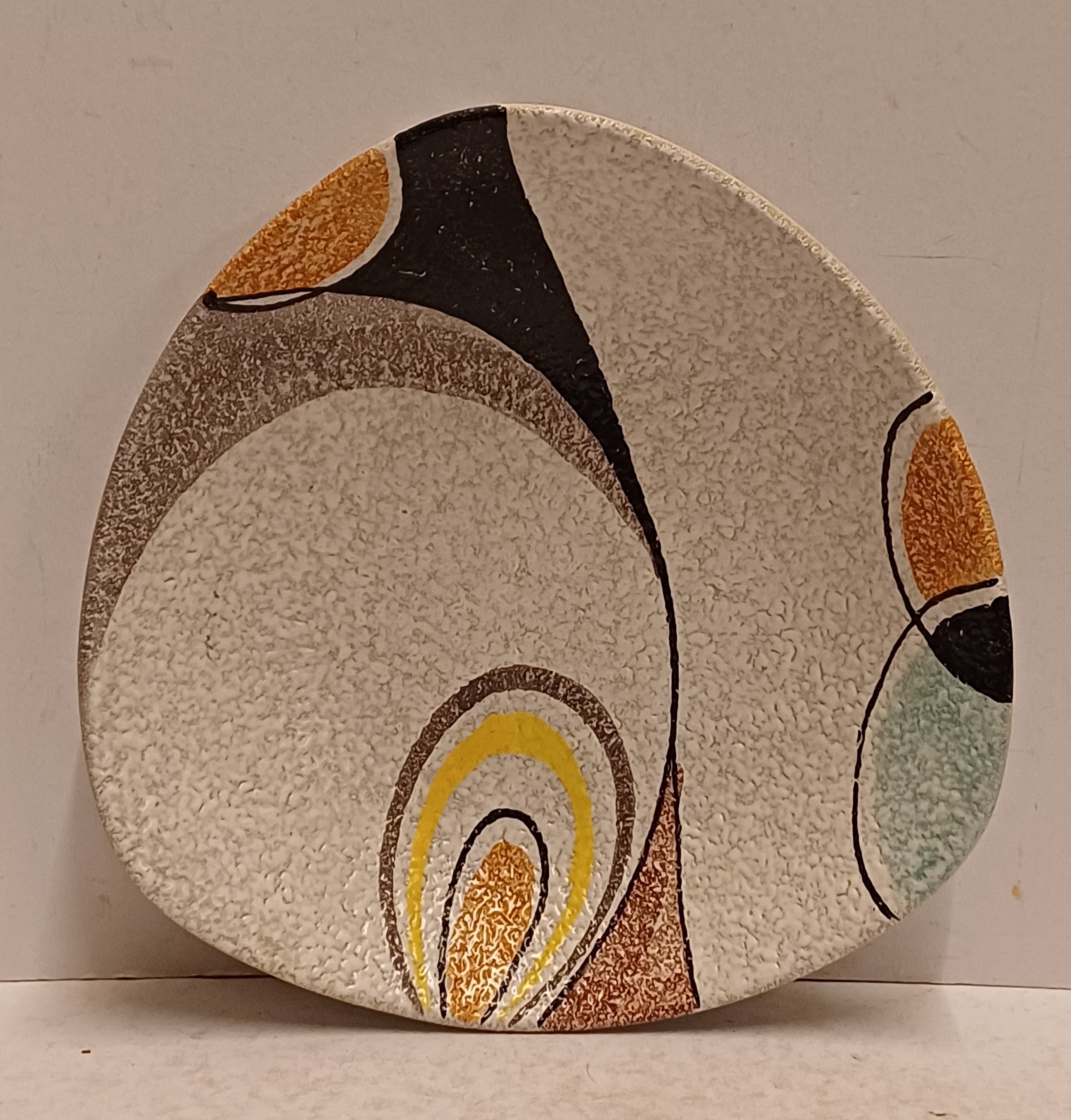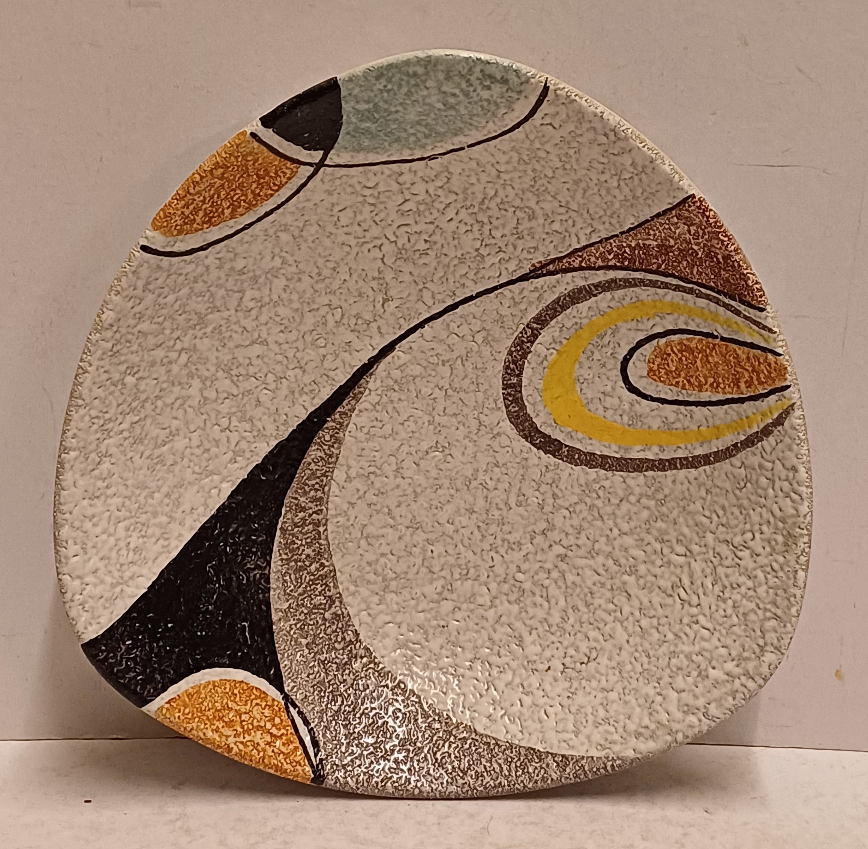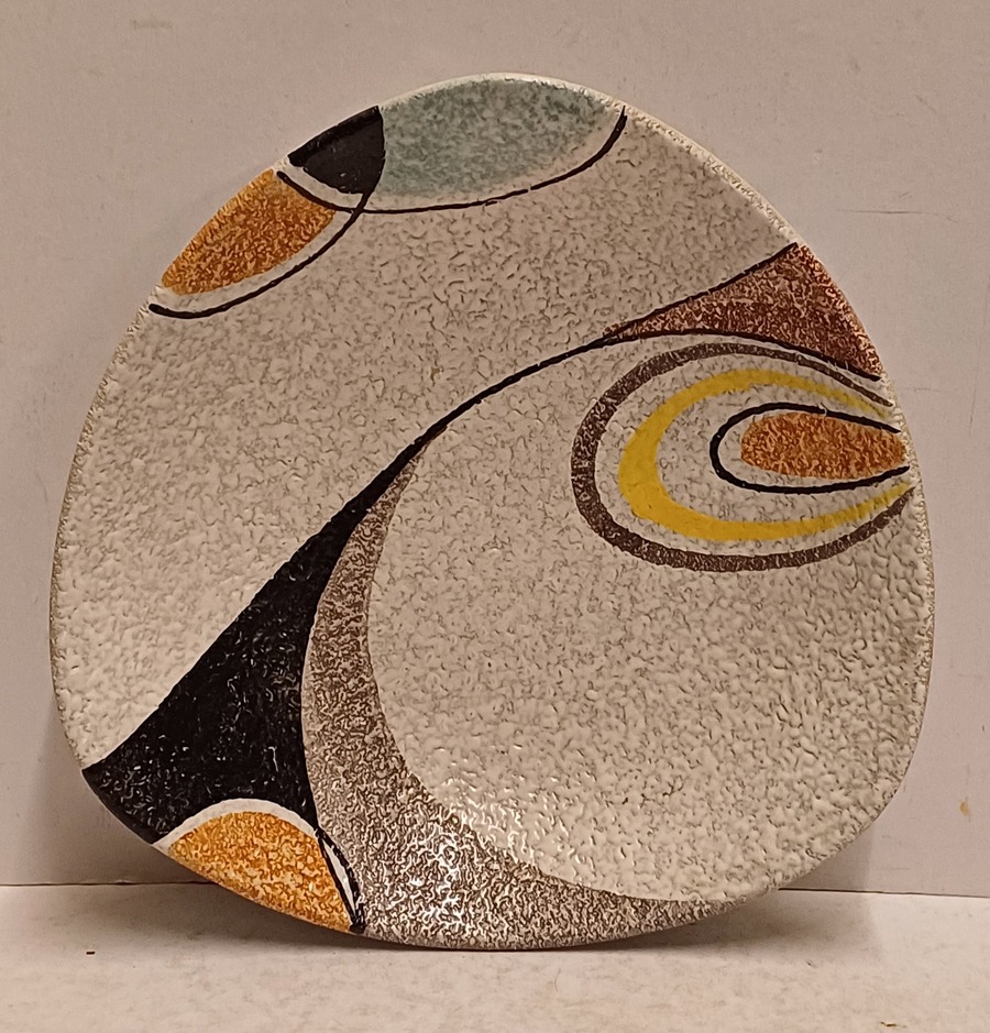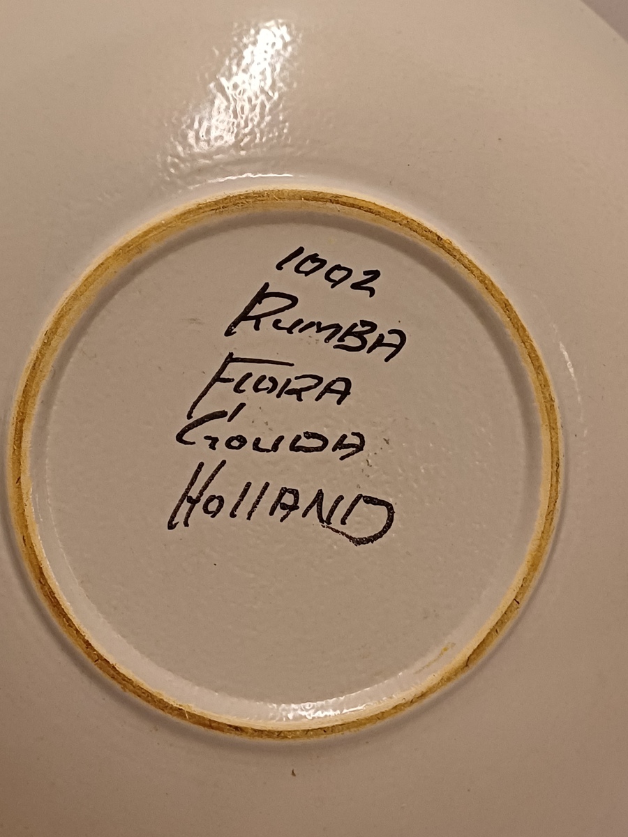 Platelen schaal met decor Rumba op grijs fond. Onderzijde met fabrieksmerk en modelnummer.