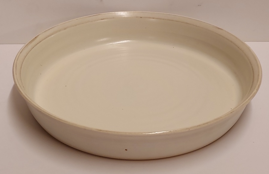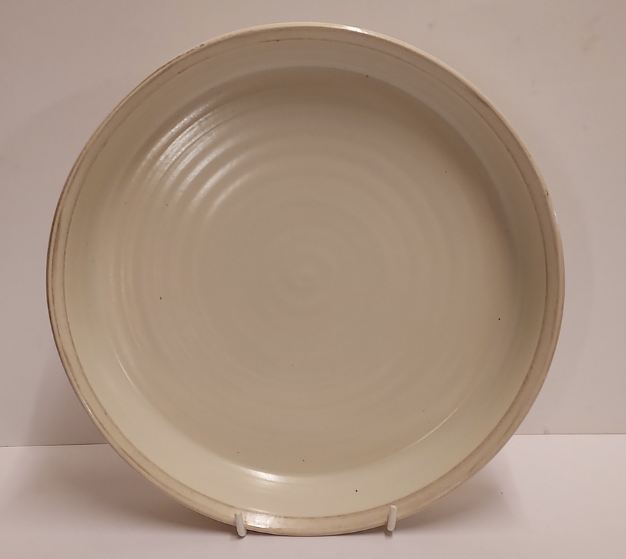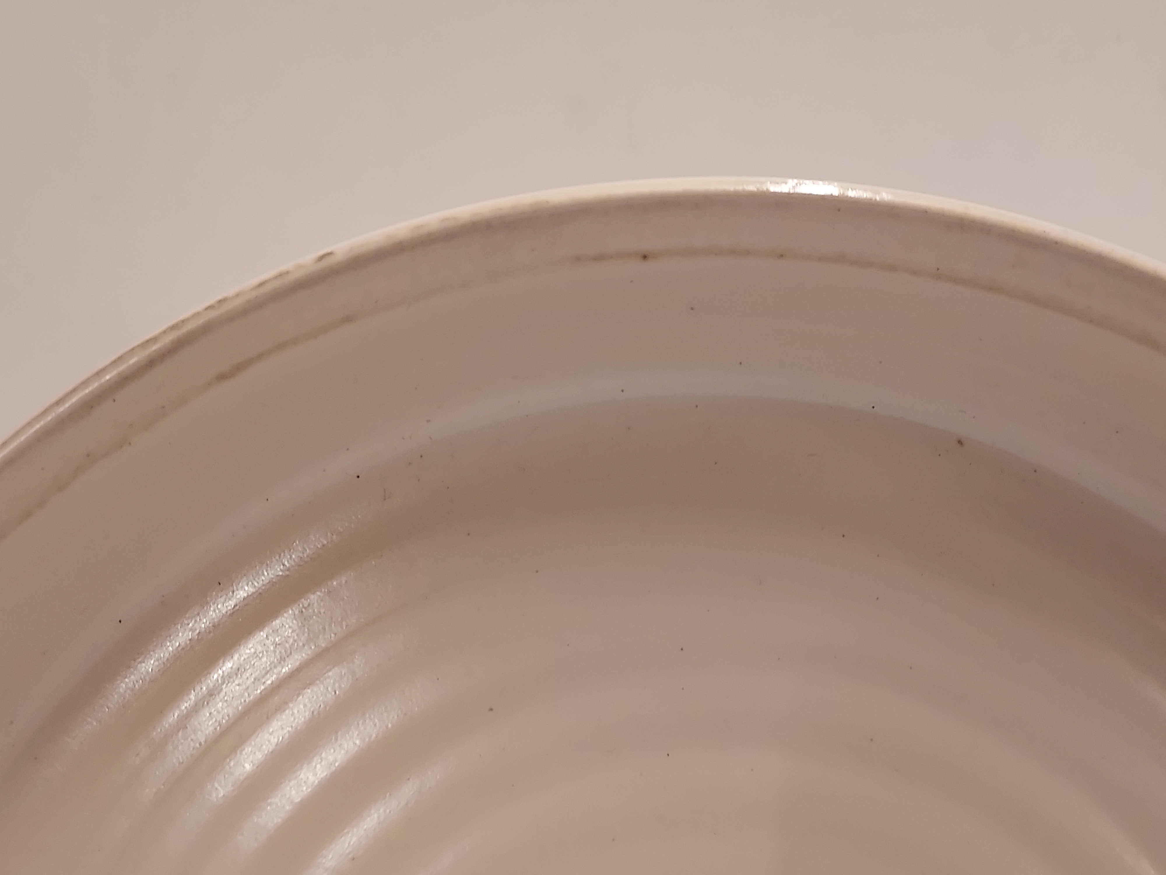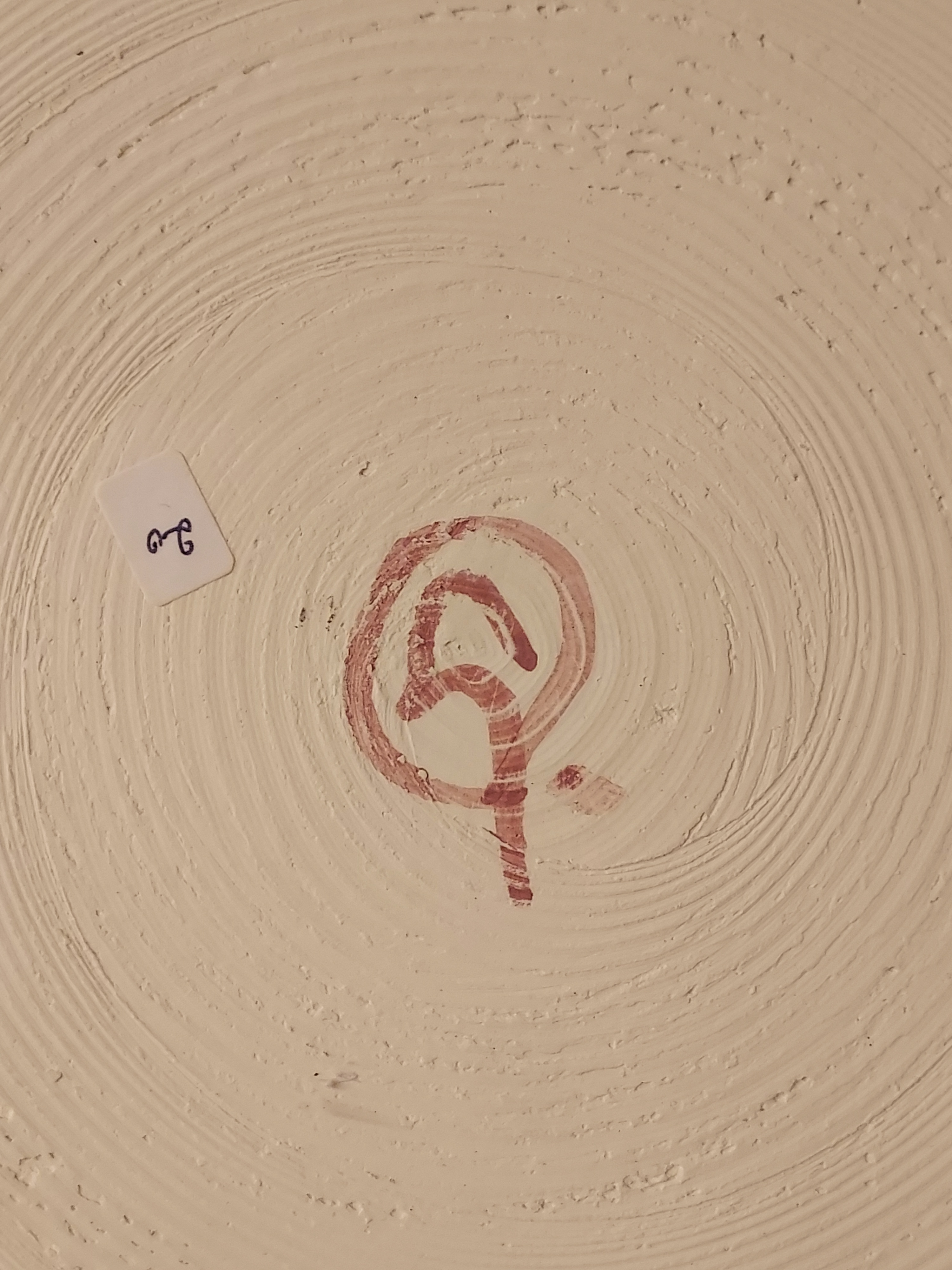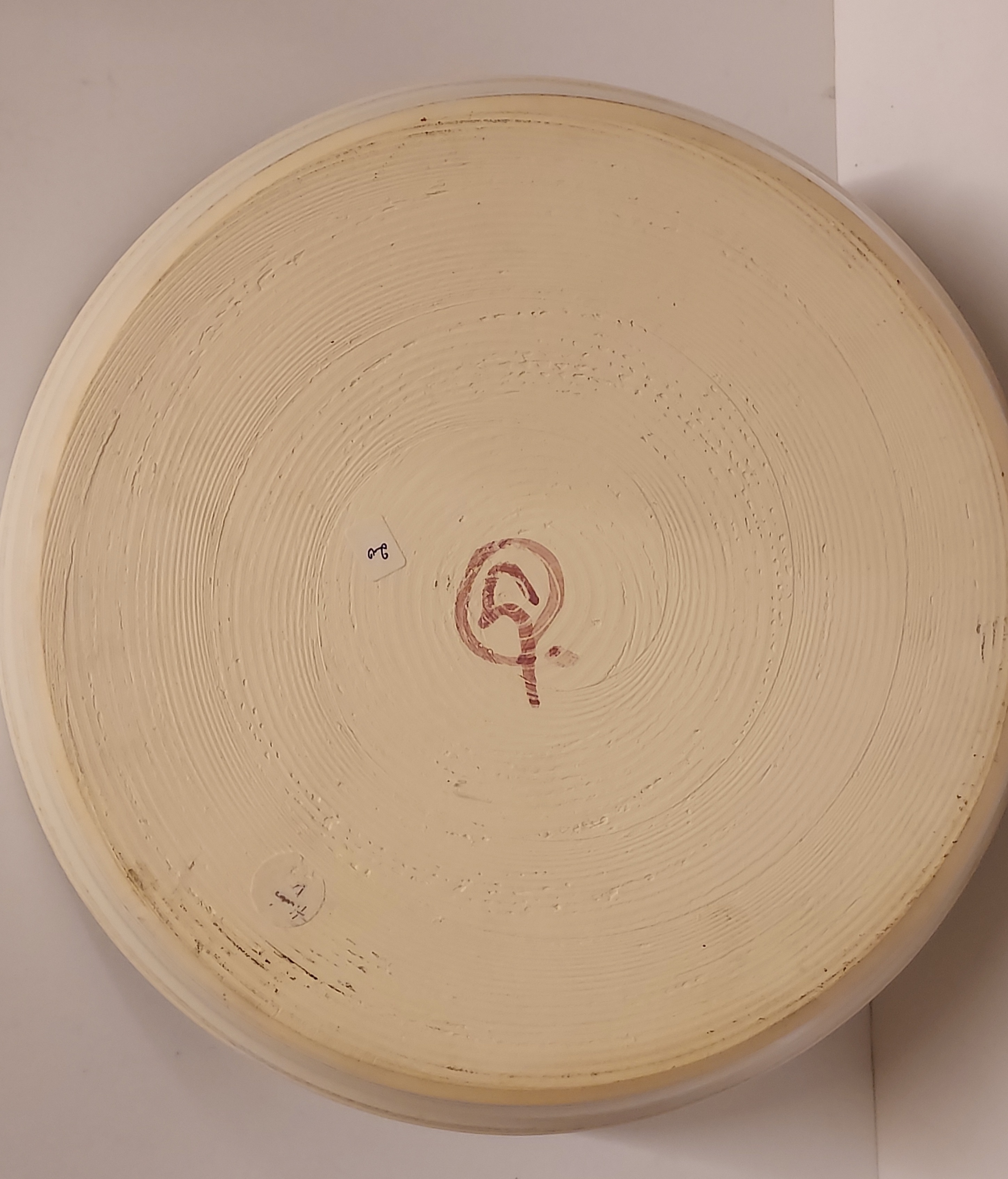 Crème glacée avec décor de lignes brunes. Dessous avec monogramme.