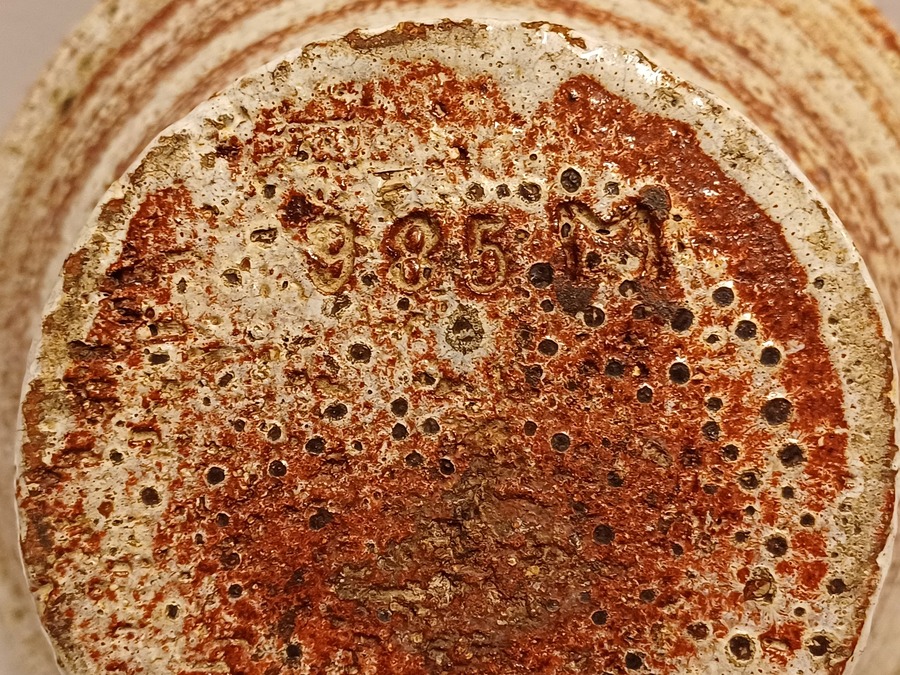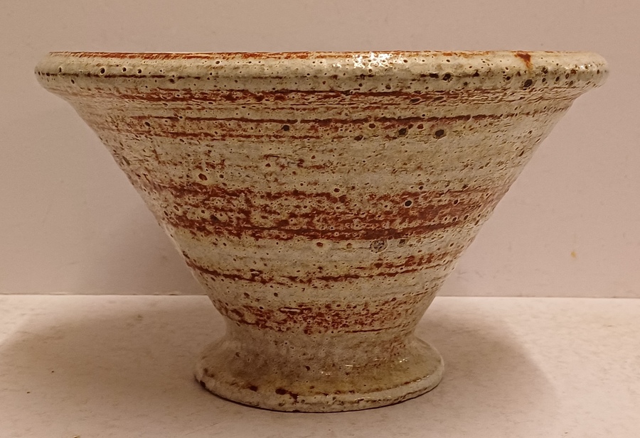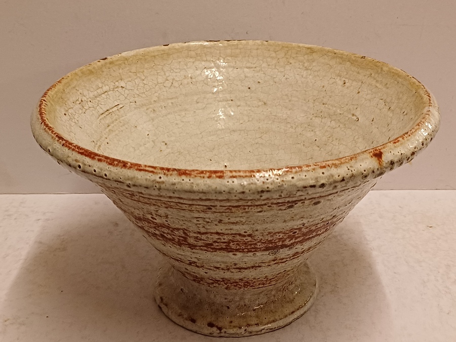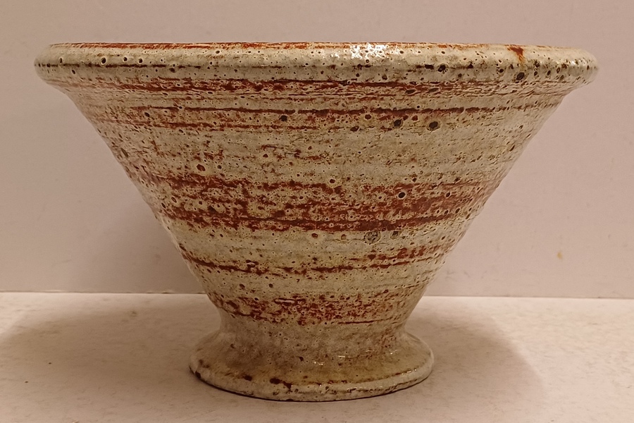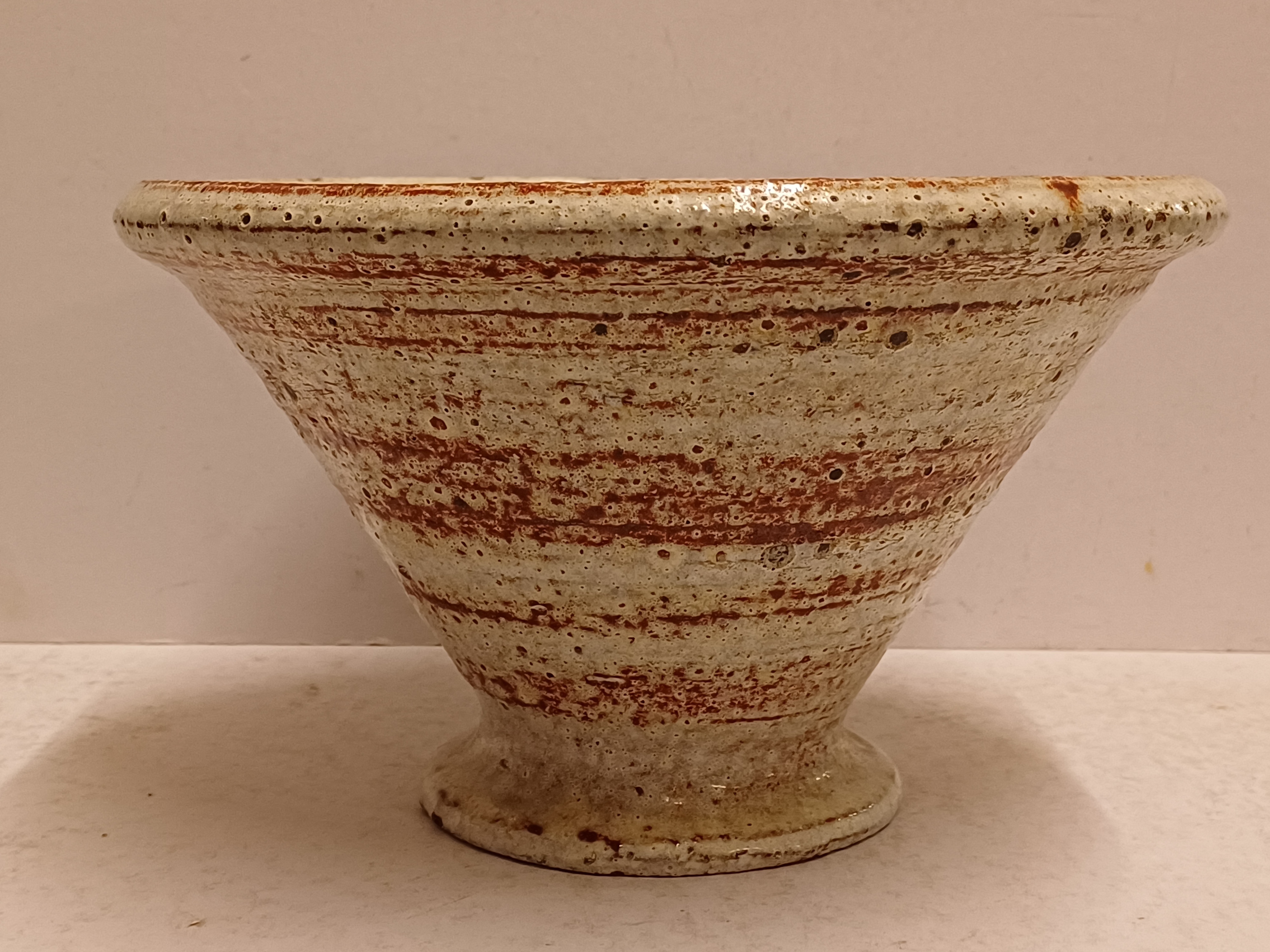 Aardewerken planten schaal met gestreepte glazuur . Onderzijde met modelnummer en fabrieksmerk.
