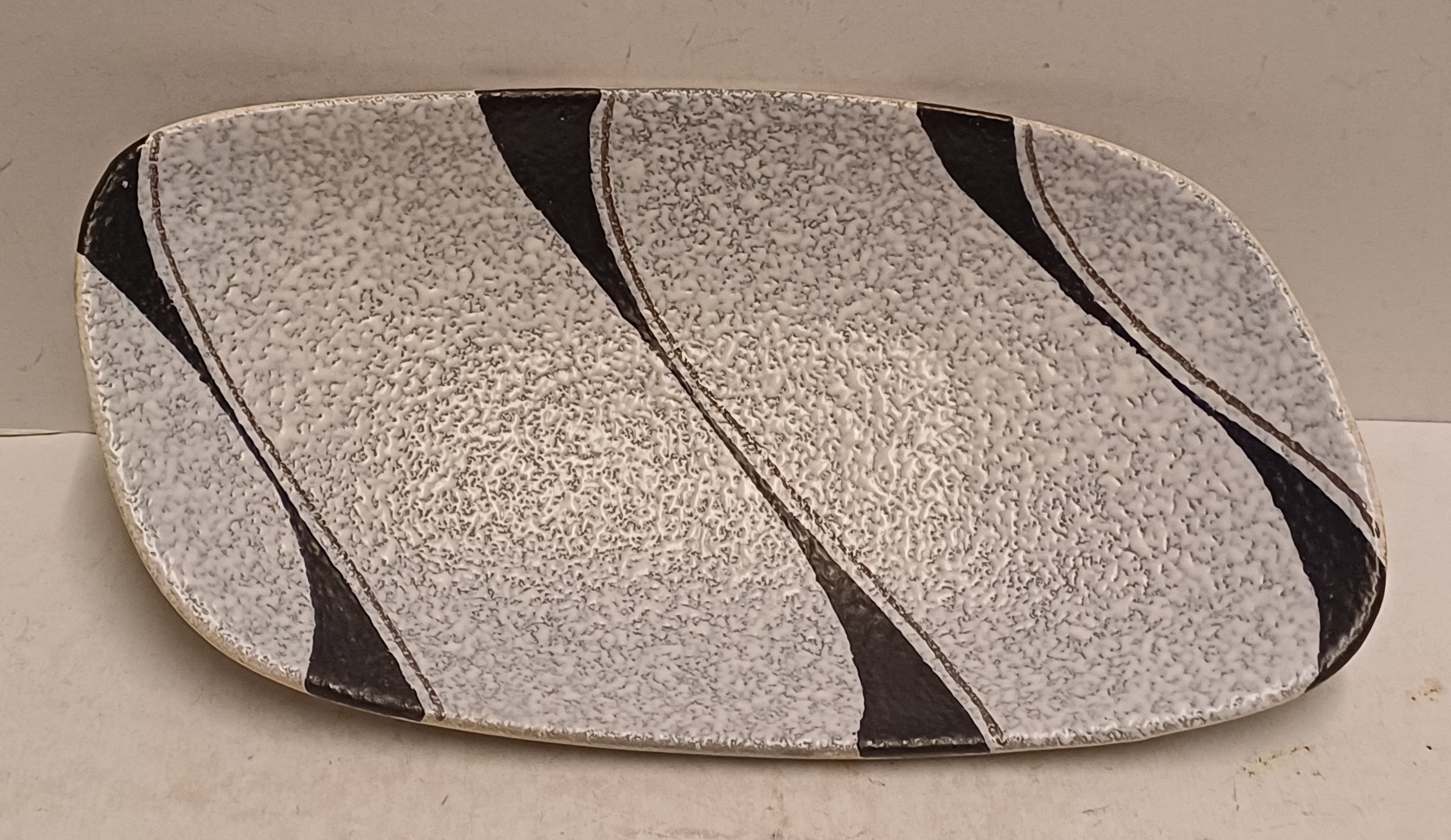 Platelen langwerpig schaaltje met fifties decor Tango. Onderzijde gemerkt