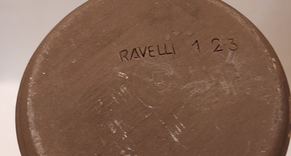 Avec décor en écorce de bouleau. Dessous avec marque estampillée.