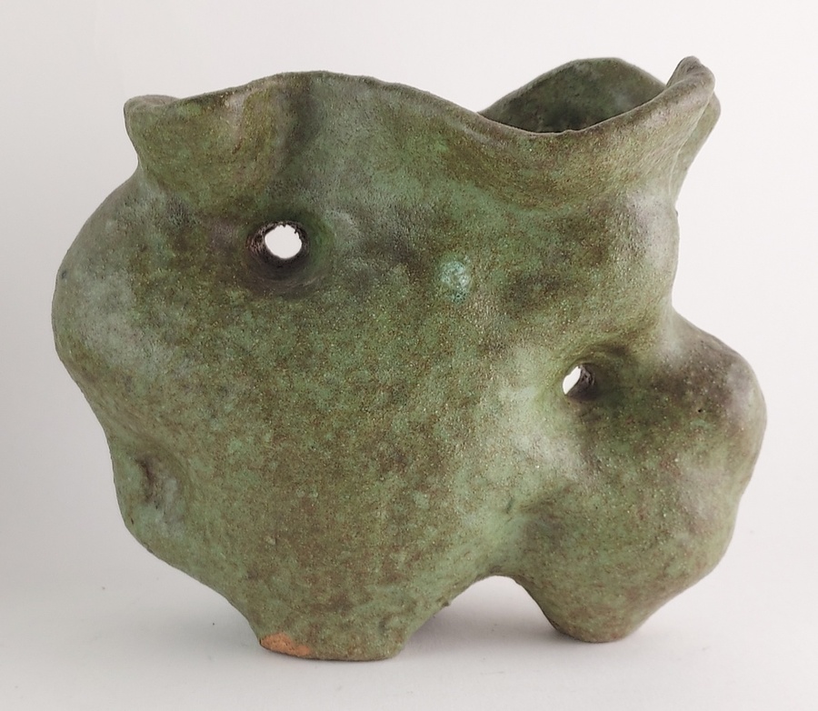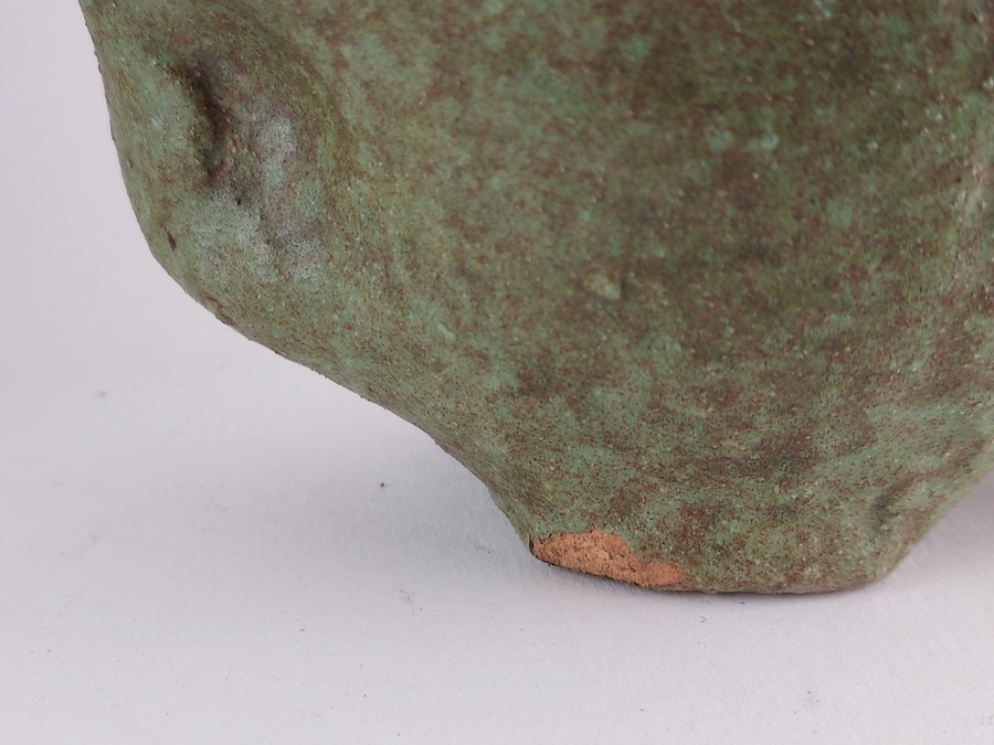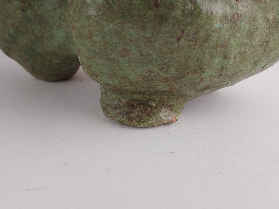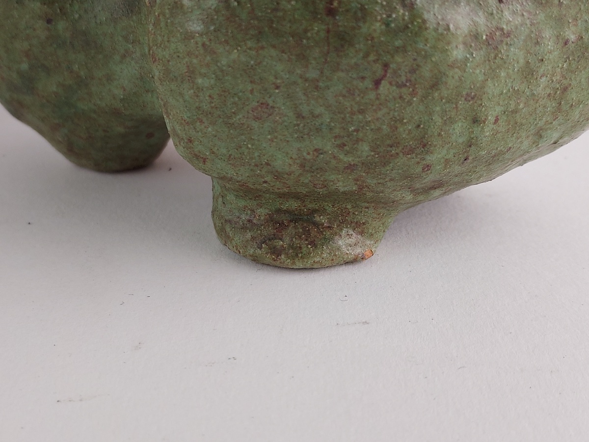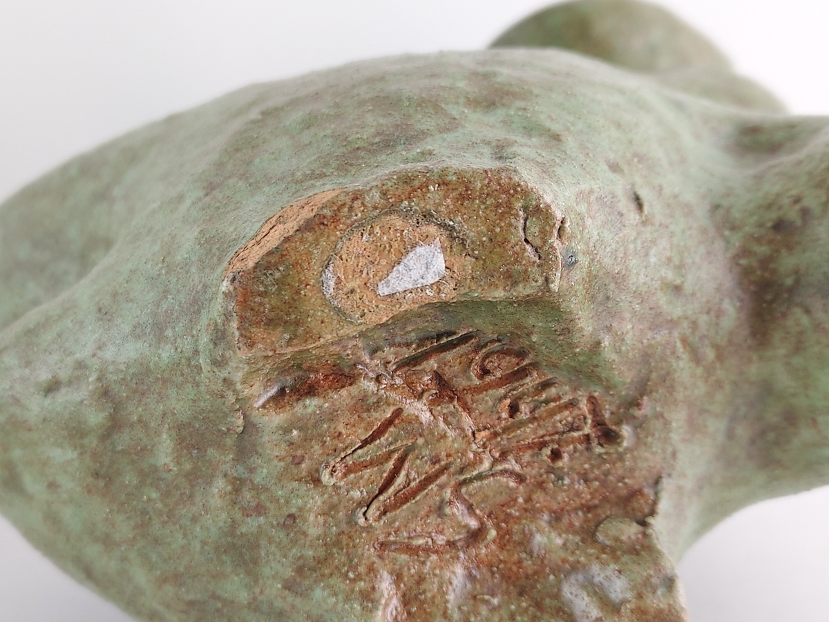 Vase/sculpture d'élan avec glaçure verte. Base avec monogramme