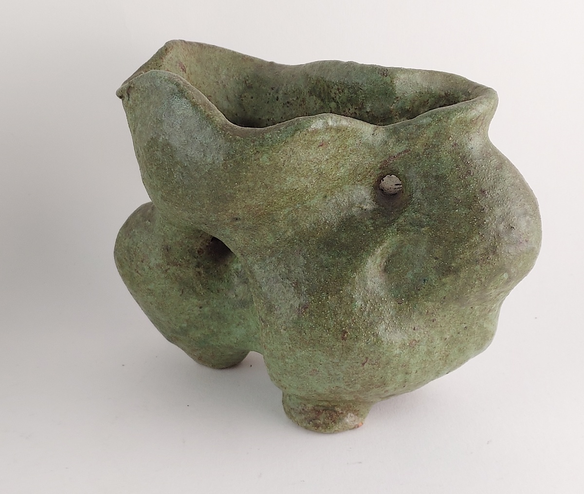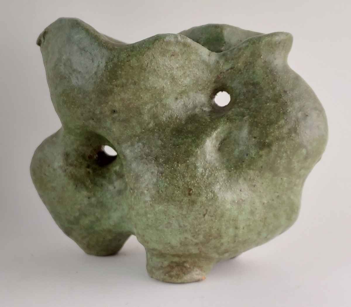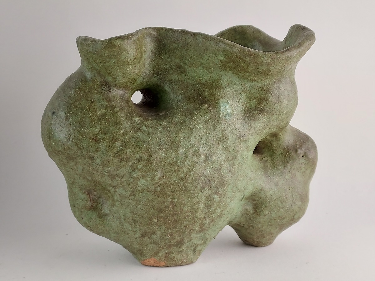 Vase/sculpture d'élan avec glaçure verte. Base avec monogramme