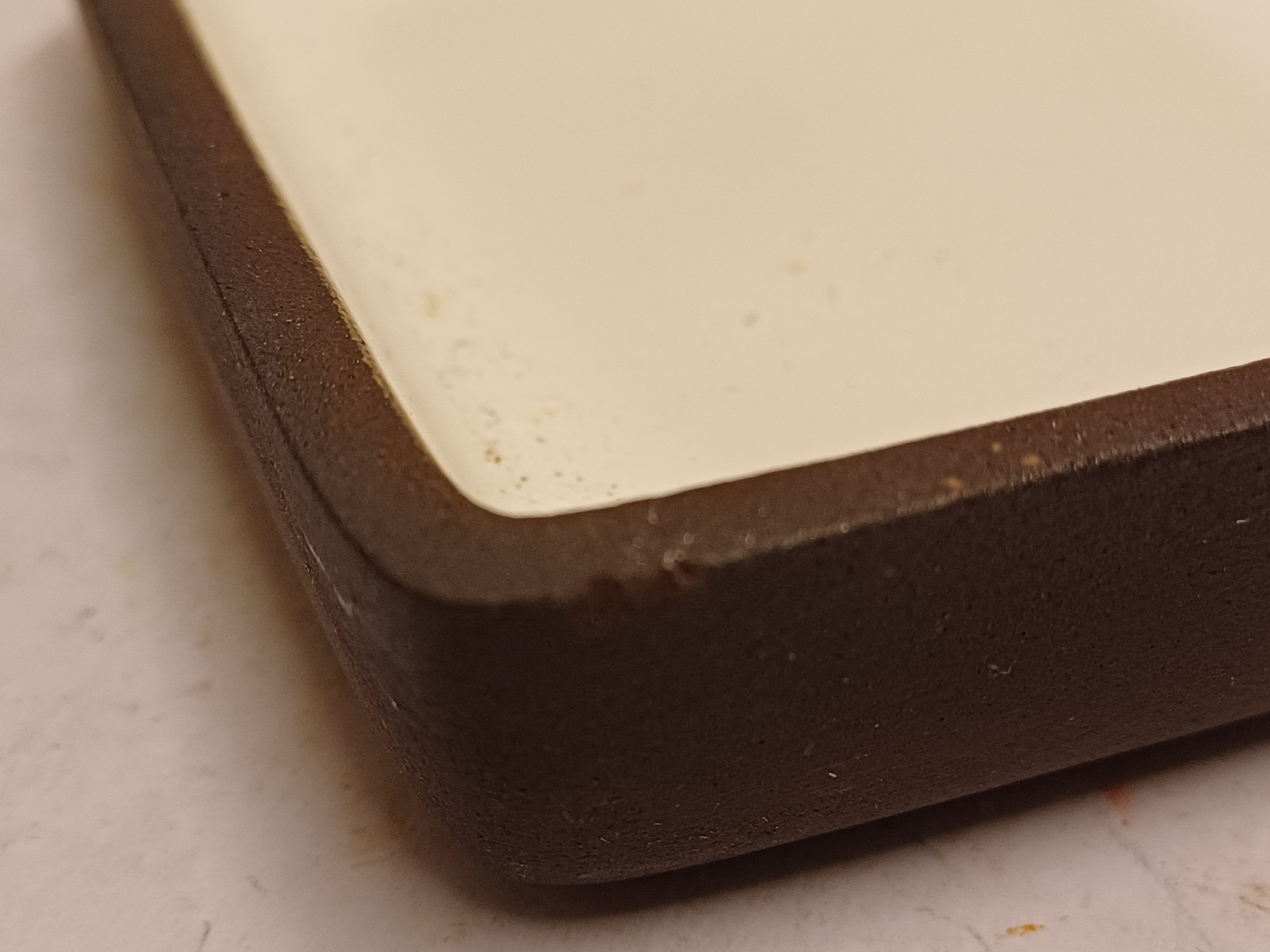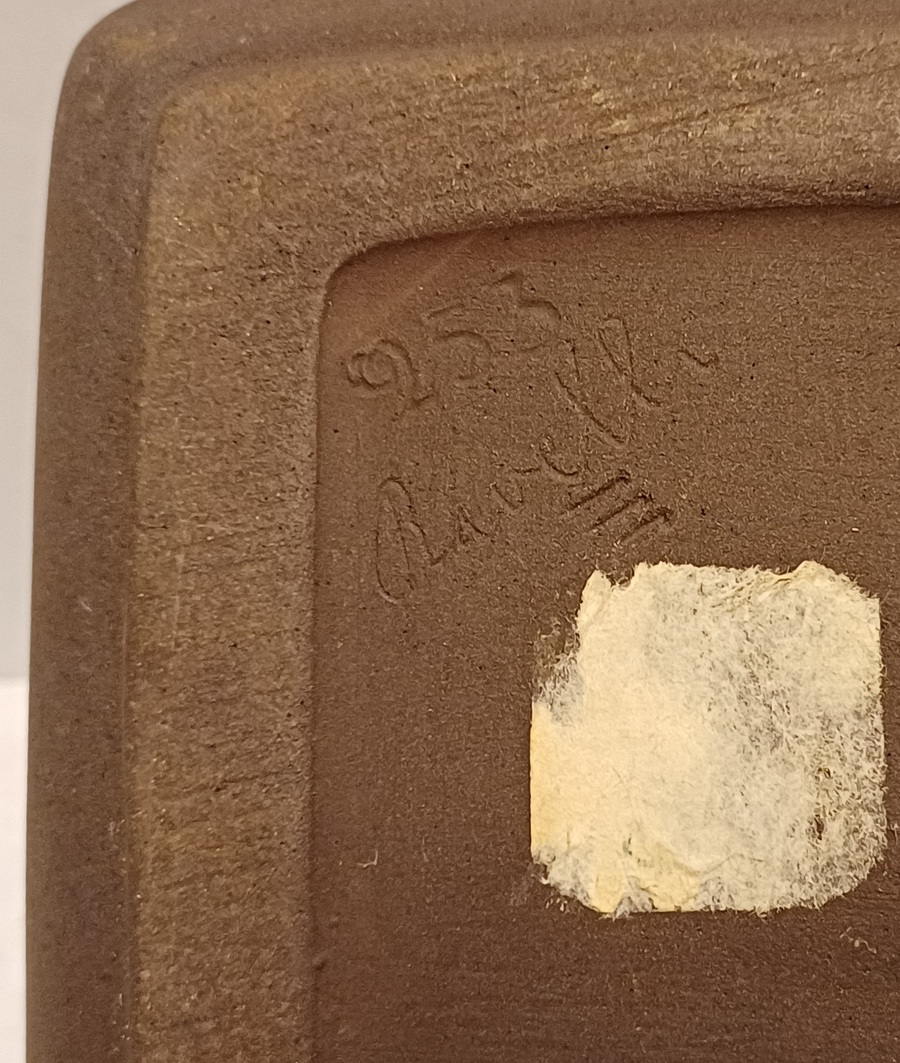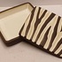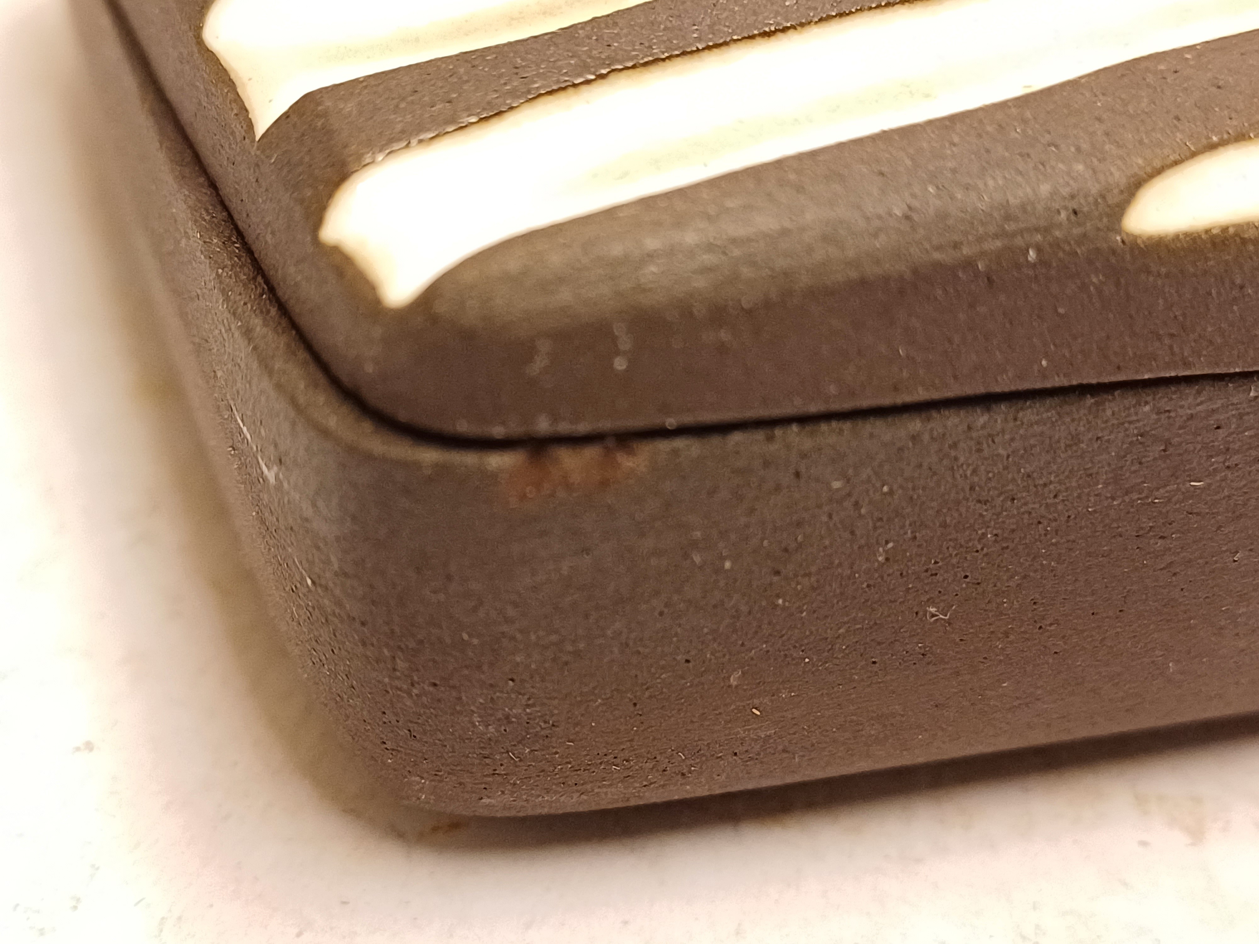 Boîte à couvercle en argile brune avec un motif de zèbre blanc glacé sur le couvercle. Dessous signé et numéroté.