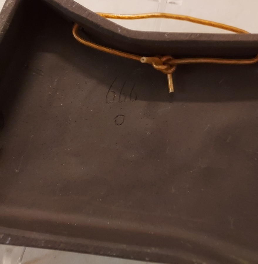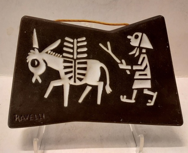 Carreau avec une dame et un âne. Face avant avec marque de tampon, verso avec numéro de modèle 666.