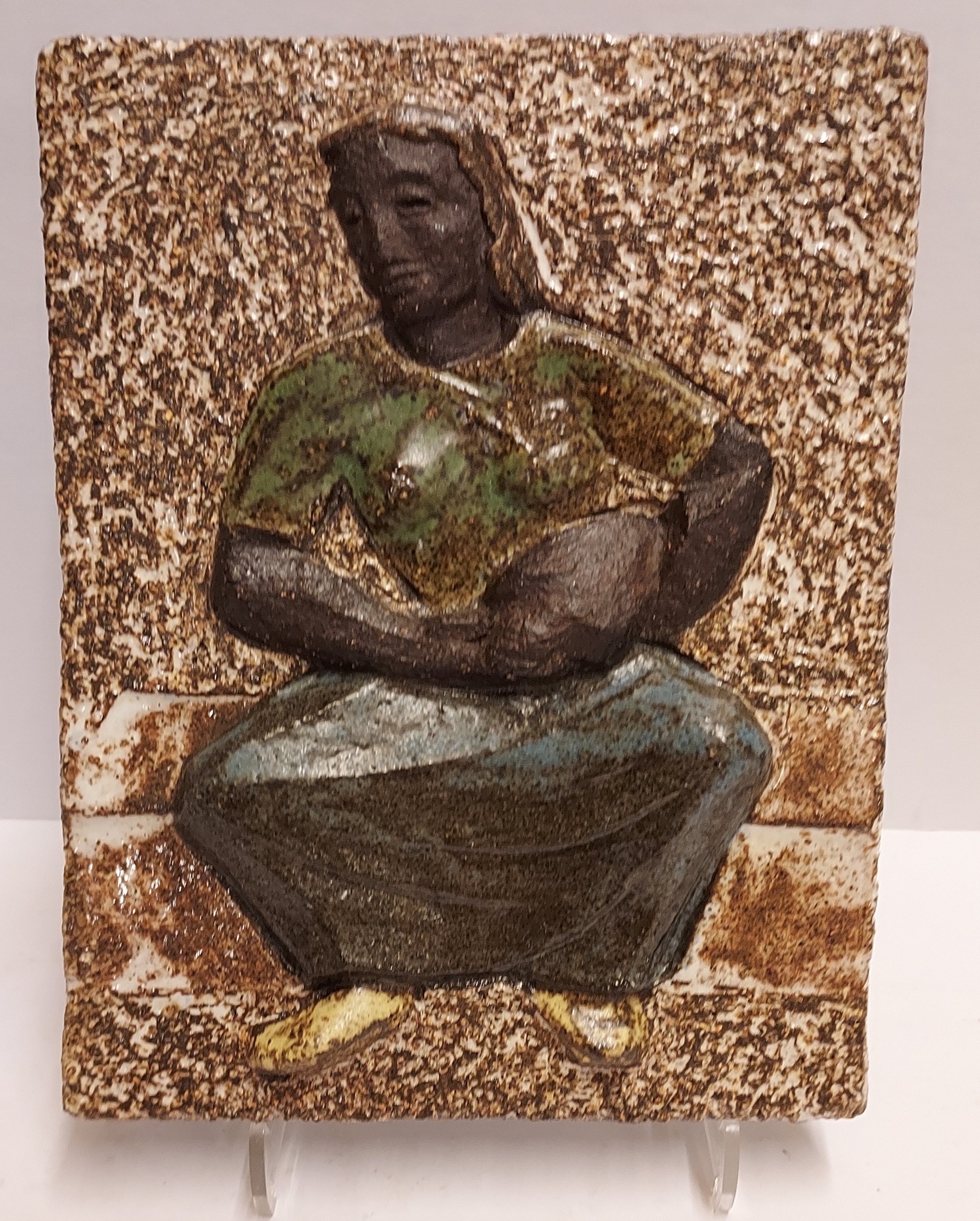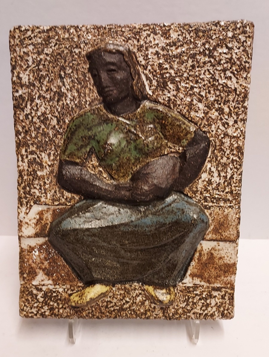 Relief représentant une dame avec une cruche d'eau. Verso avec tampon de la fabrique.