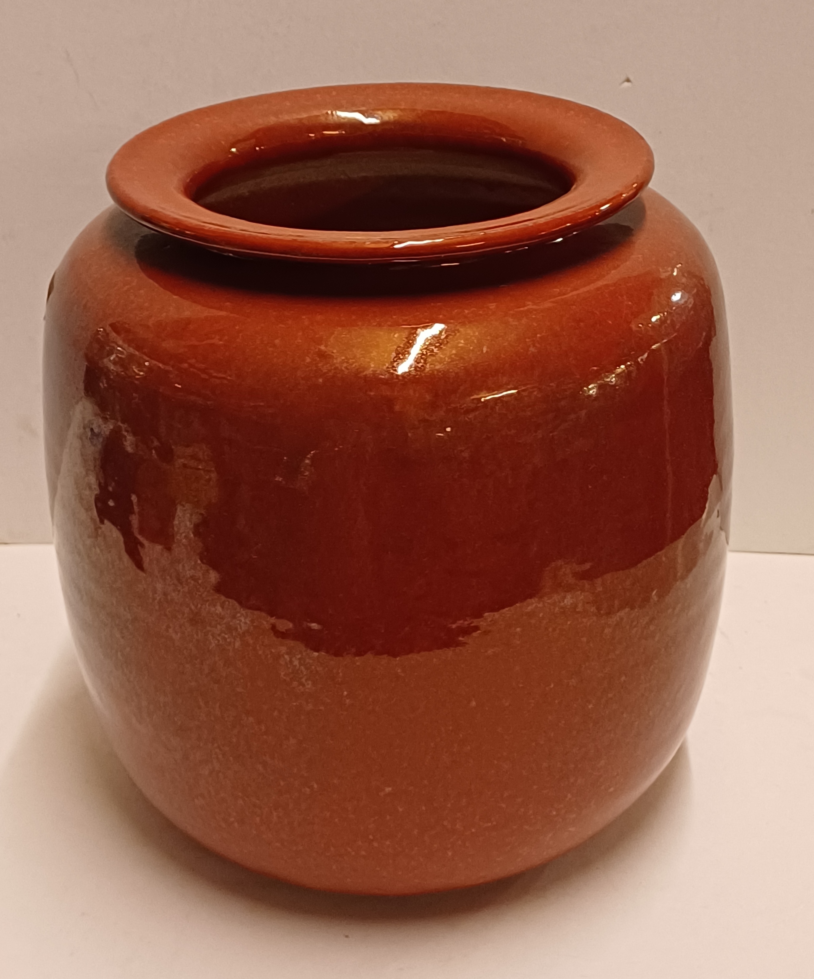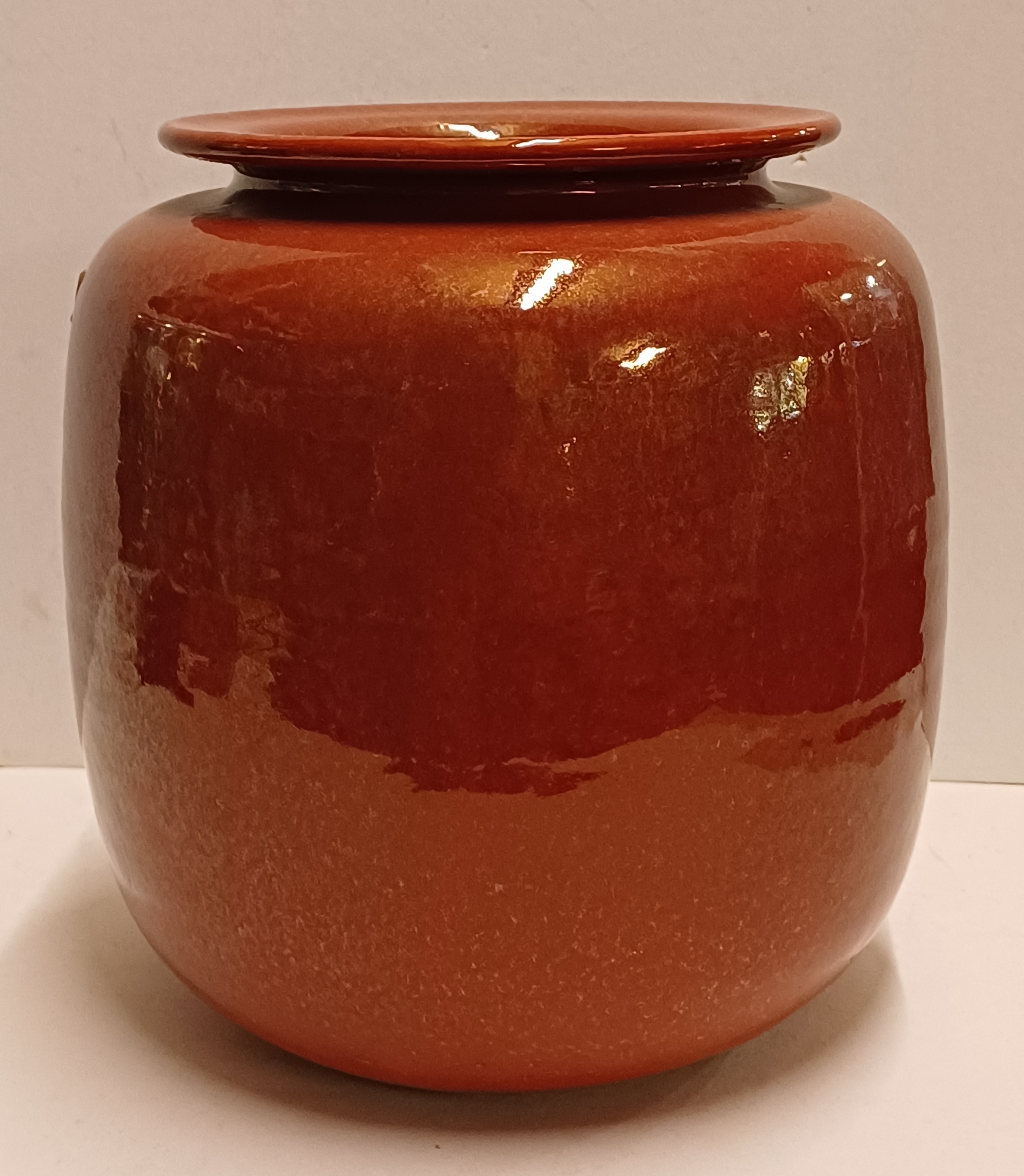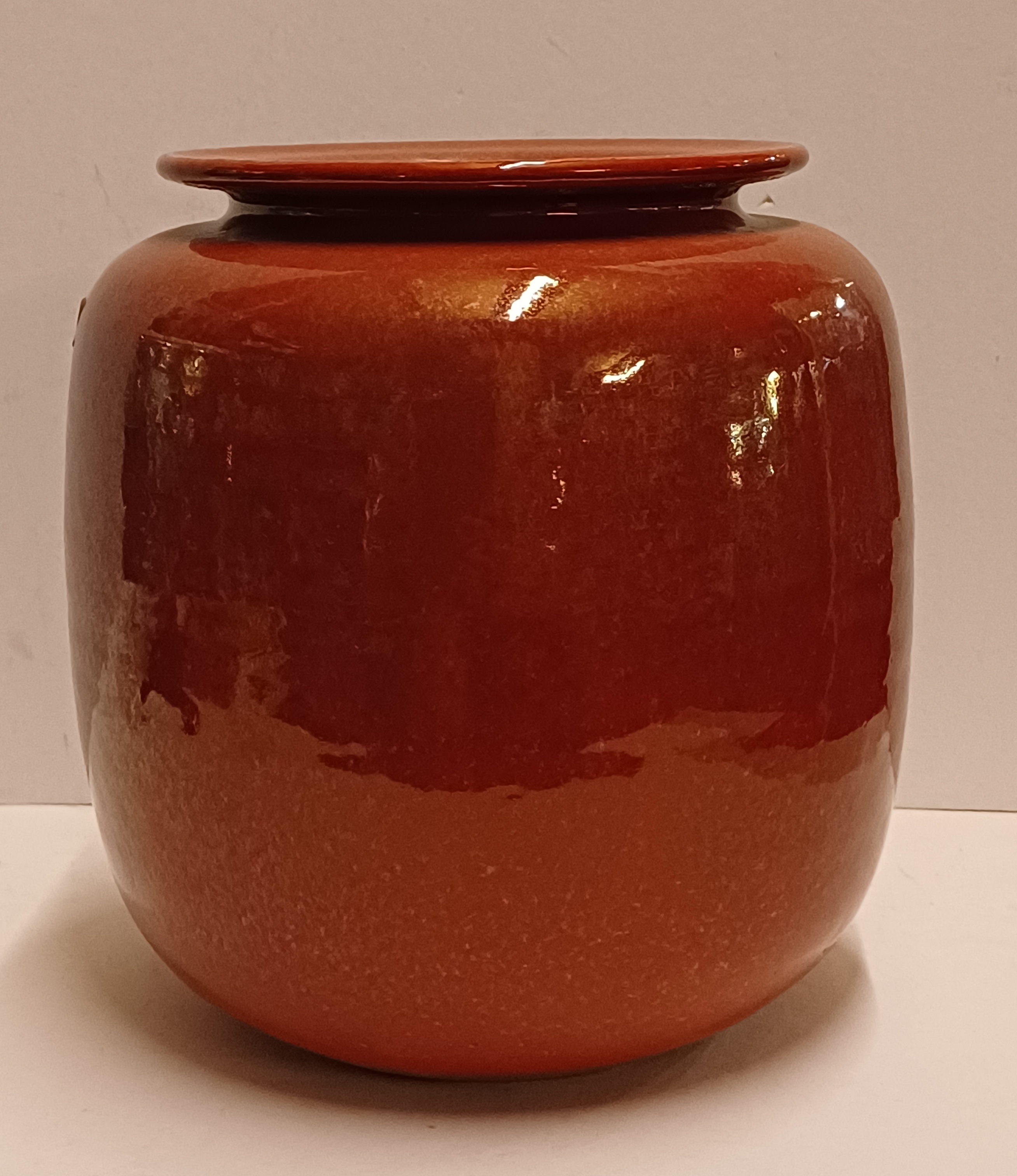 Grand vase Unica avec un glaçure brillante Sang de Boeuf. Signé sur le dessous.