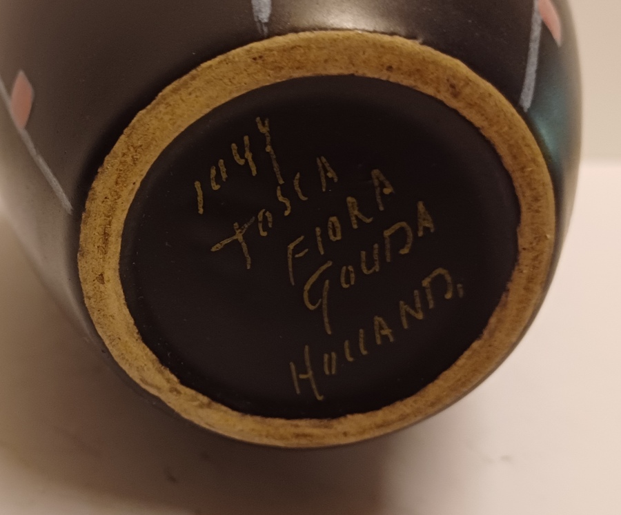 Vase en faïence avec décoration Tosca. Dessous avec marque de fabrique.