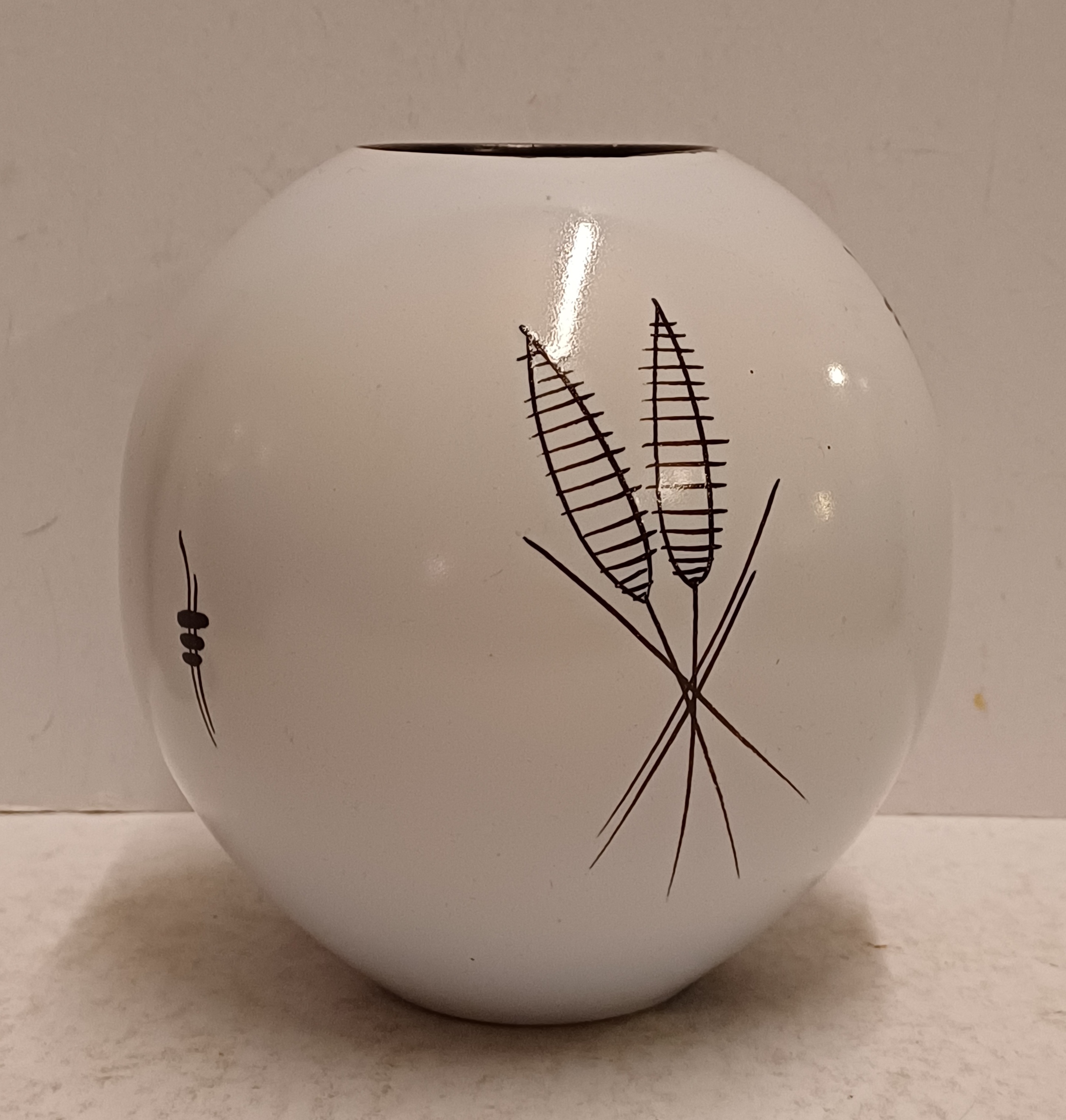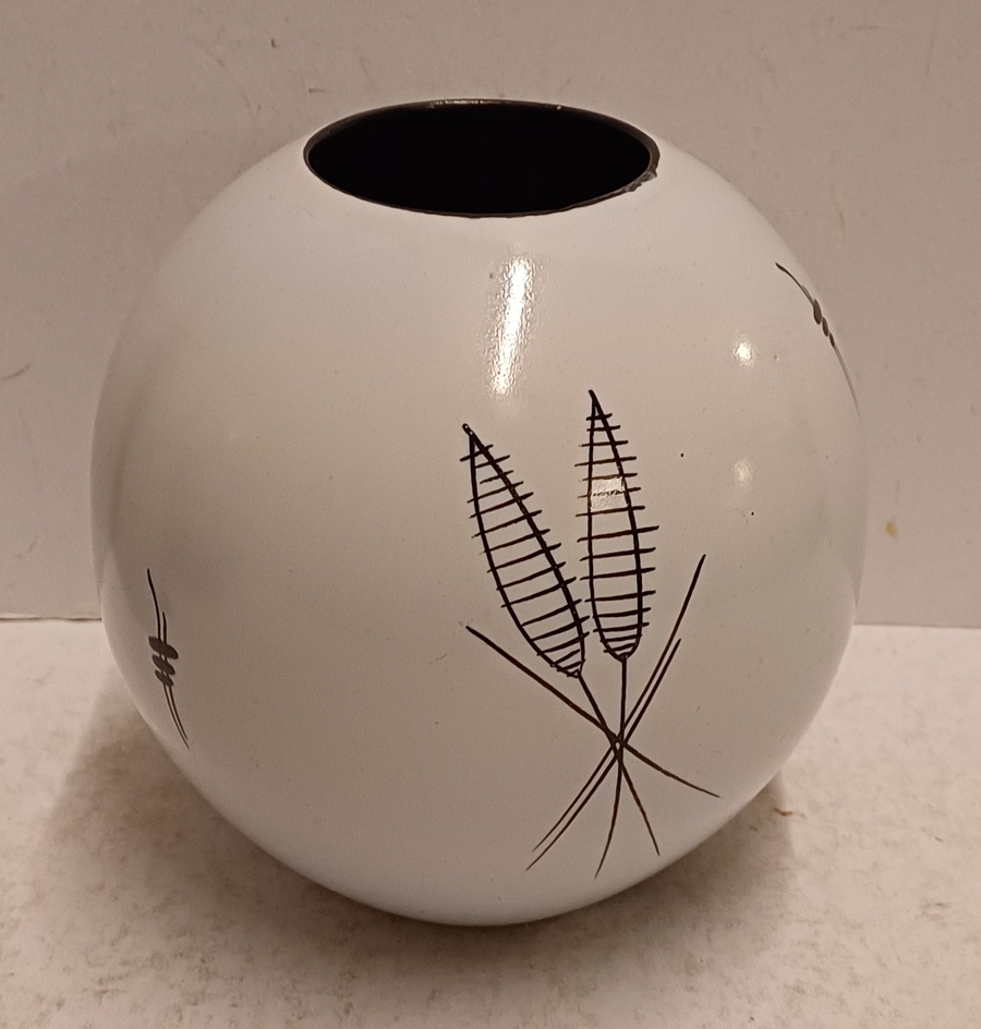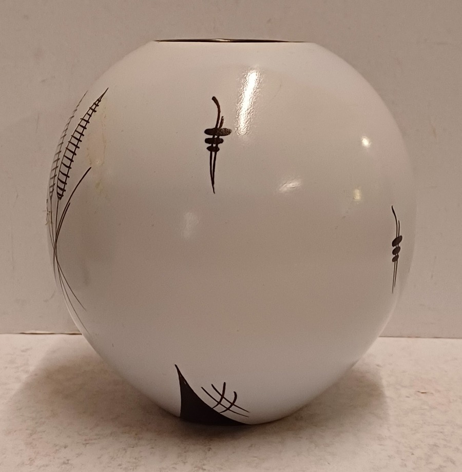 Platelen vaas met decor Capri op grijs fond. Onderzijde met fabrieksmerk en modelnummer.