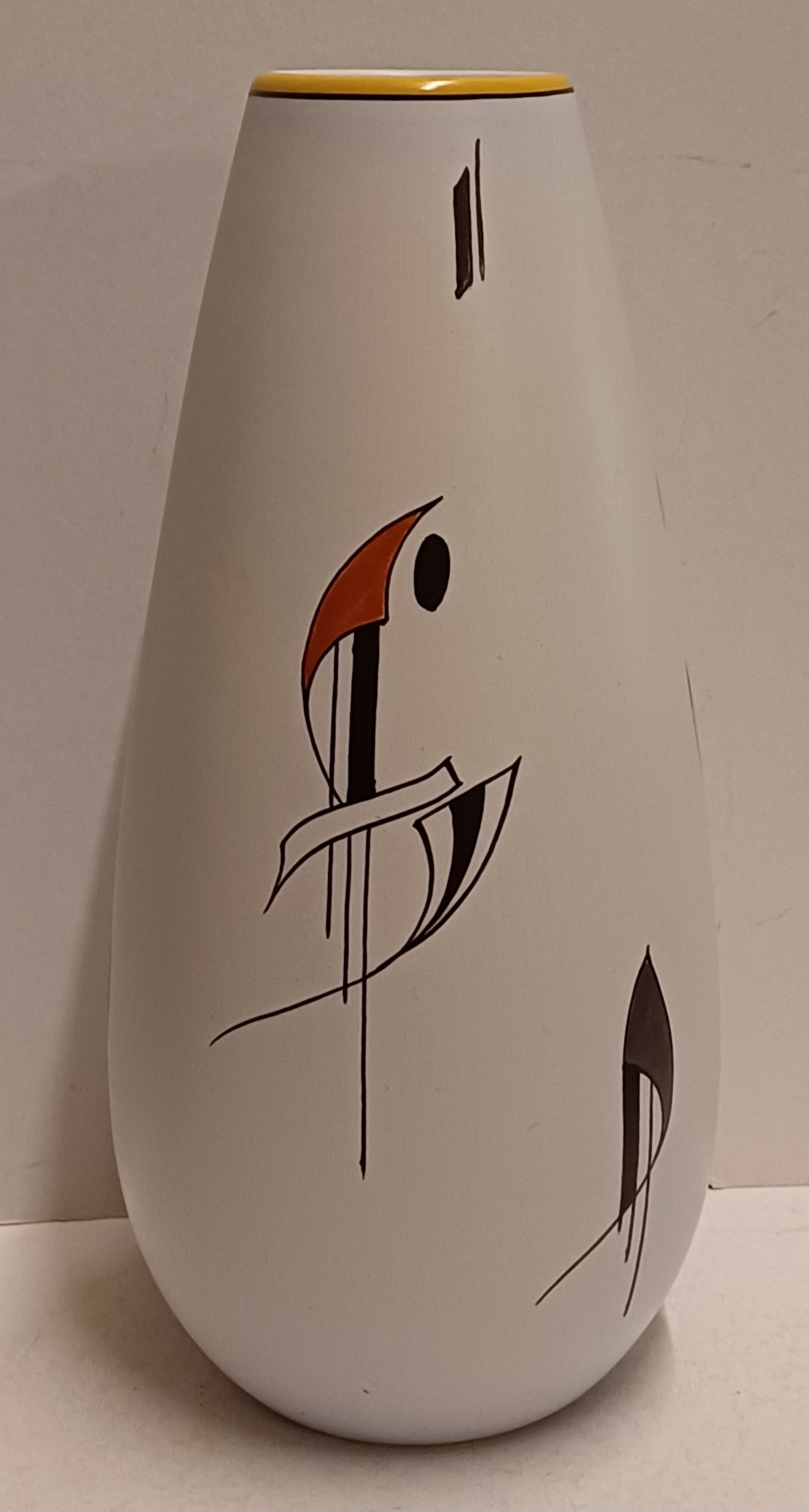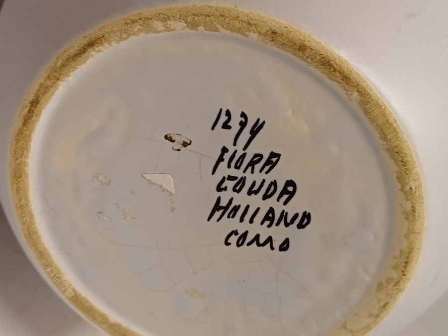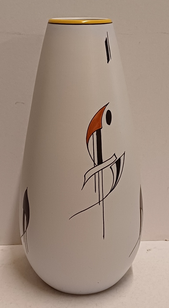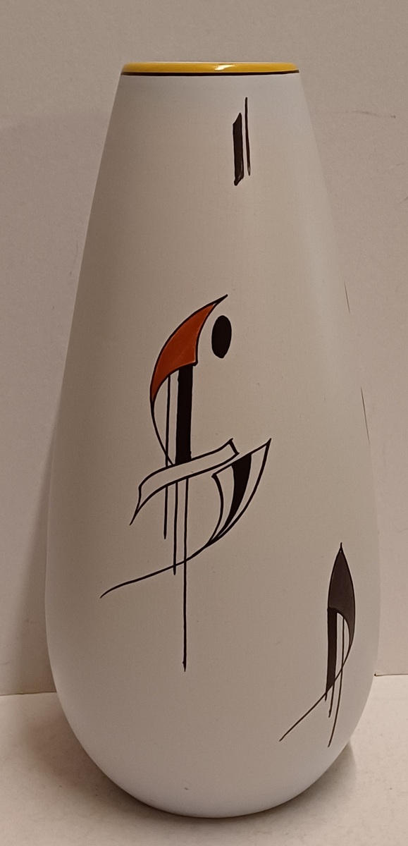 Vase en faïence avec décor sixties Como, grande version. Dessous avec marque peinte et numéro de modèle.