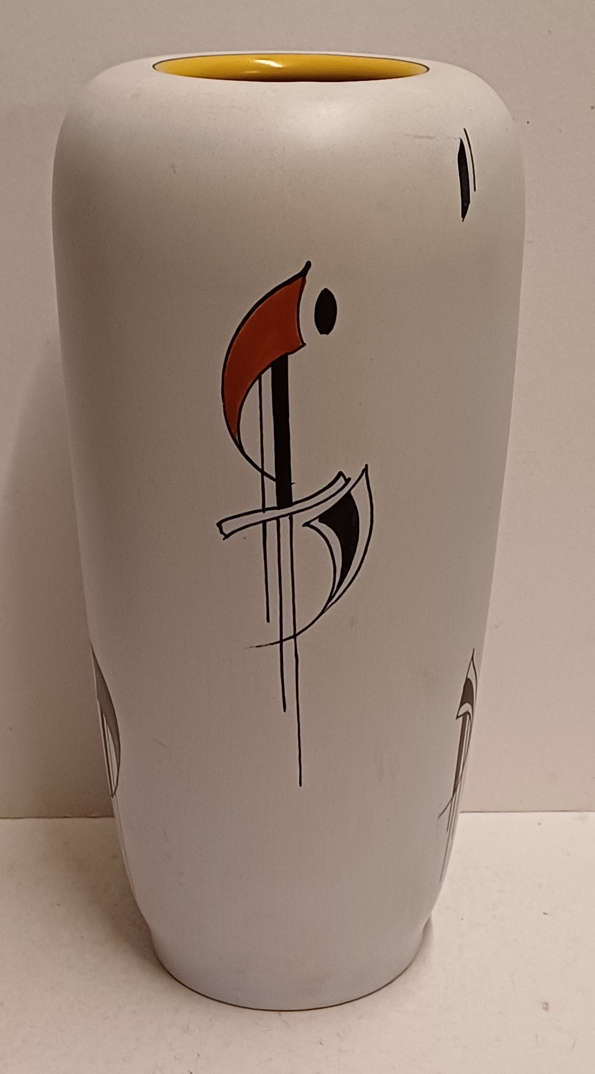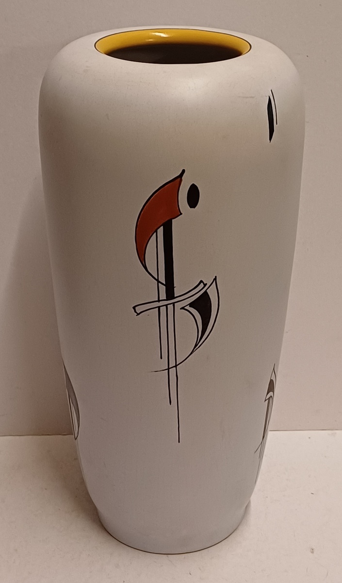 Vase en faïence avec un décor sixties Como, grande version. Base avec marque peinte et numéro de modèle.