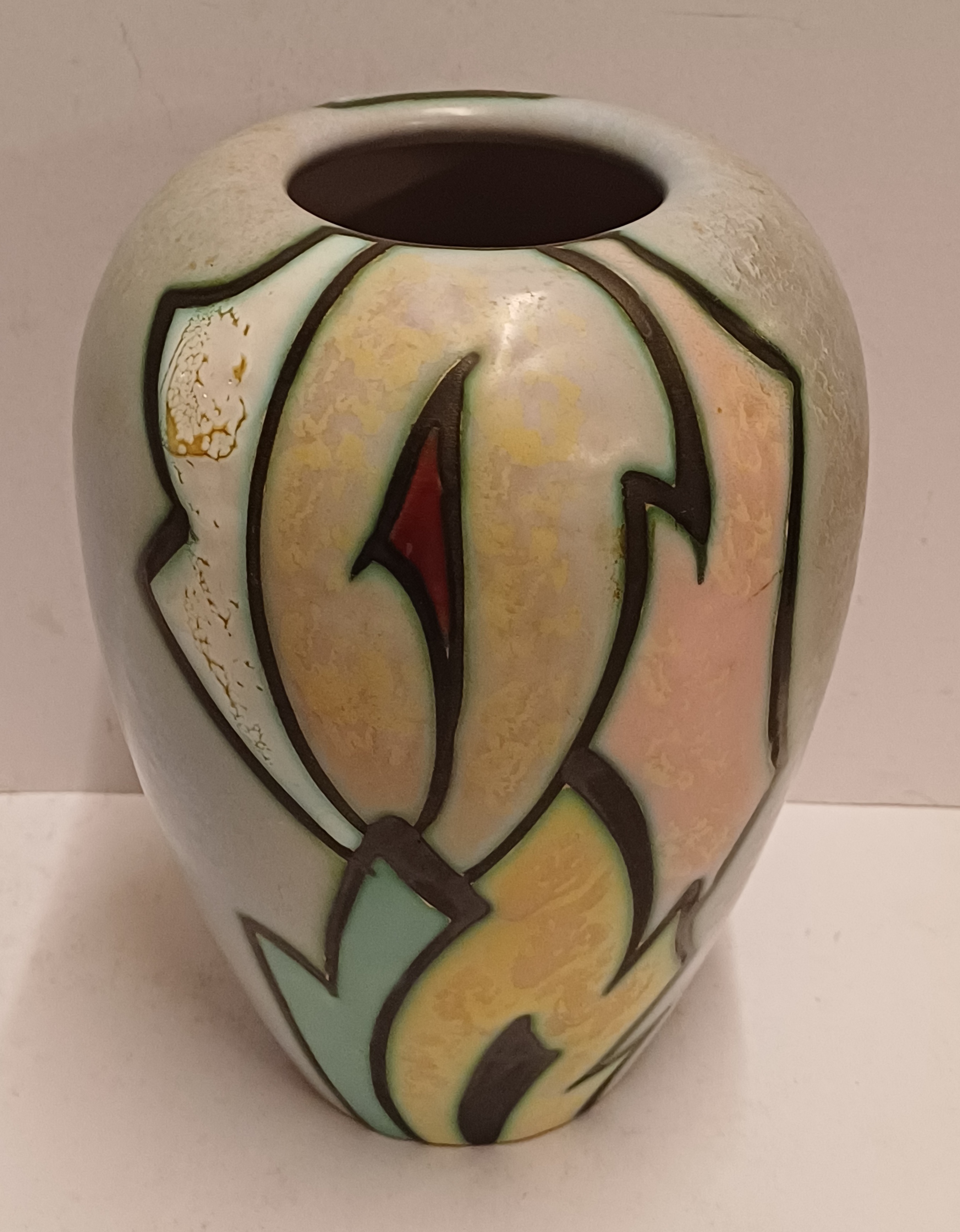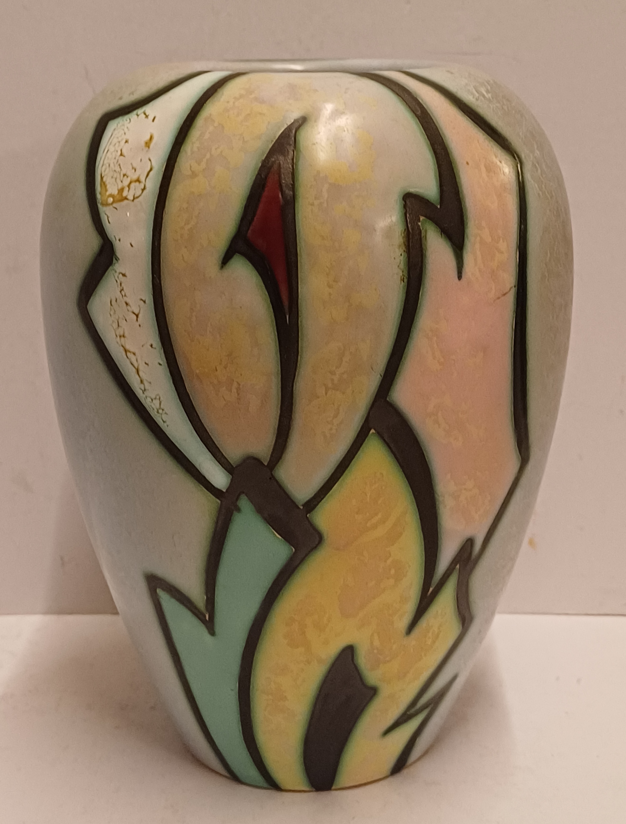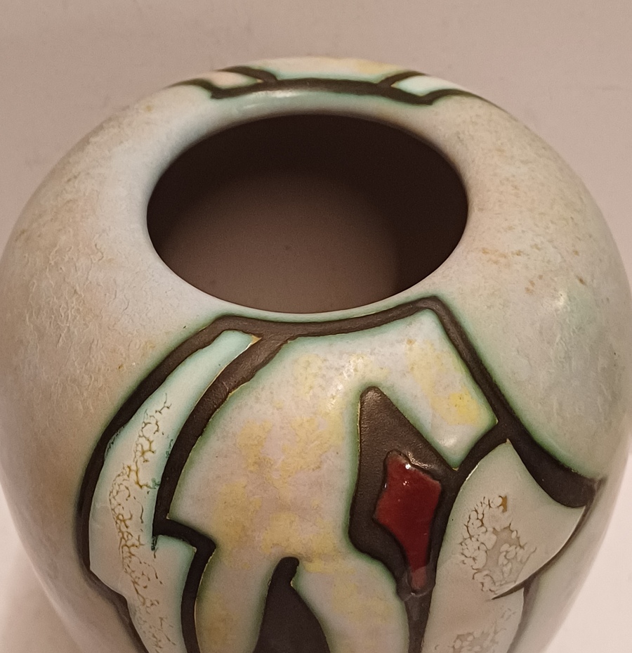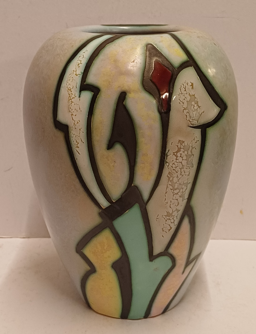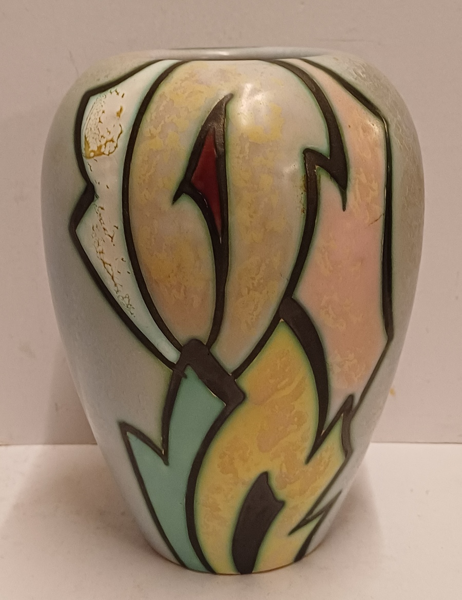 Vaas in goede staat, klein verbrand glazuur plekje in het wit.