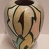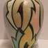 Platelen vaas met gestileerd floraal decor Artistique op lichtblauw fond. Onderzijde gemerkt en genummerd 1491.
