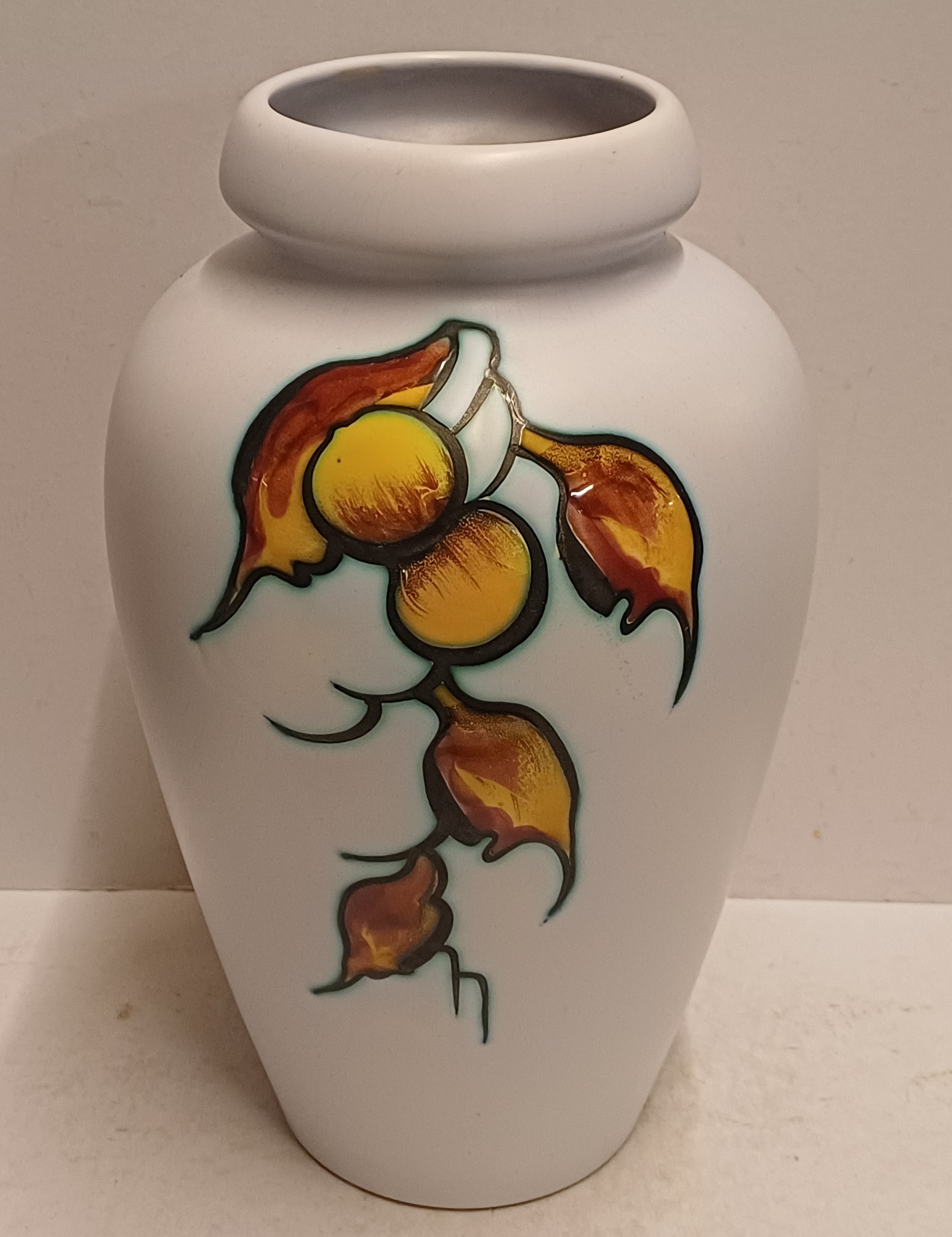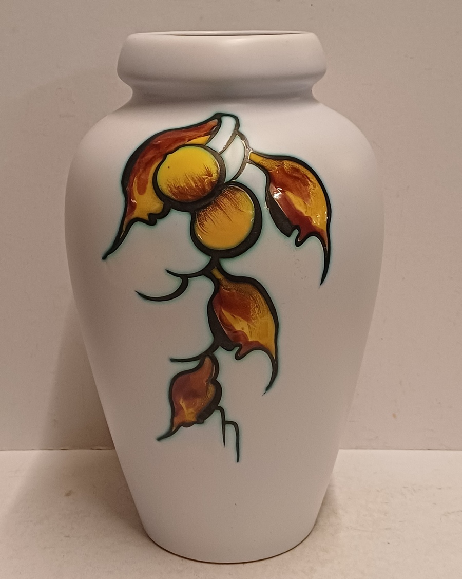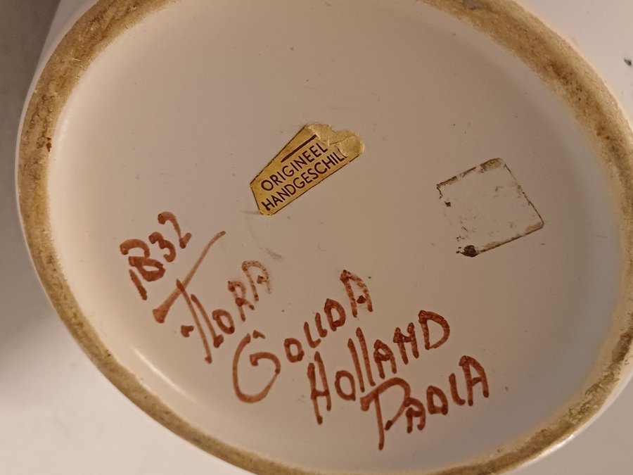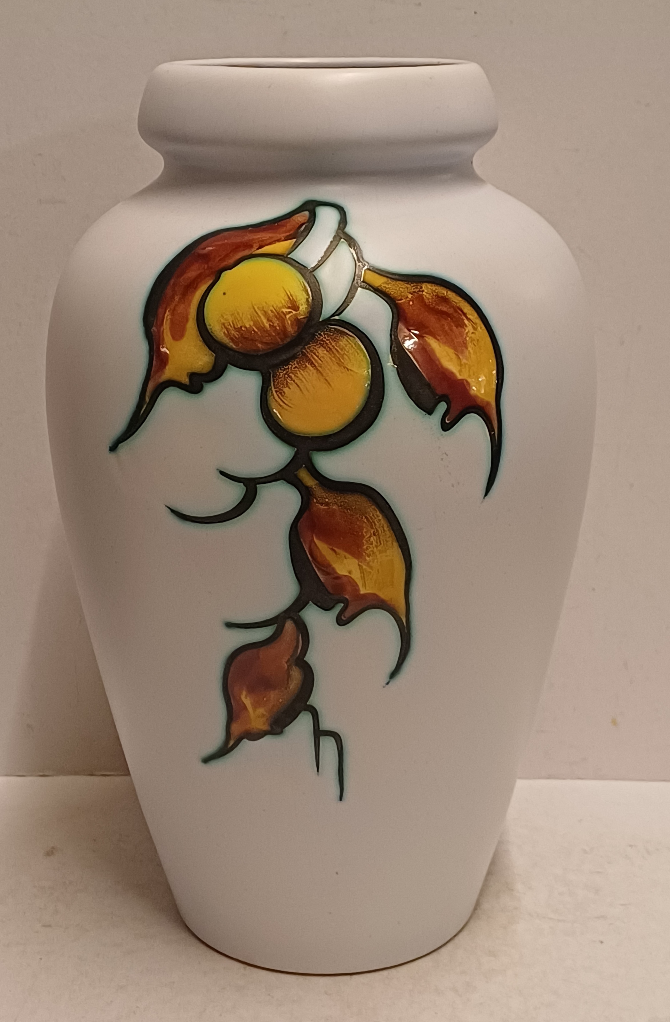 Grote plateel vaas met floraal gestileerd decor Paola. Onderzijde gemerkt.
