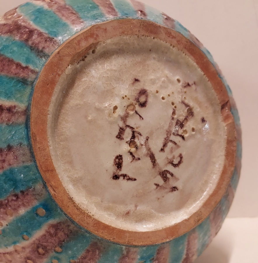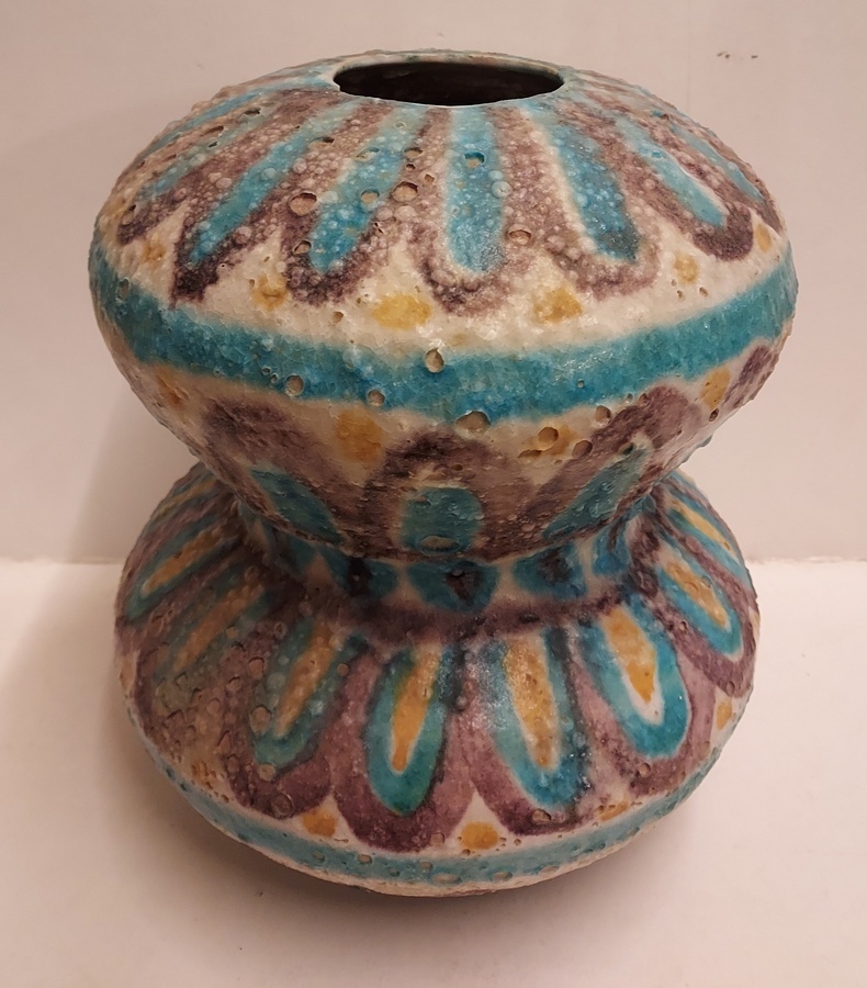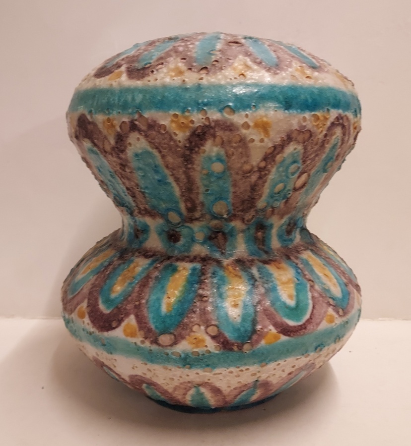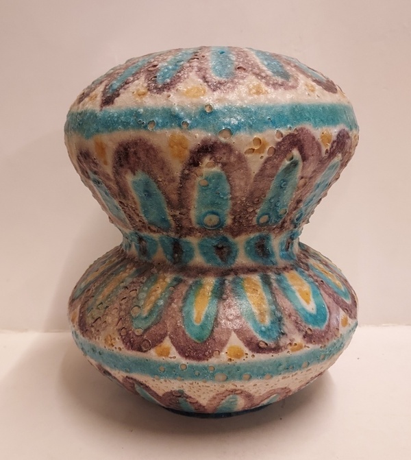 Vase à constriction avec glaçure moussante. Marque peu claire sur le dessous Vietri.