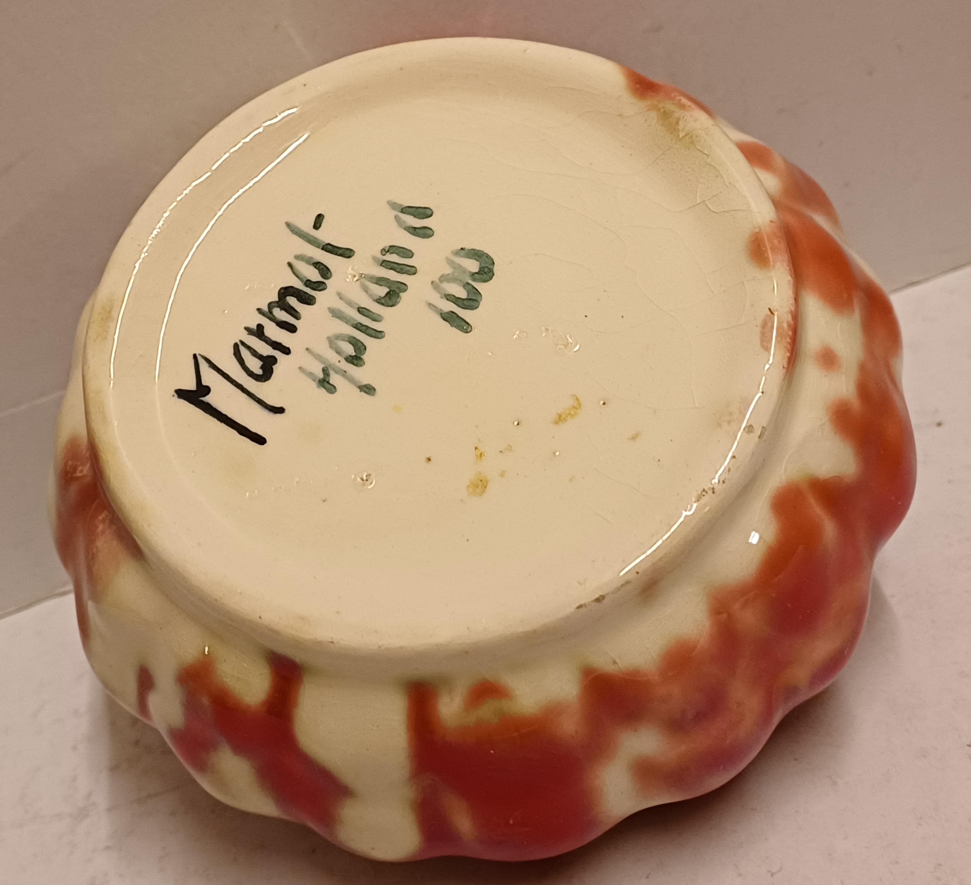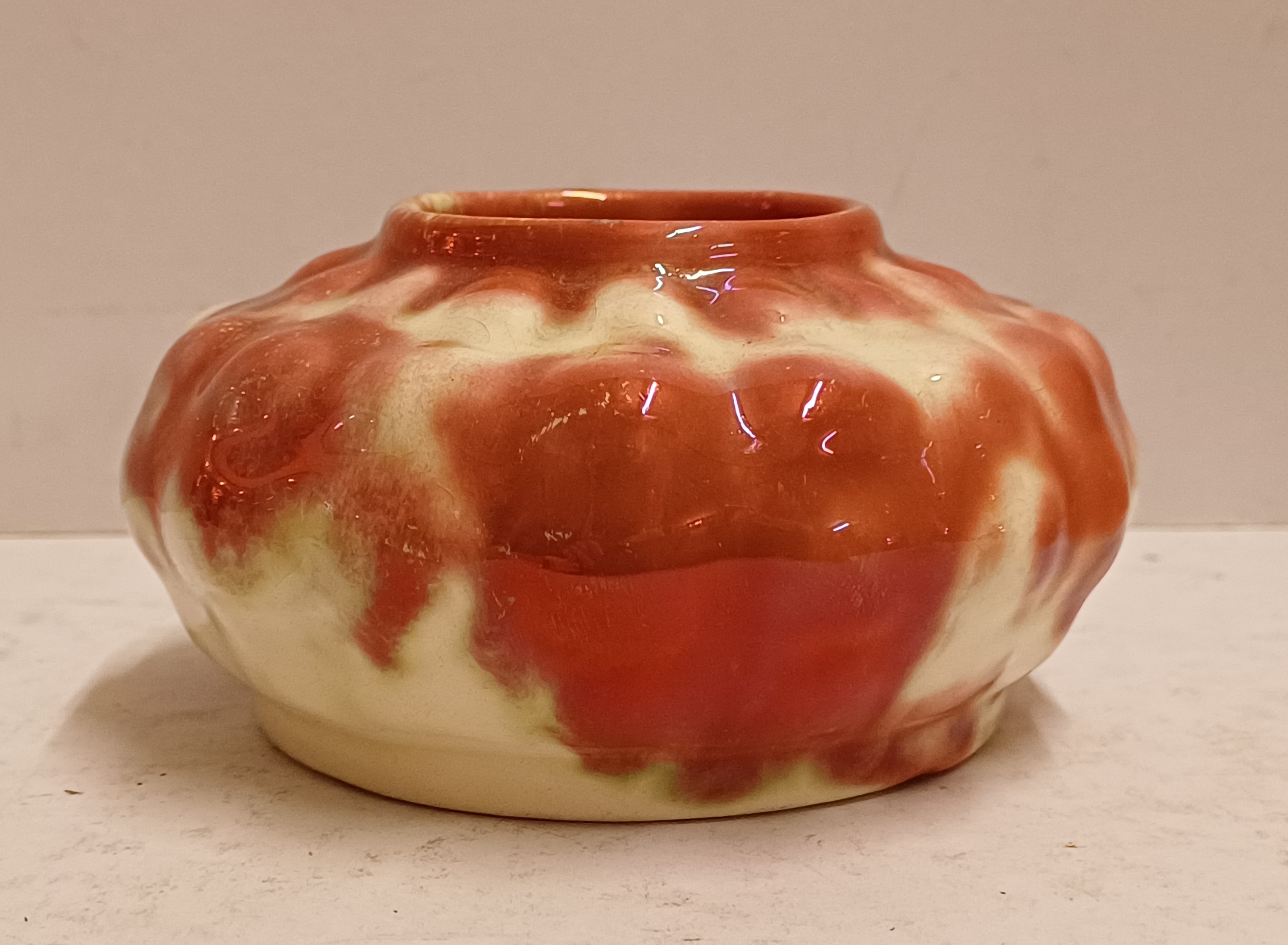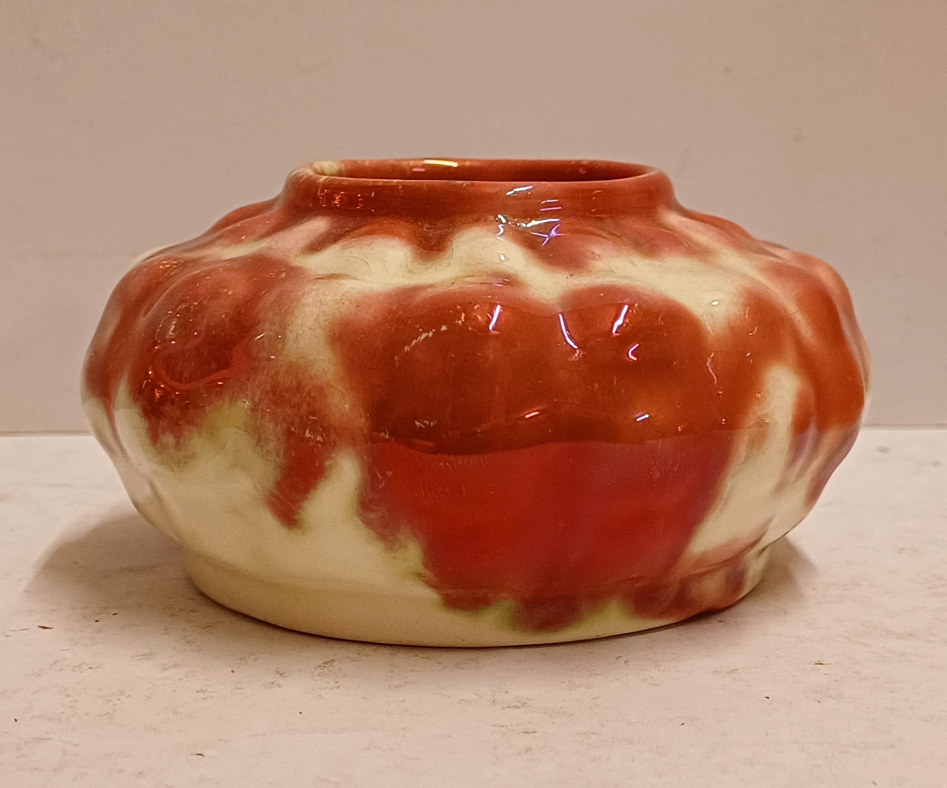 Vaas met rode reflet metalique glazuur. Onderzijde met fabrieksmerk.