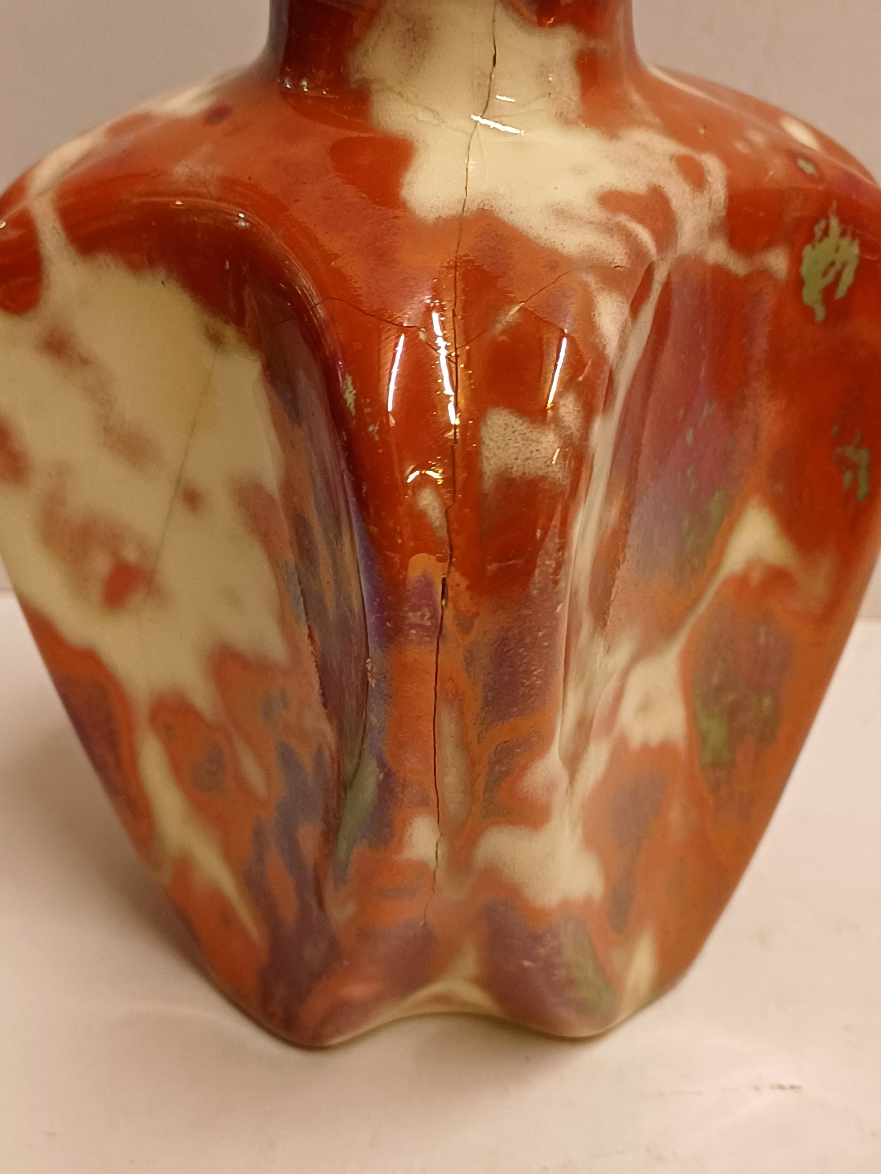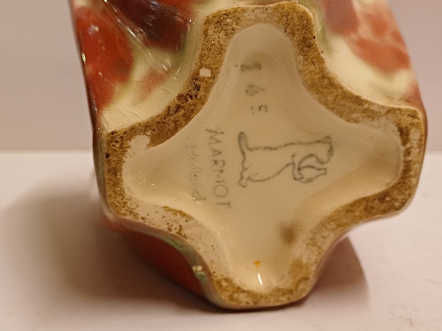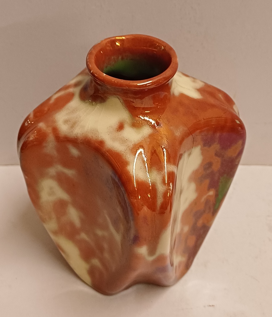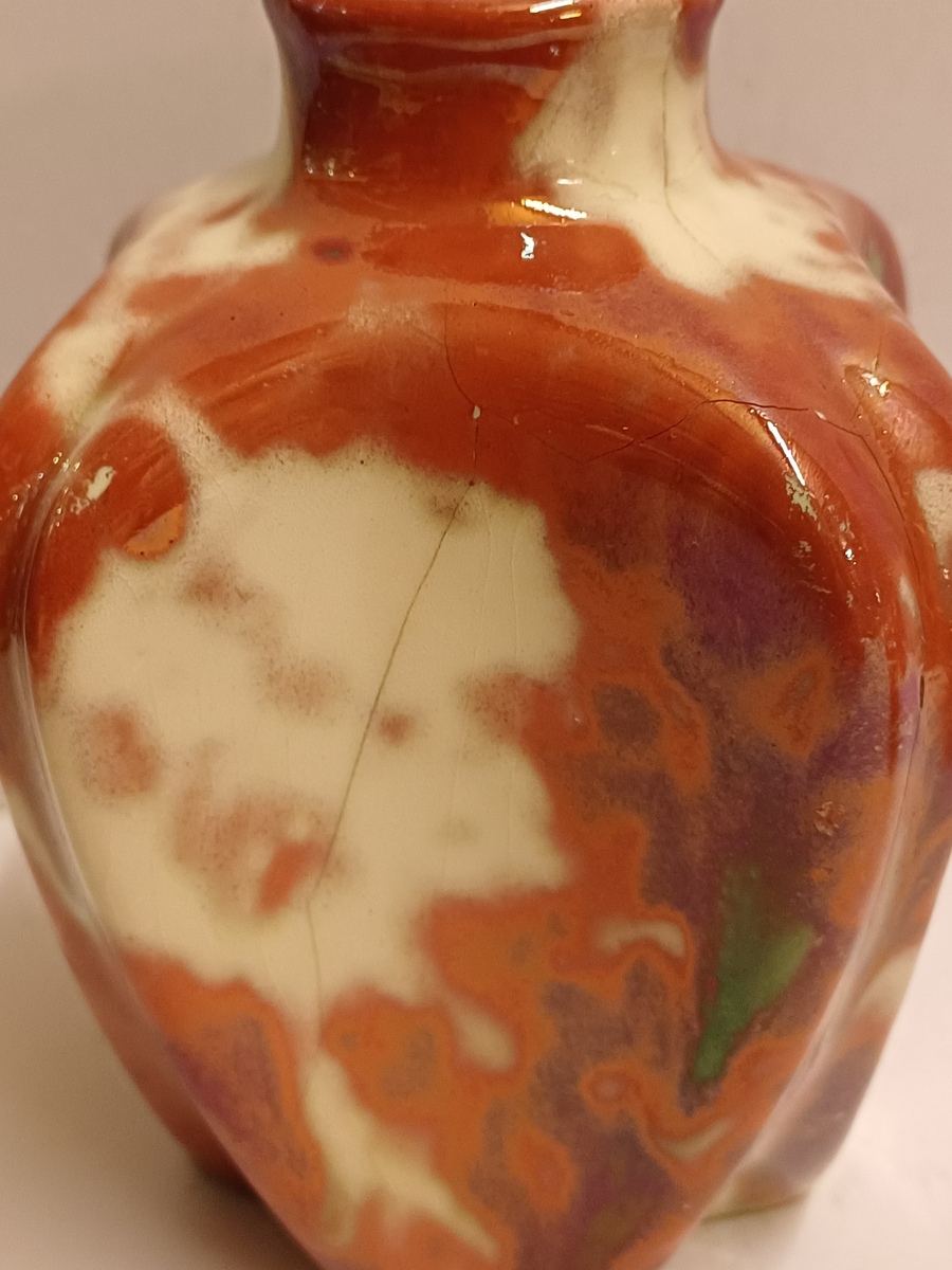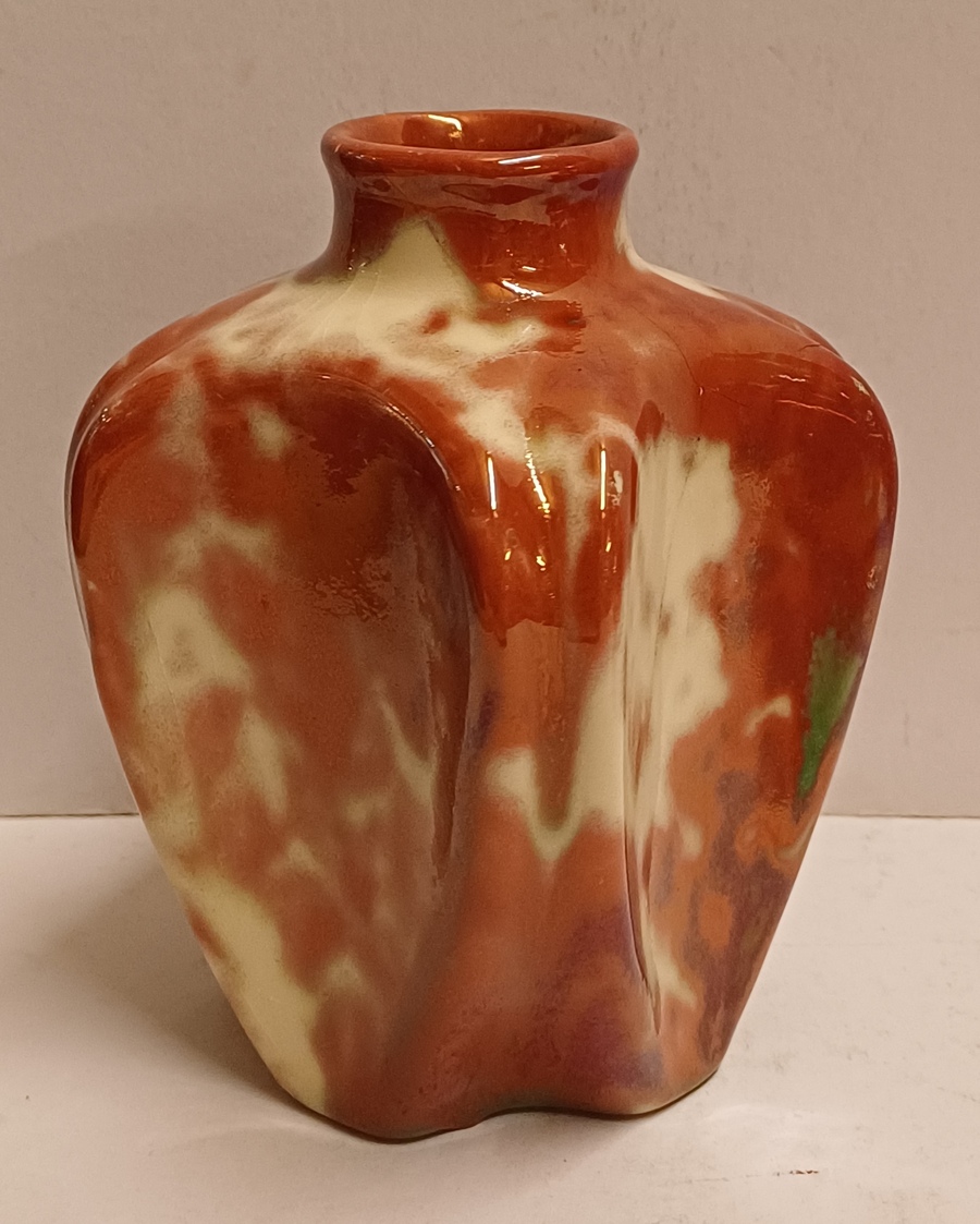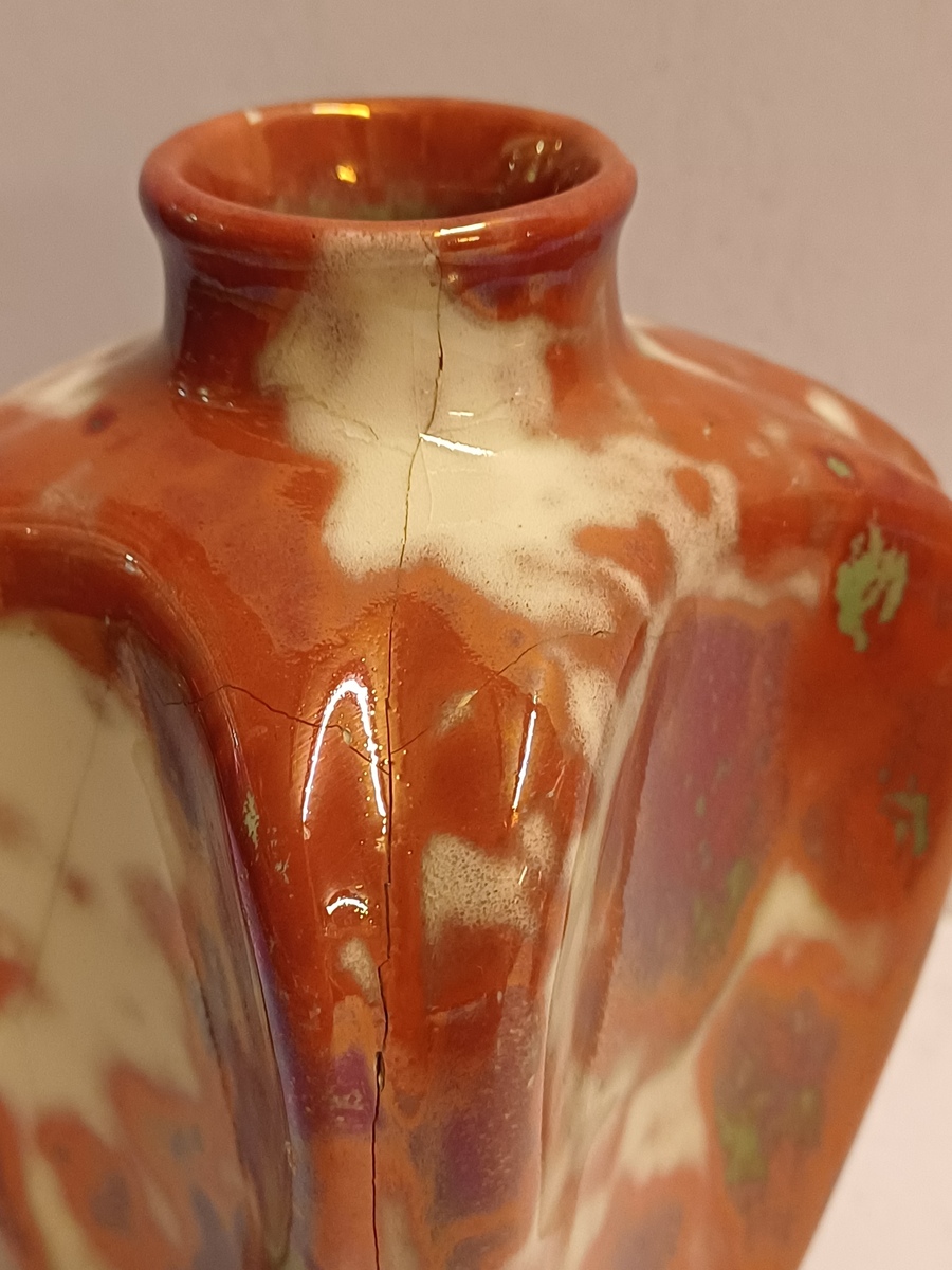Vaas met rode reflet metalique glazuur. Onderzijde met fabrieksmerk.