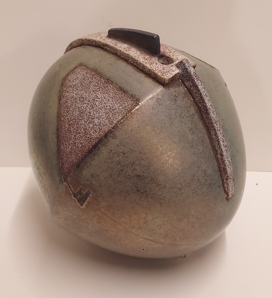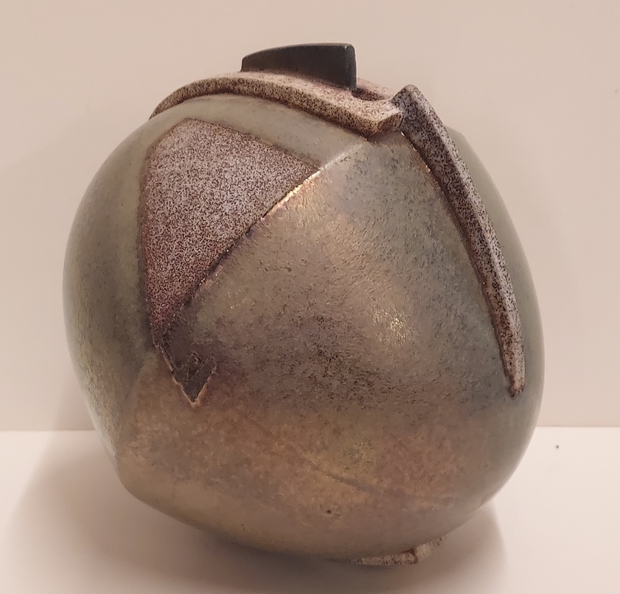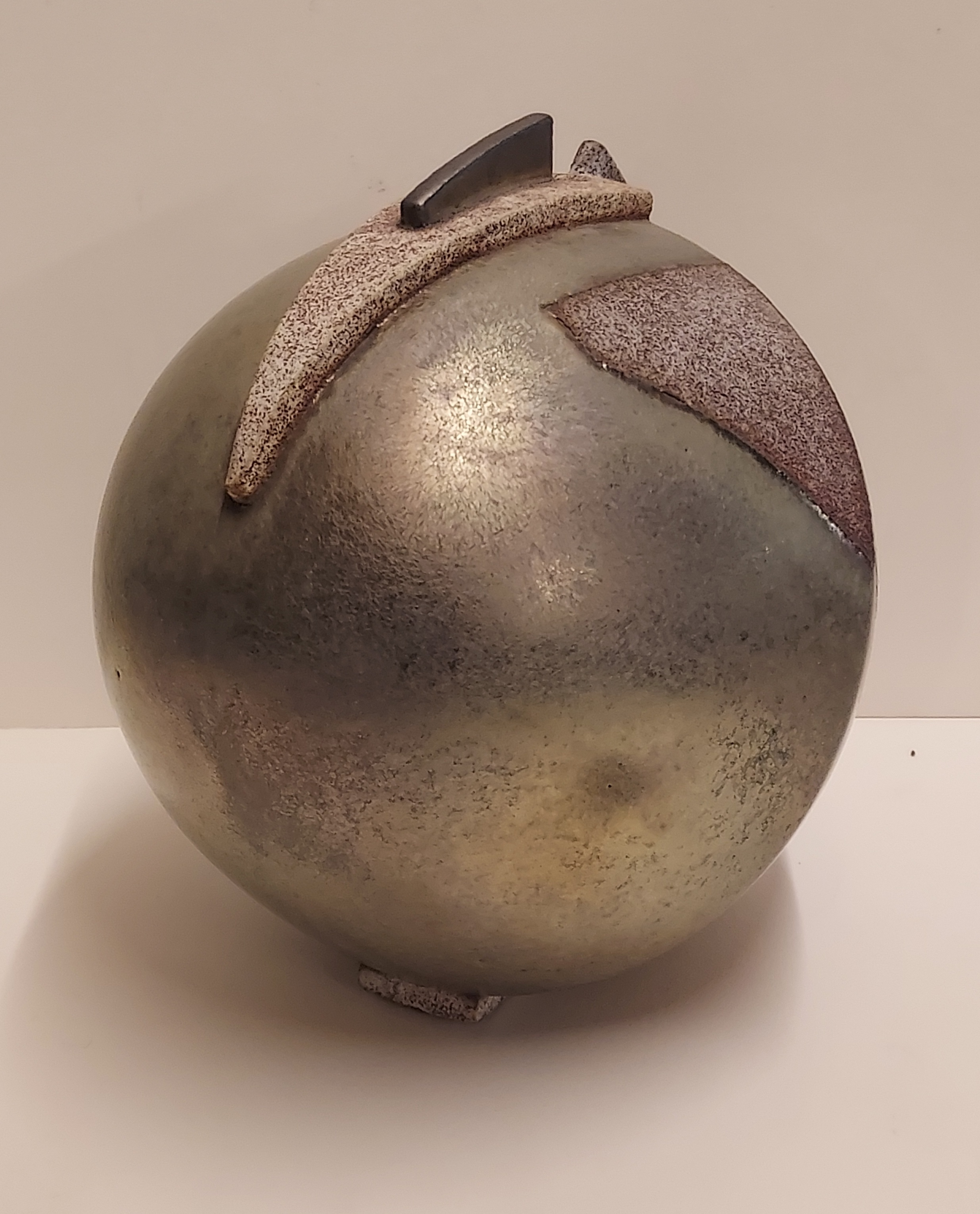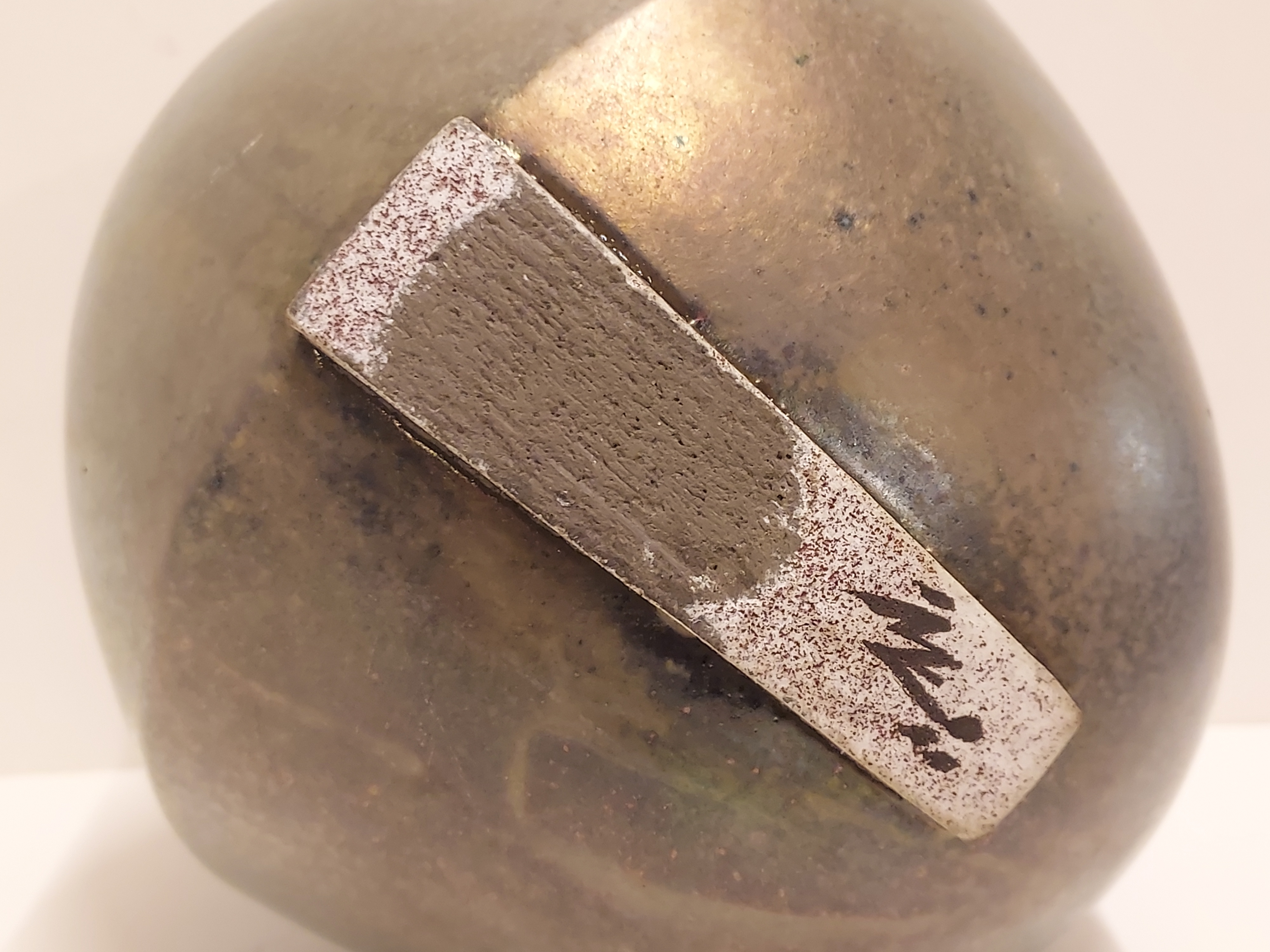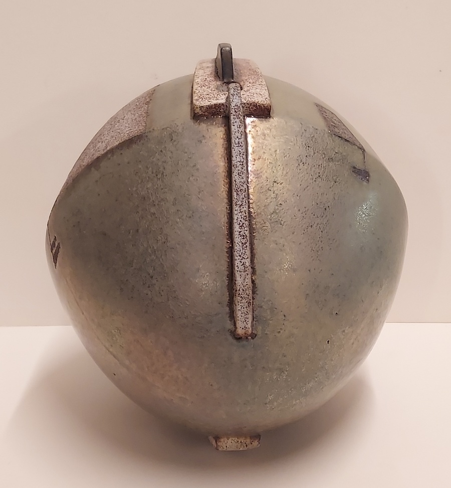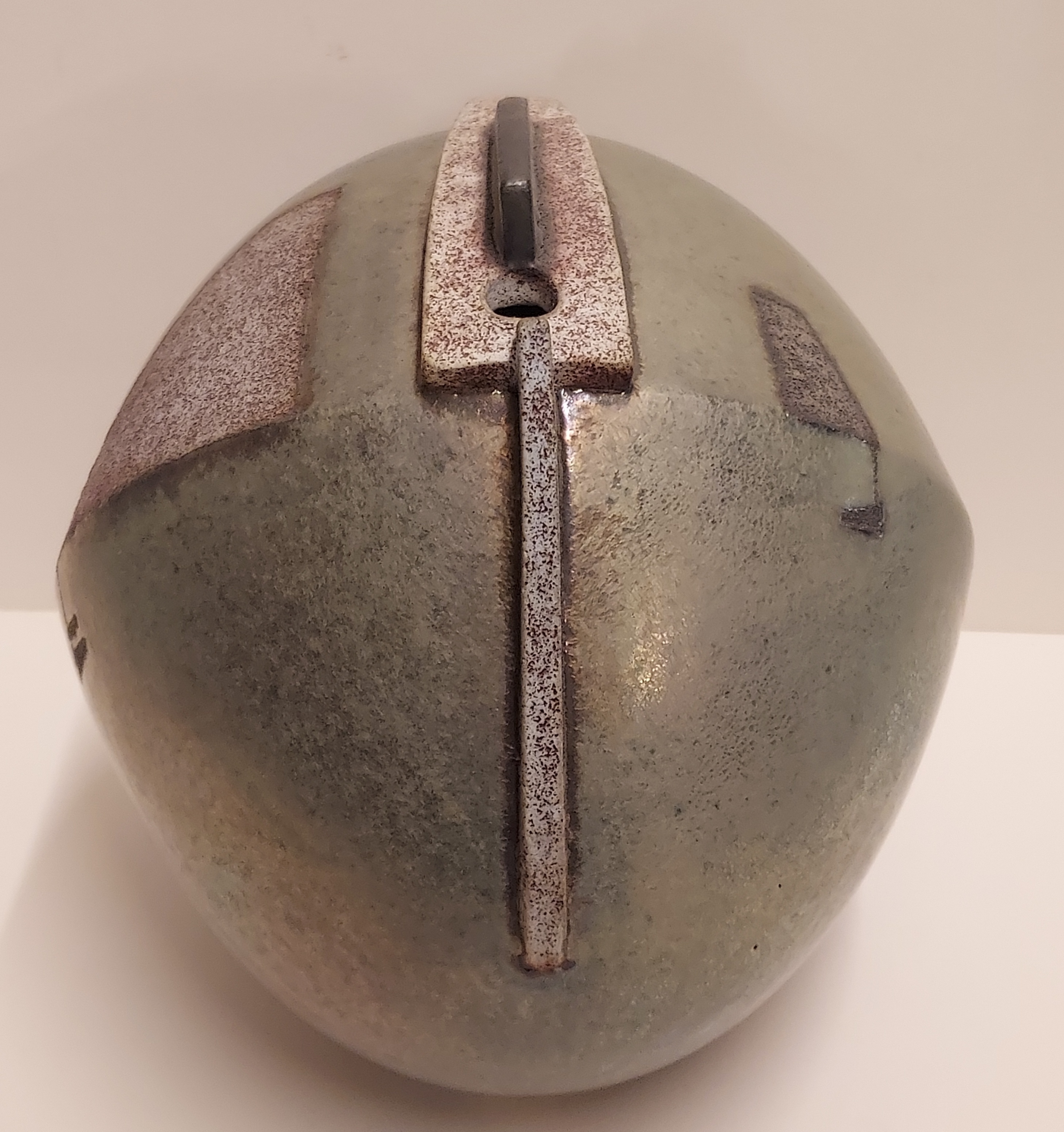 Vase sculptural de forme libre avec un glaçure métallique. Dessous avec monogramme.