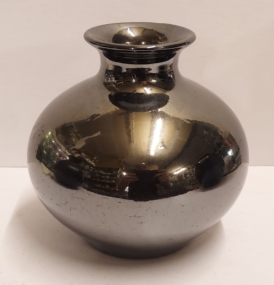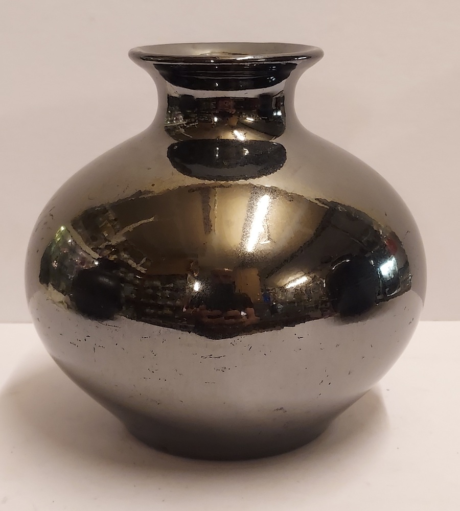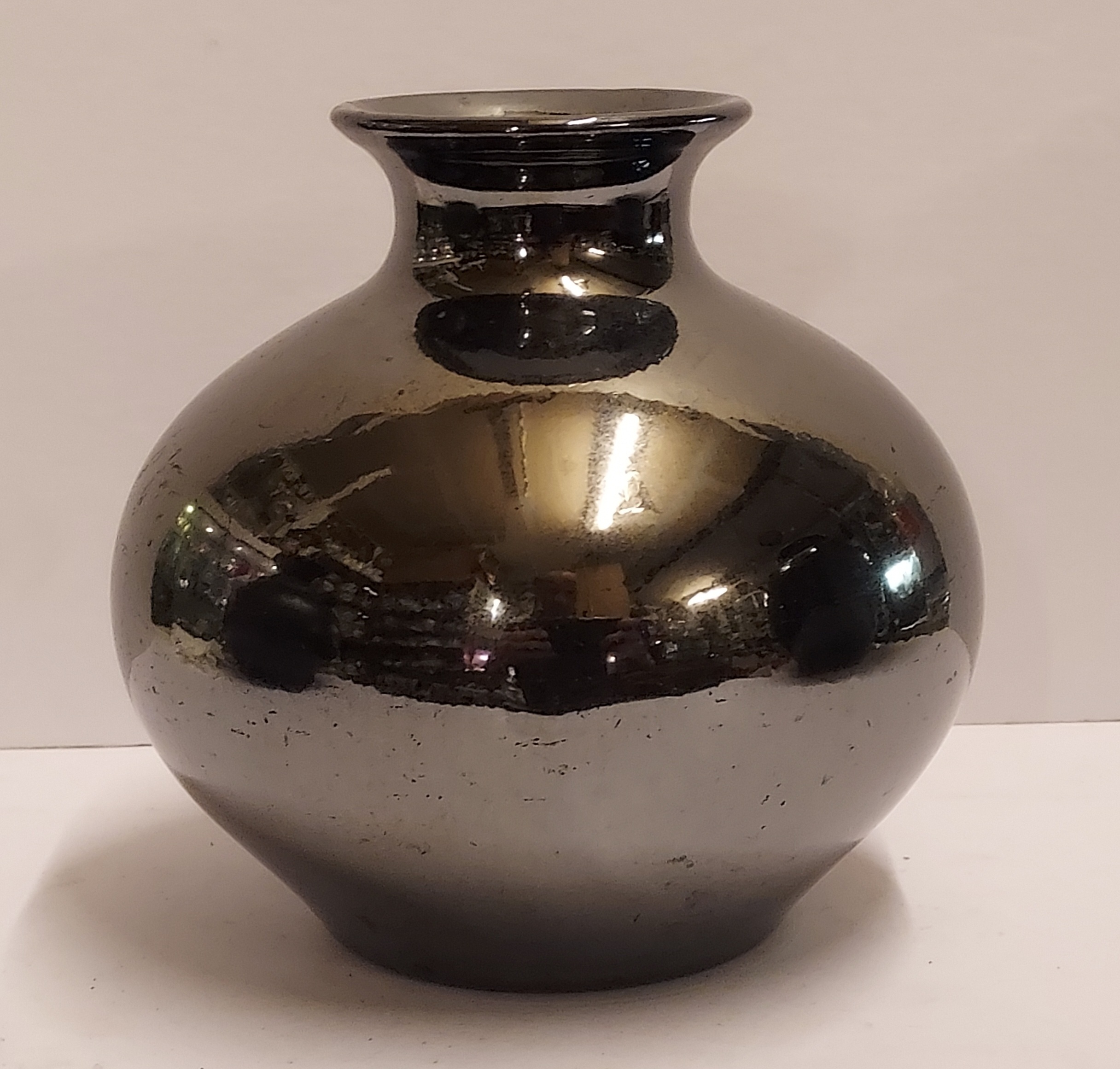 Vase en terre cuite avec un glaçure noire métallique. Base avec marque de fabrique et numéro de modèle 465.