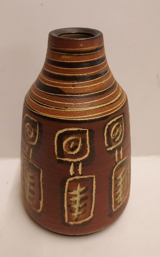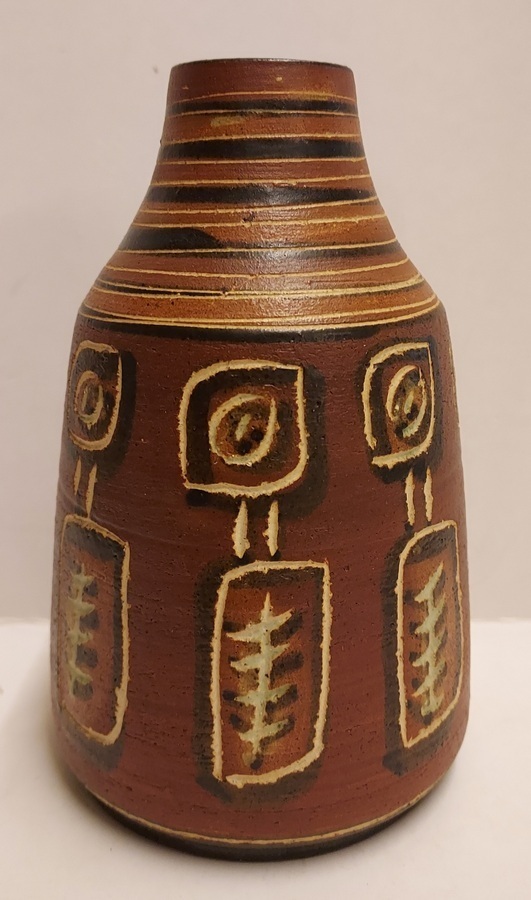 Vase brun avec décoration abstraite. Signé sur le dessous.