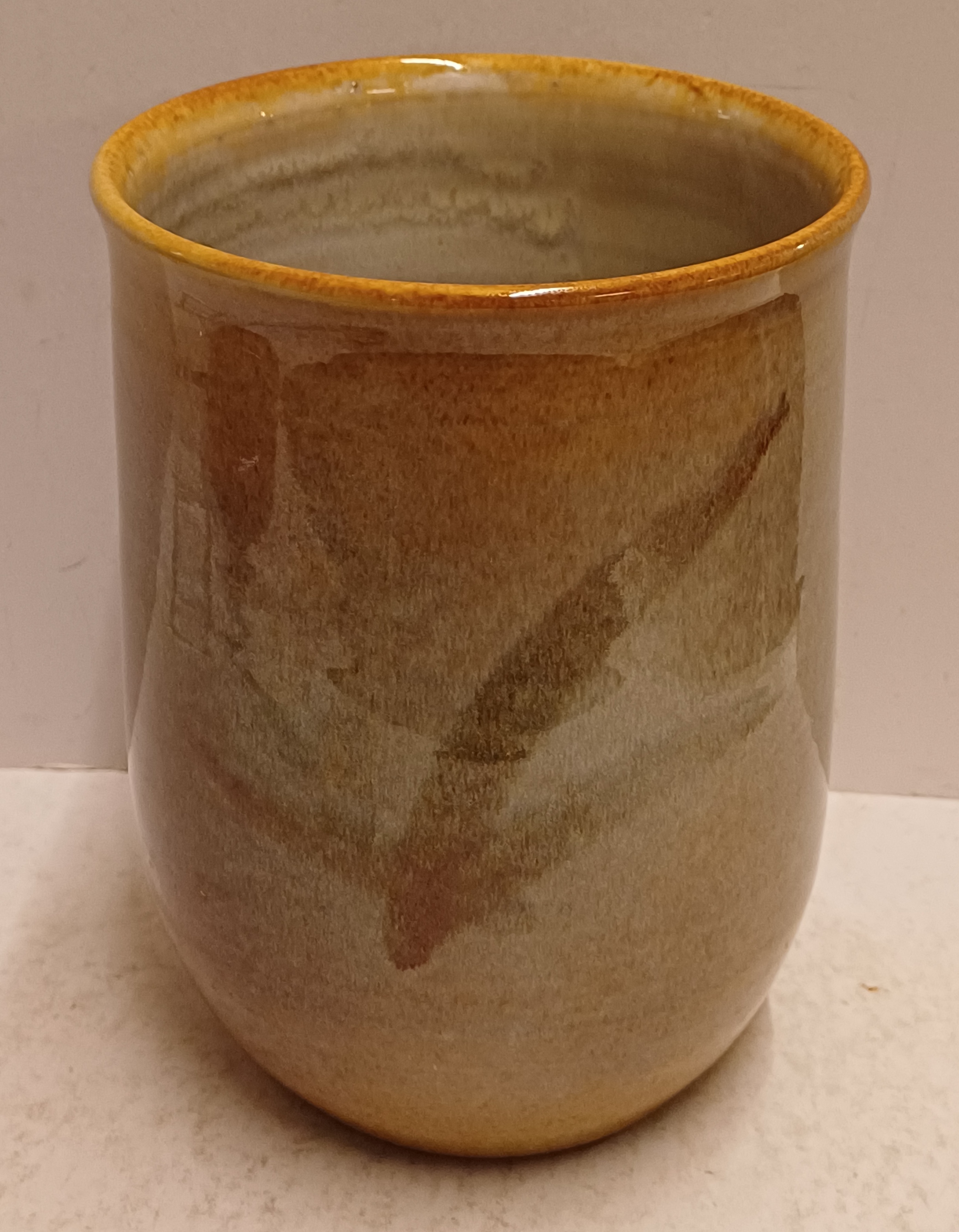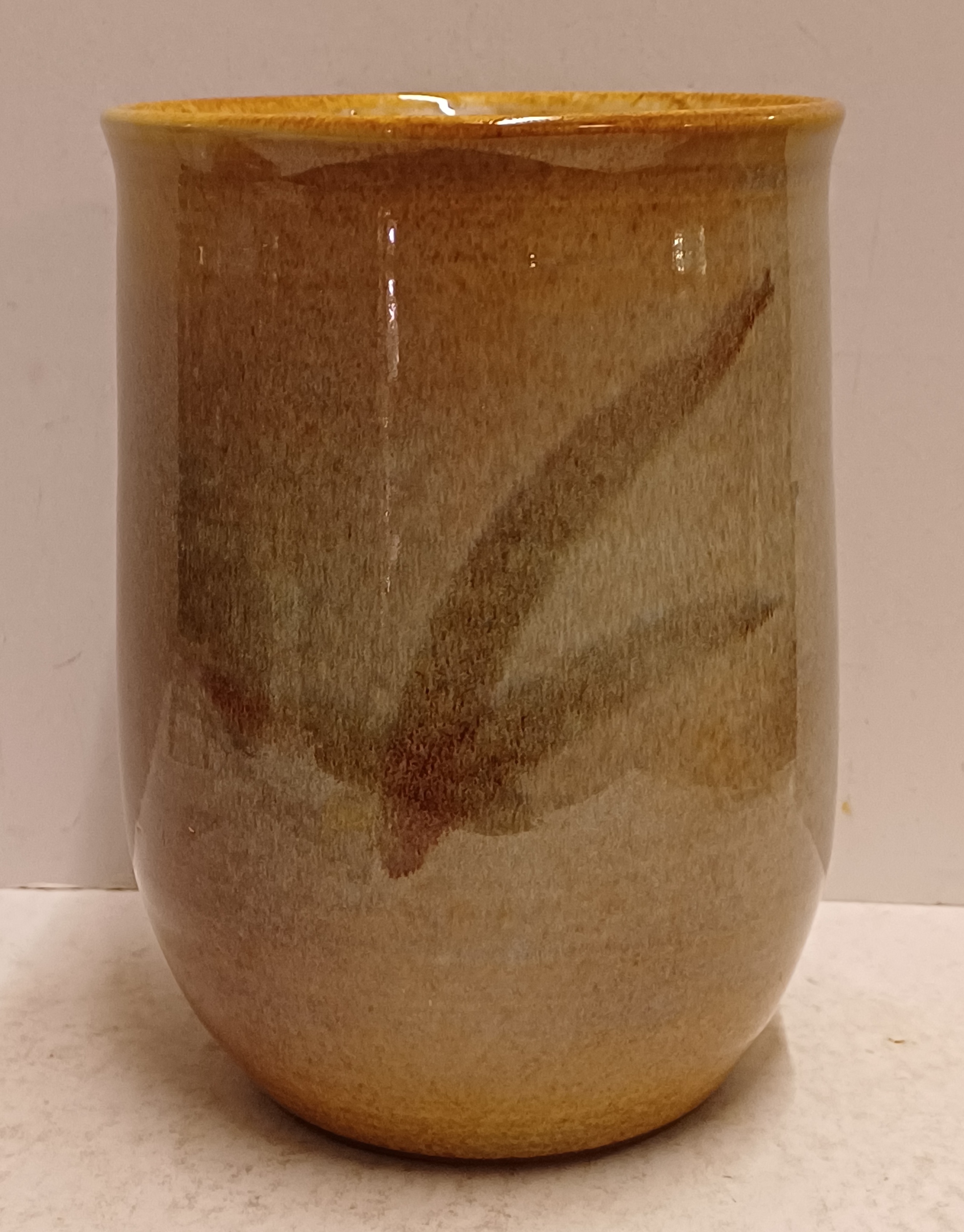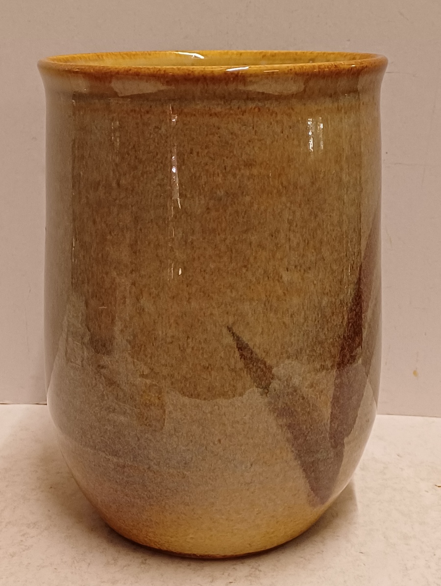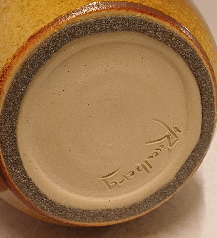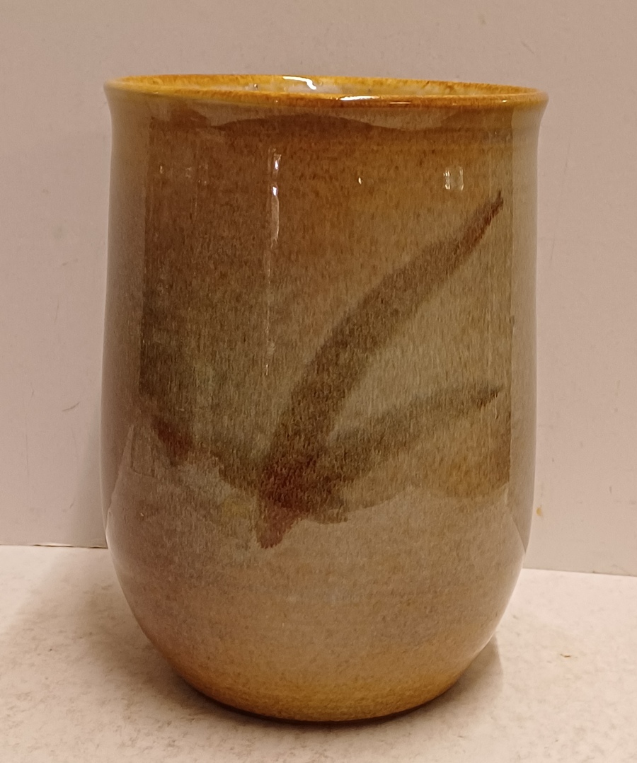 Aardwerken bekervaas met blad decor. Onderzijde gesigneerd H Zaalberg.