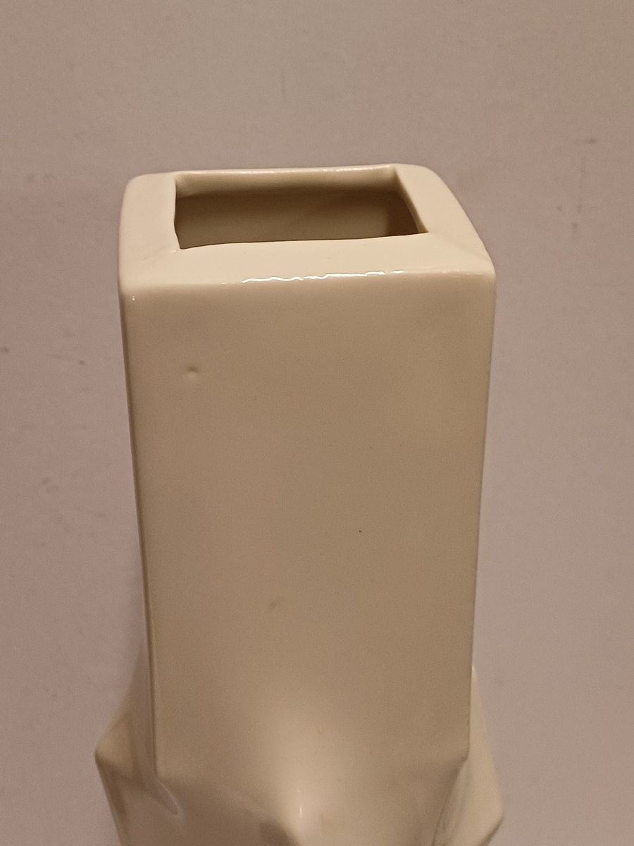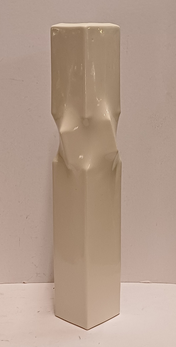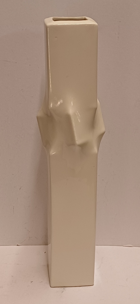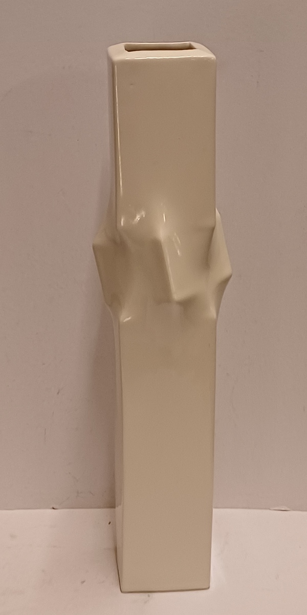Witte porseleinen serica vaas met kreukelingin het midden. Oplage 390 stuks dit is nr 114. Uitvoering eigen studio.