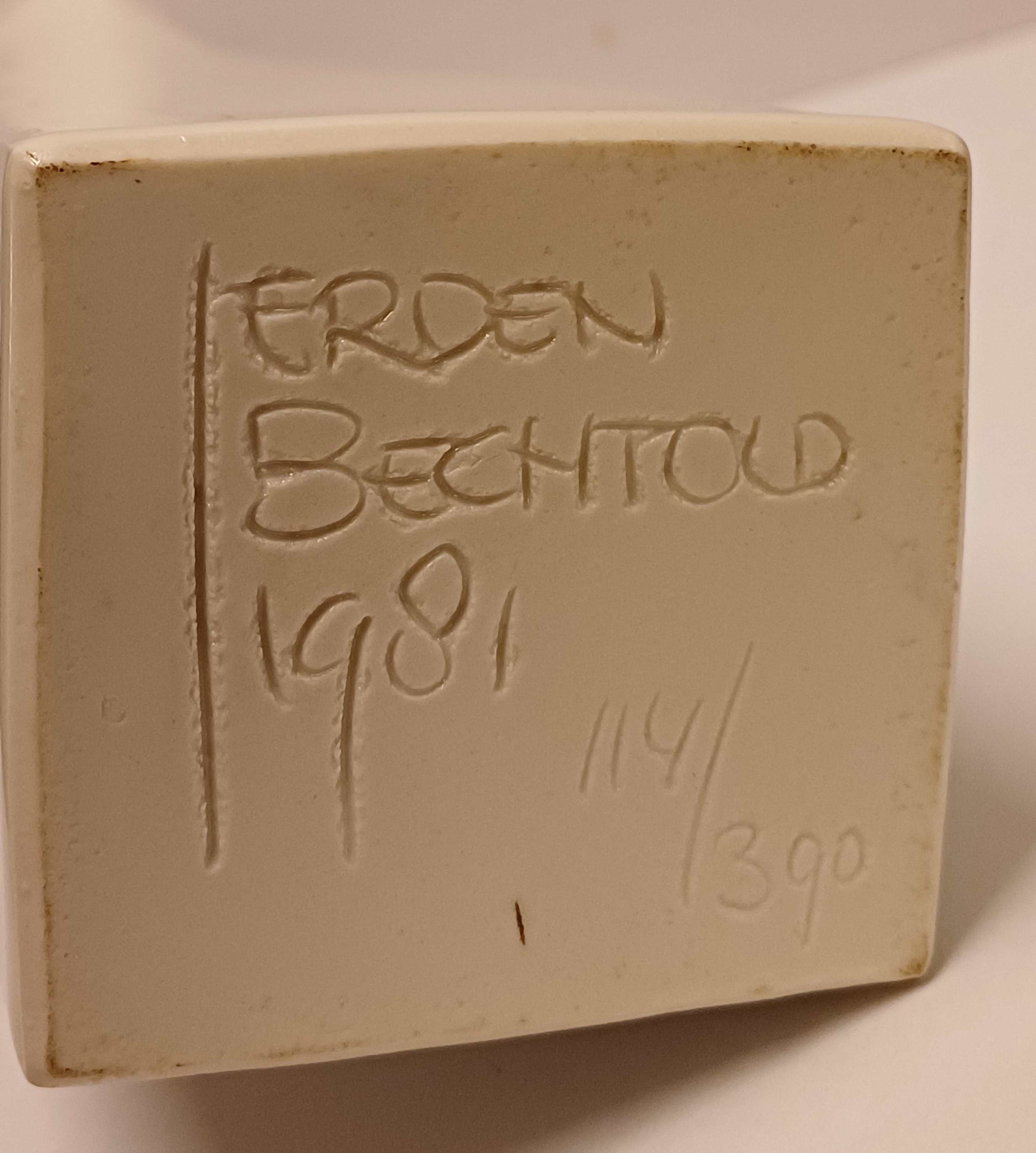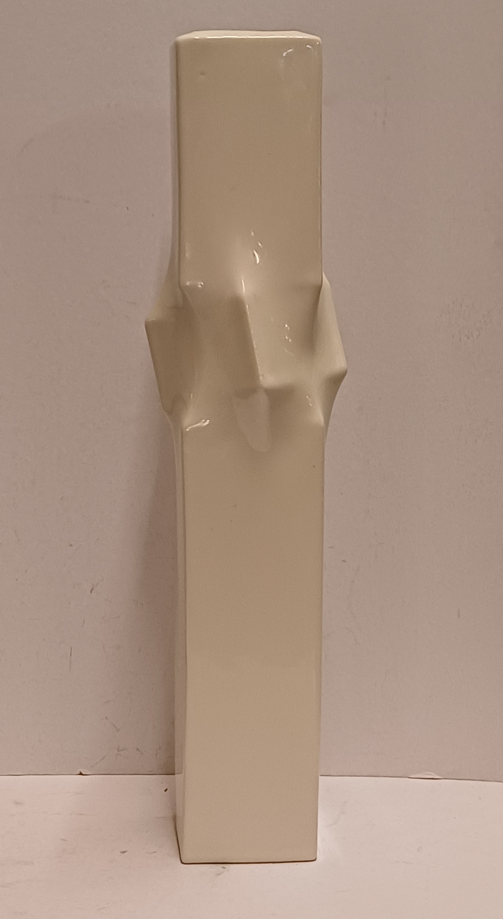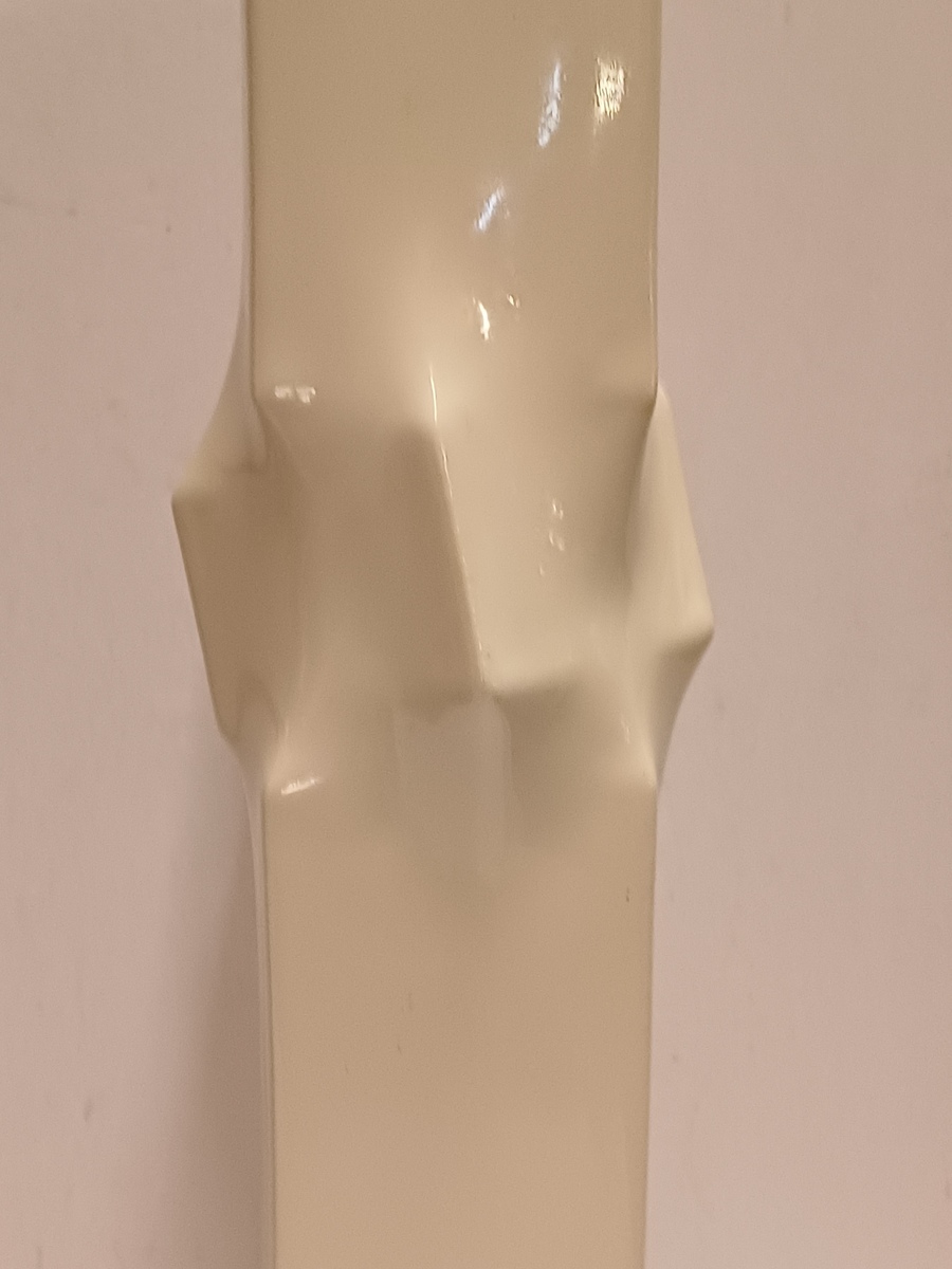 Witte porseleinen serica vaas met kreukelingin het midden. Oplage 390 stuks dit is nr 114. Uitvoering eigen studio.
