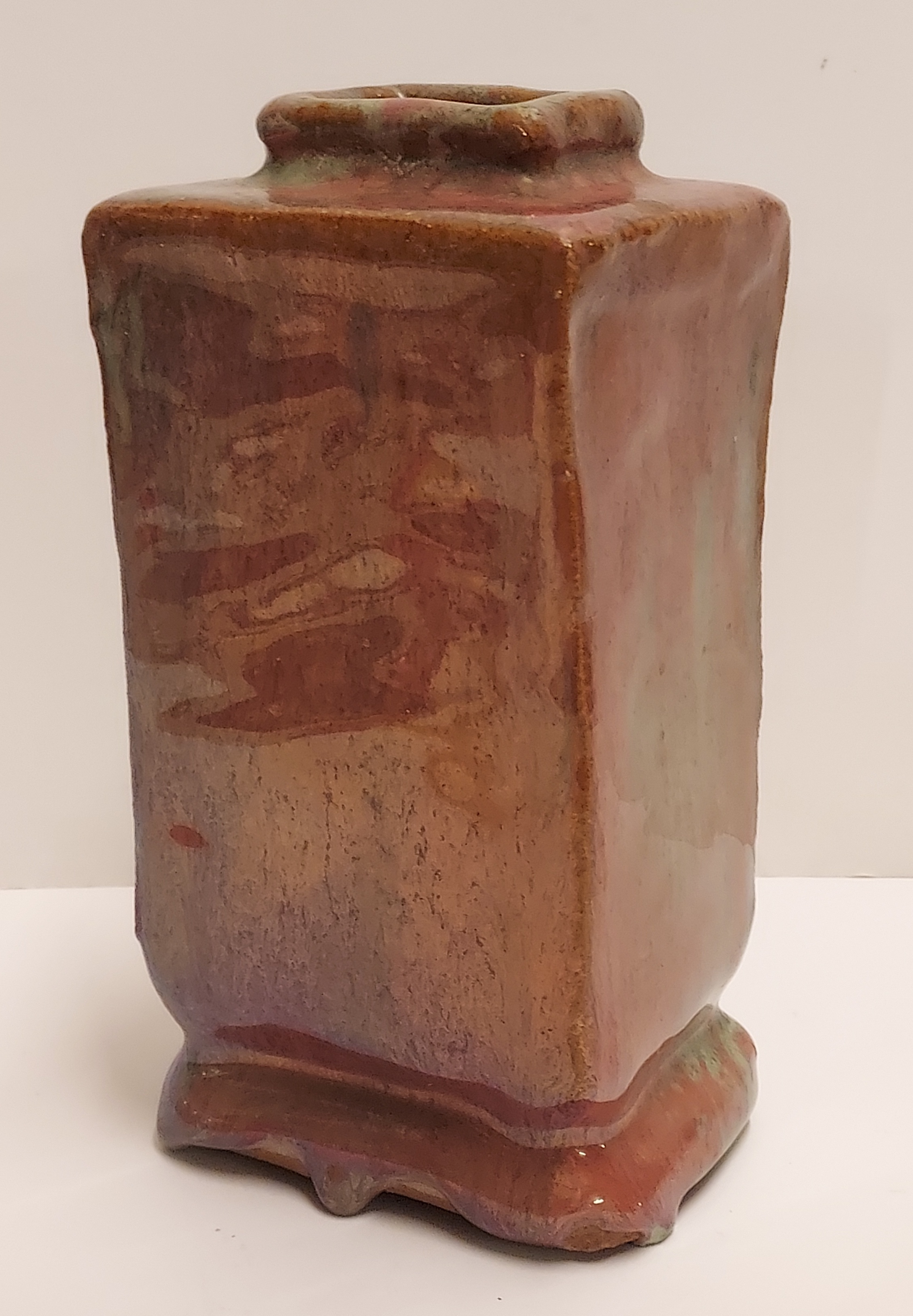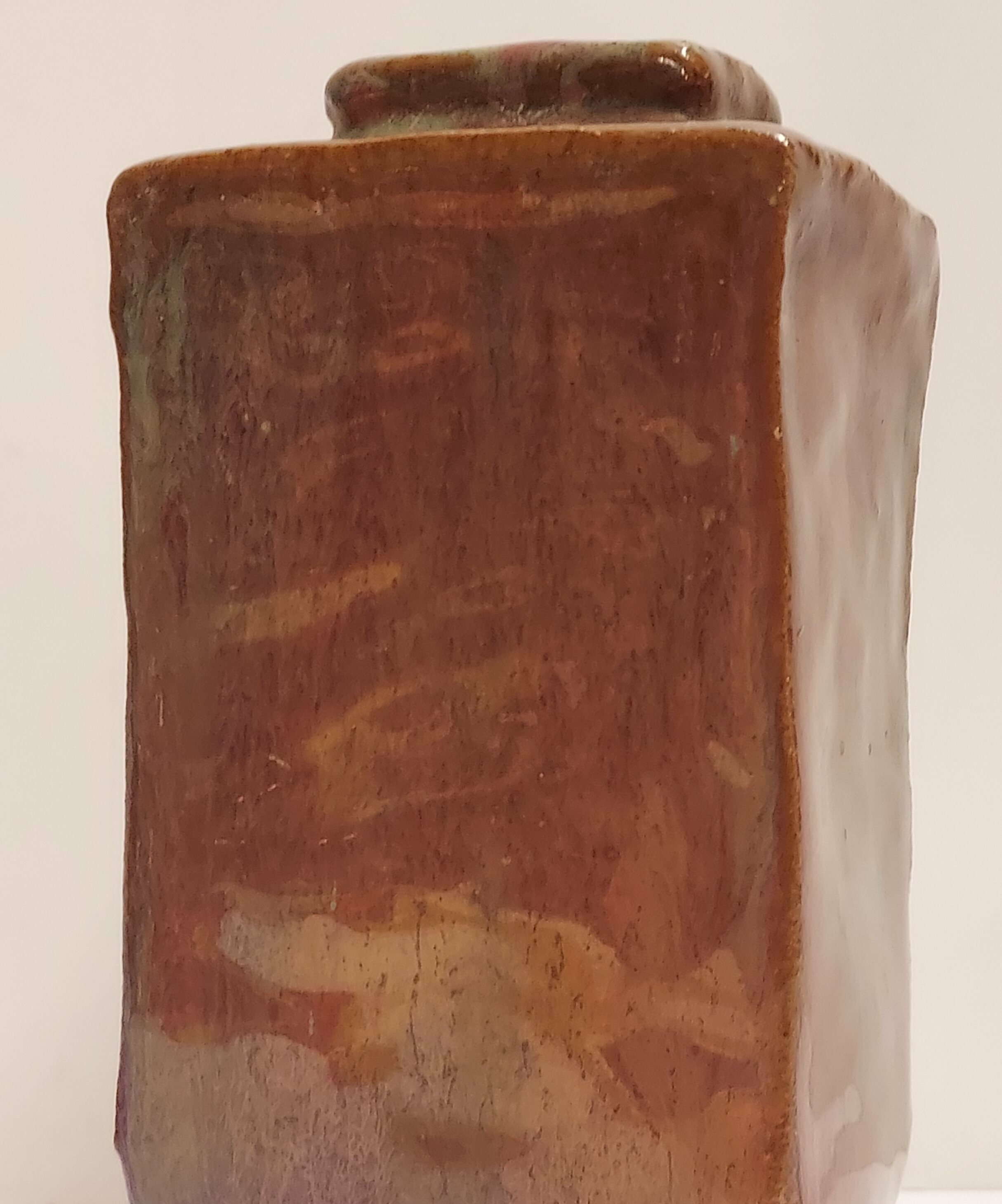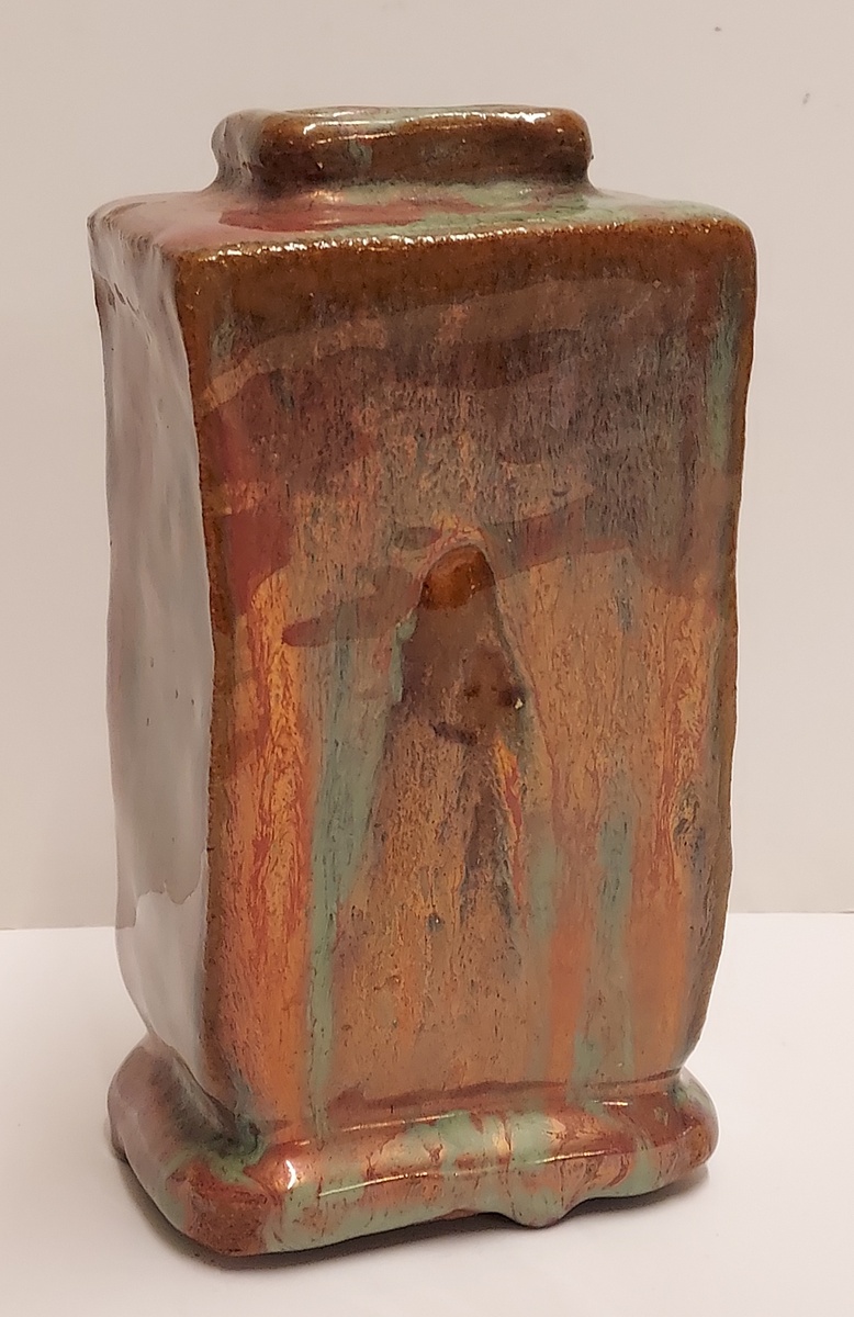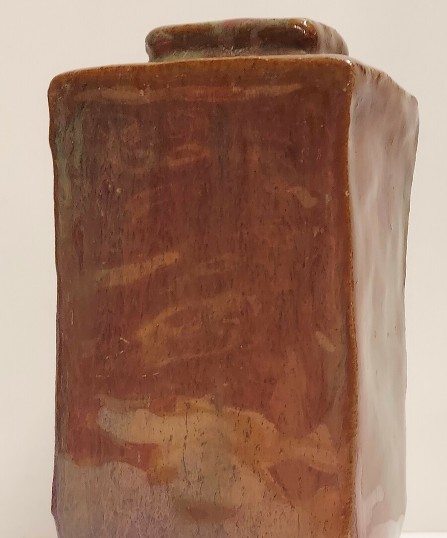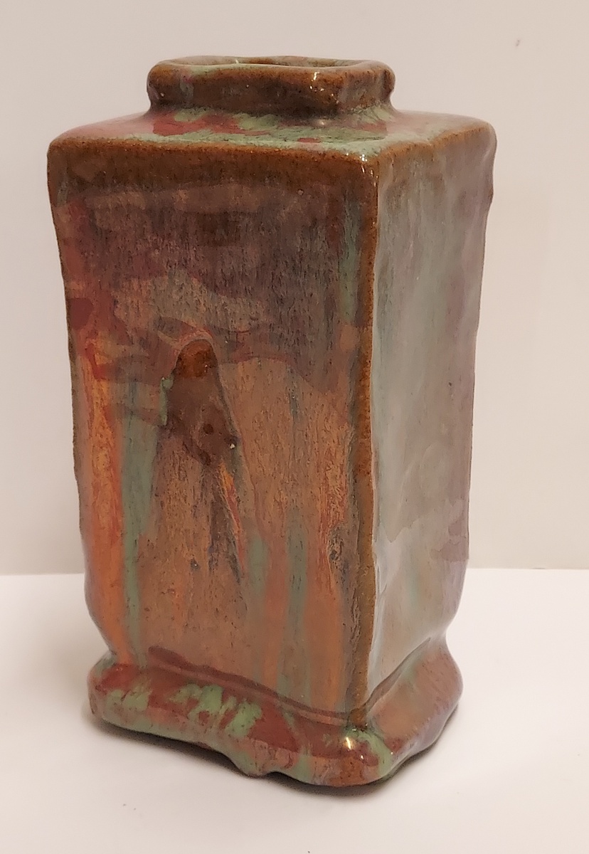 Vase rectangulaire avec un glaçure métallique. Signé au-dessous et marqué Epe 1950.