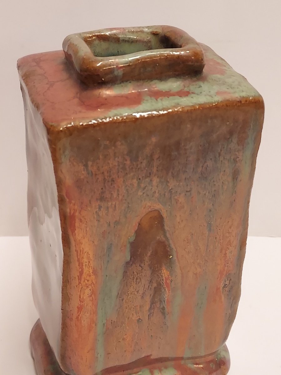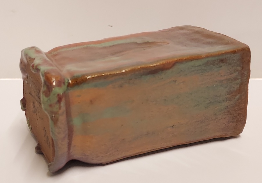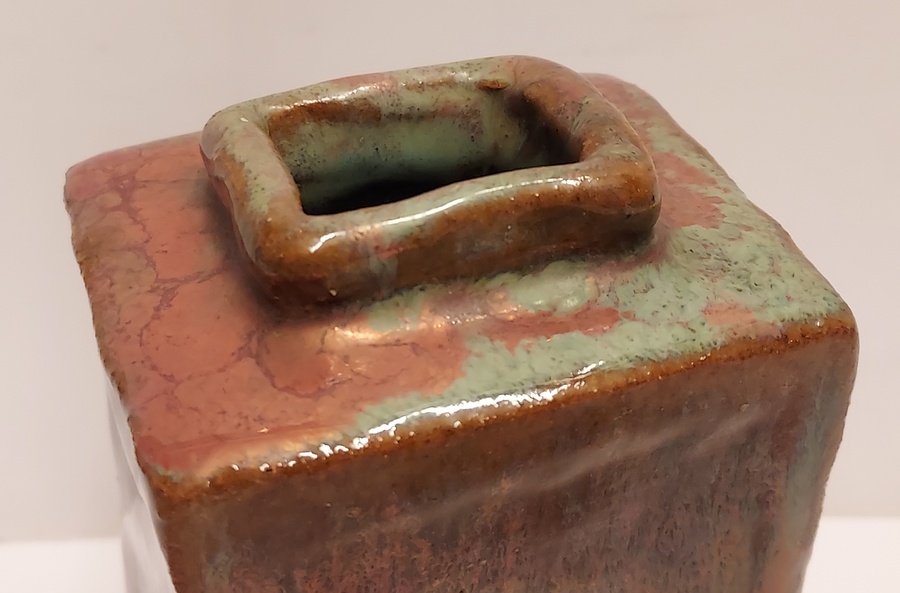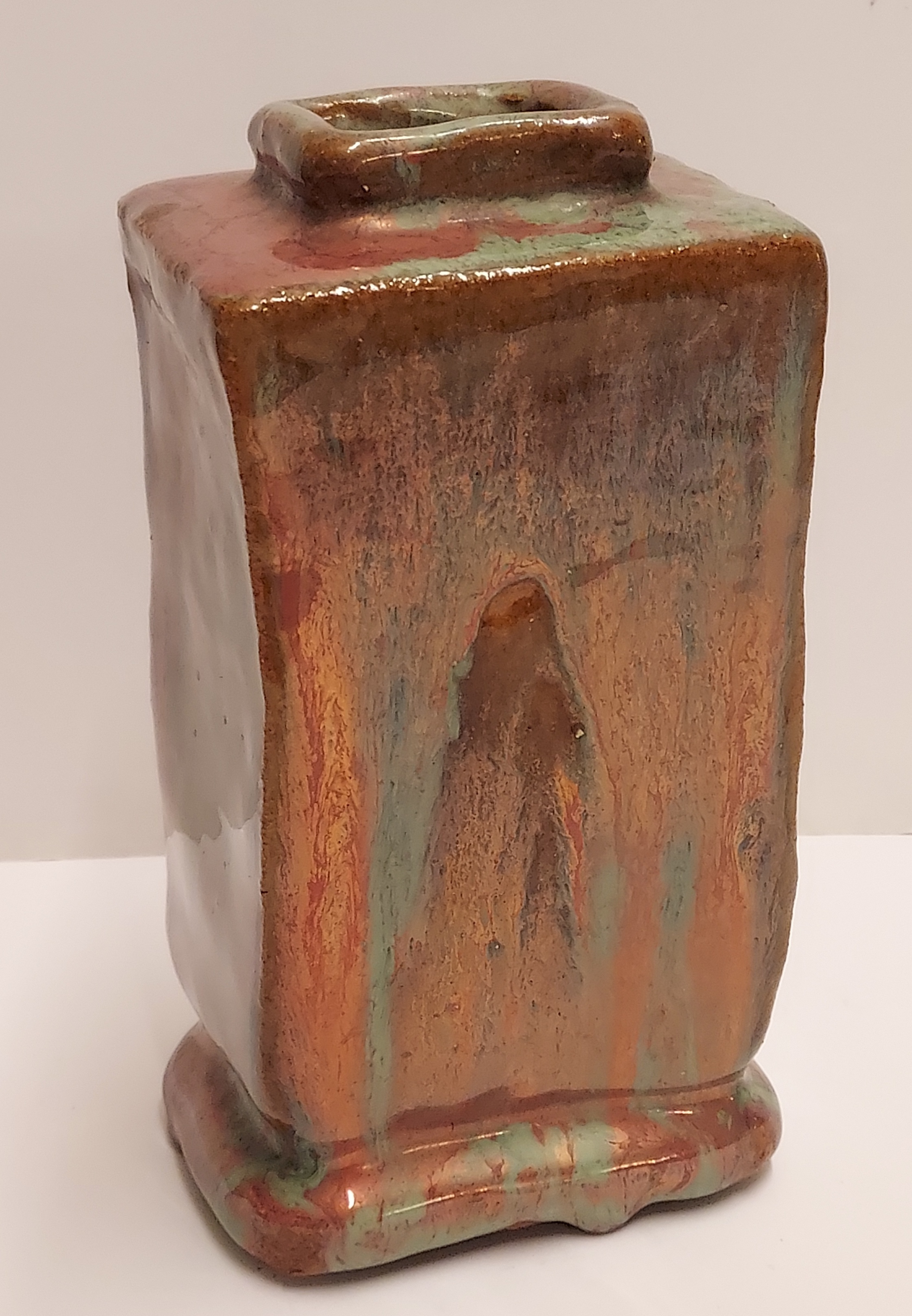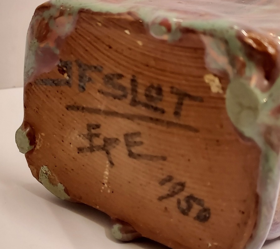 Vase rectangulaire avec un glaçure métallique. Signé au-dessous et marqué Epe 1950.