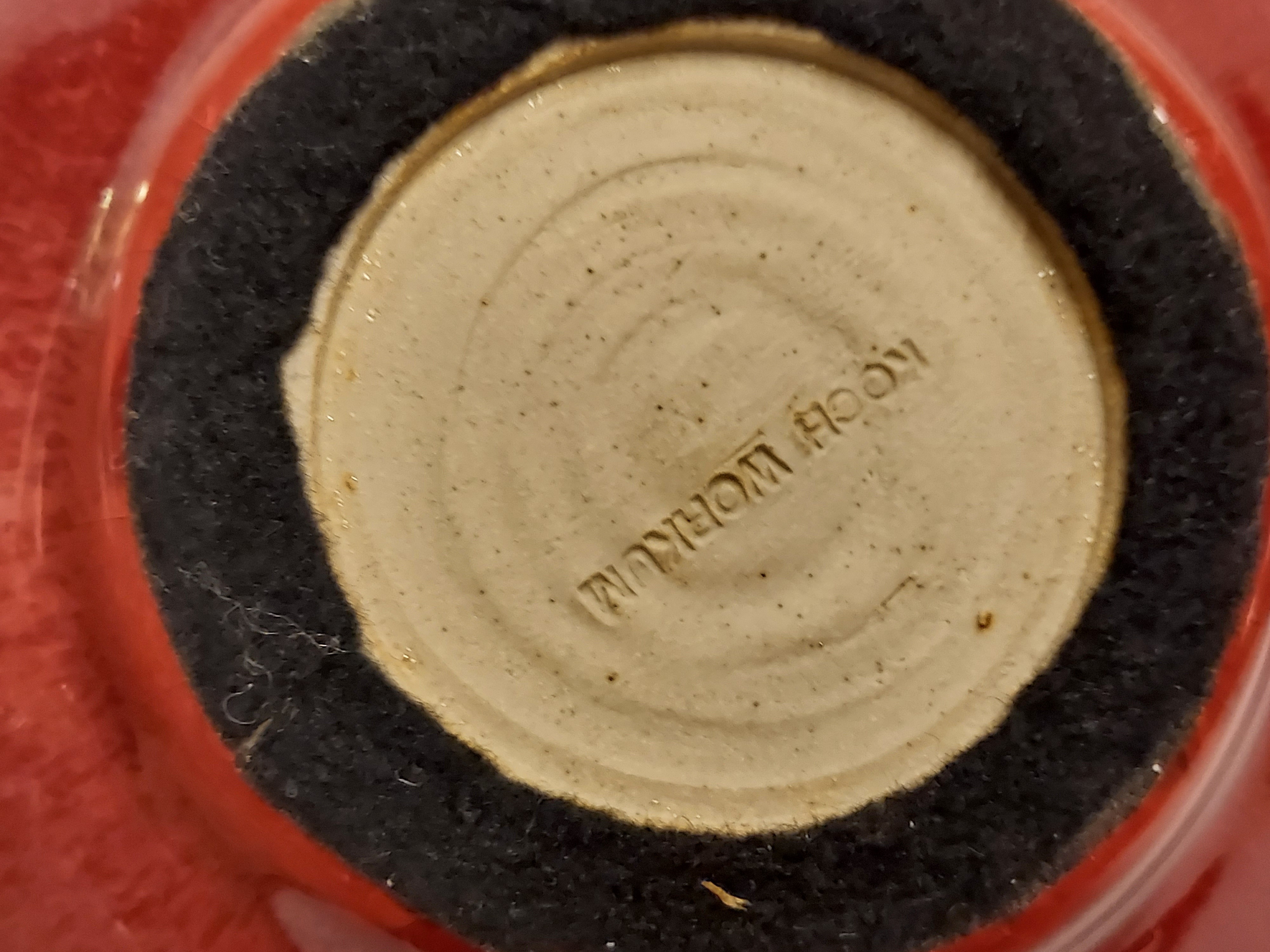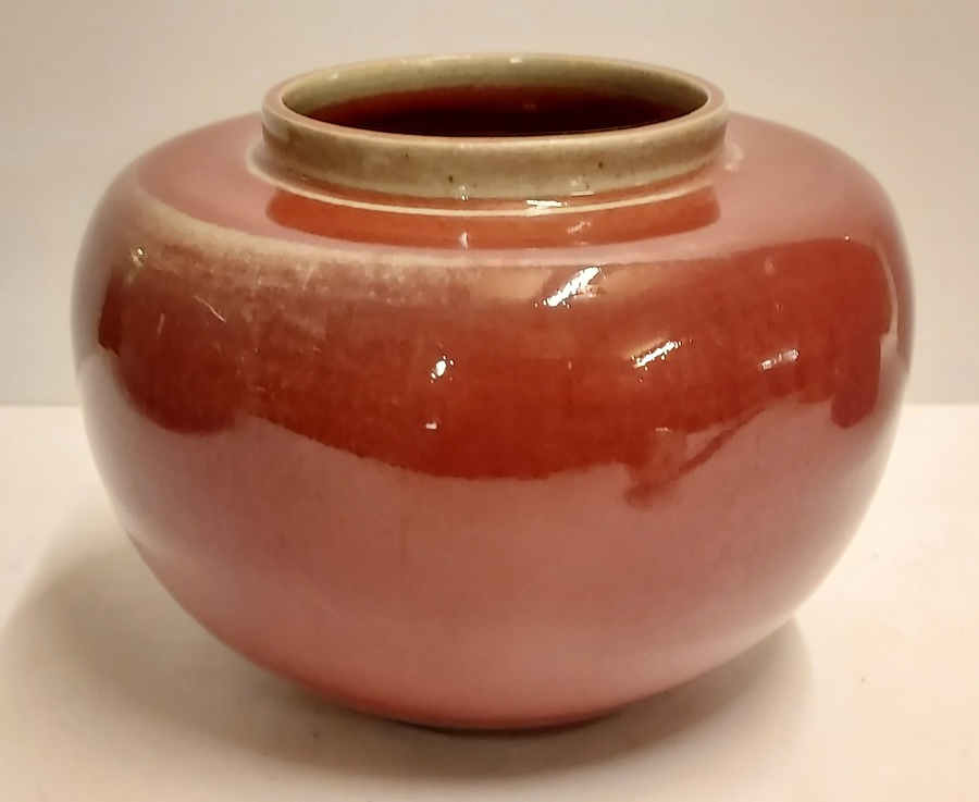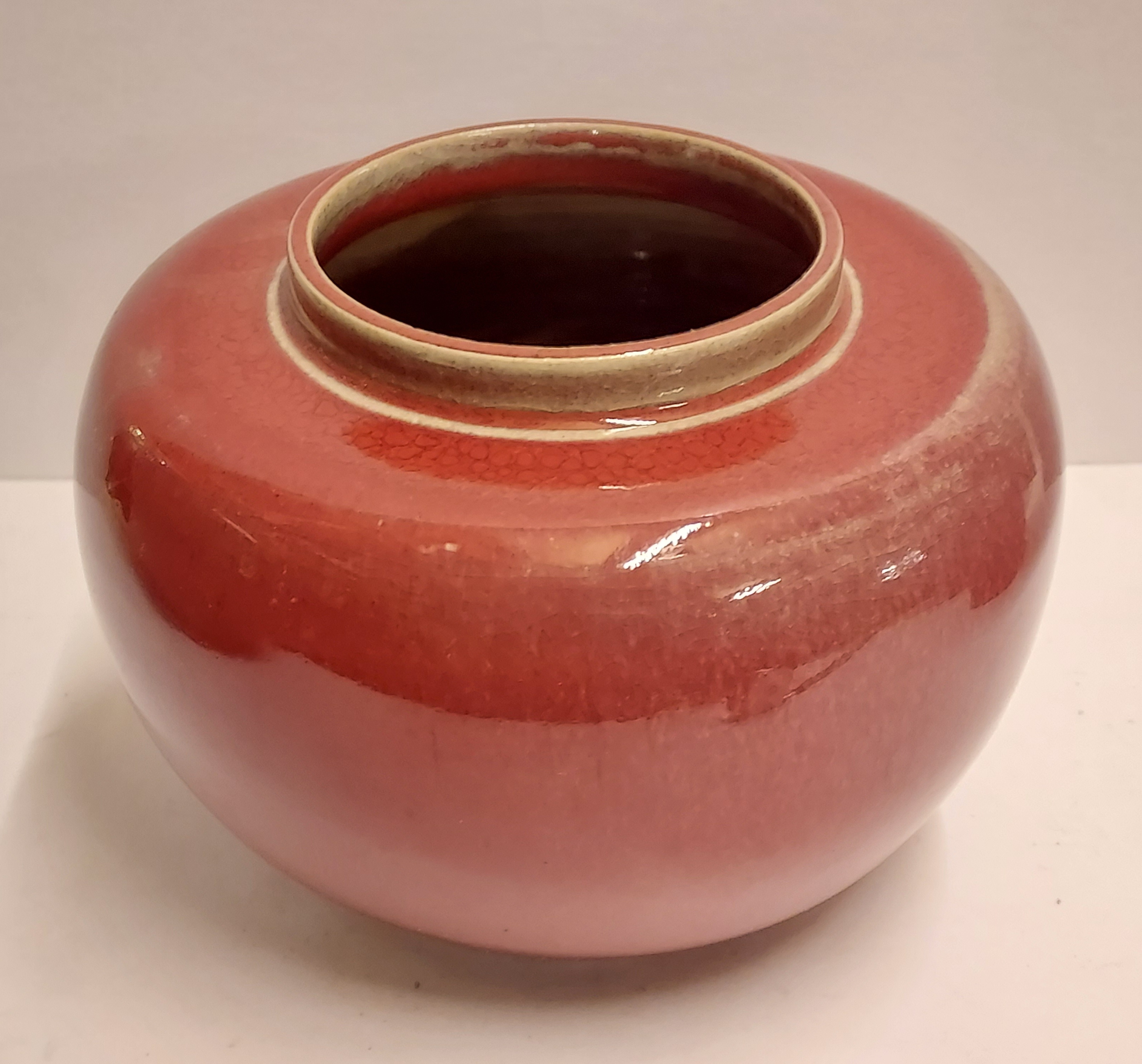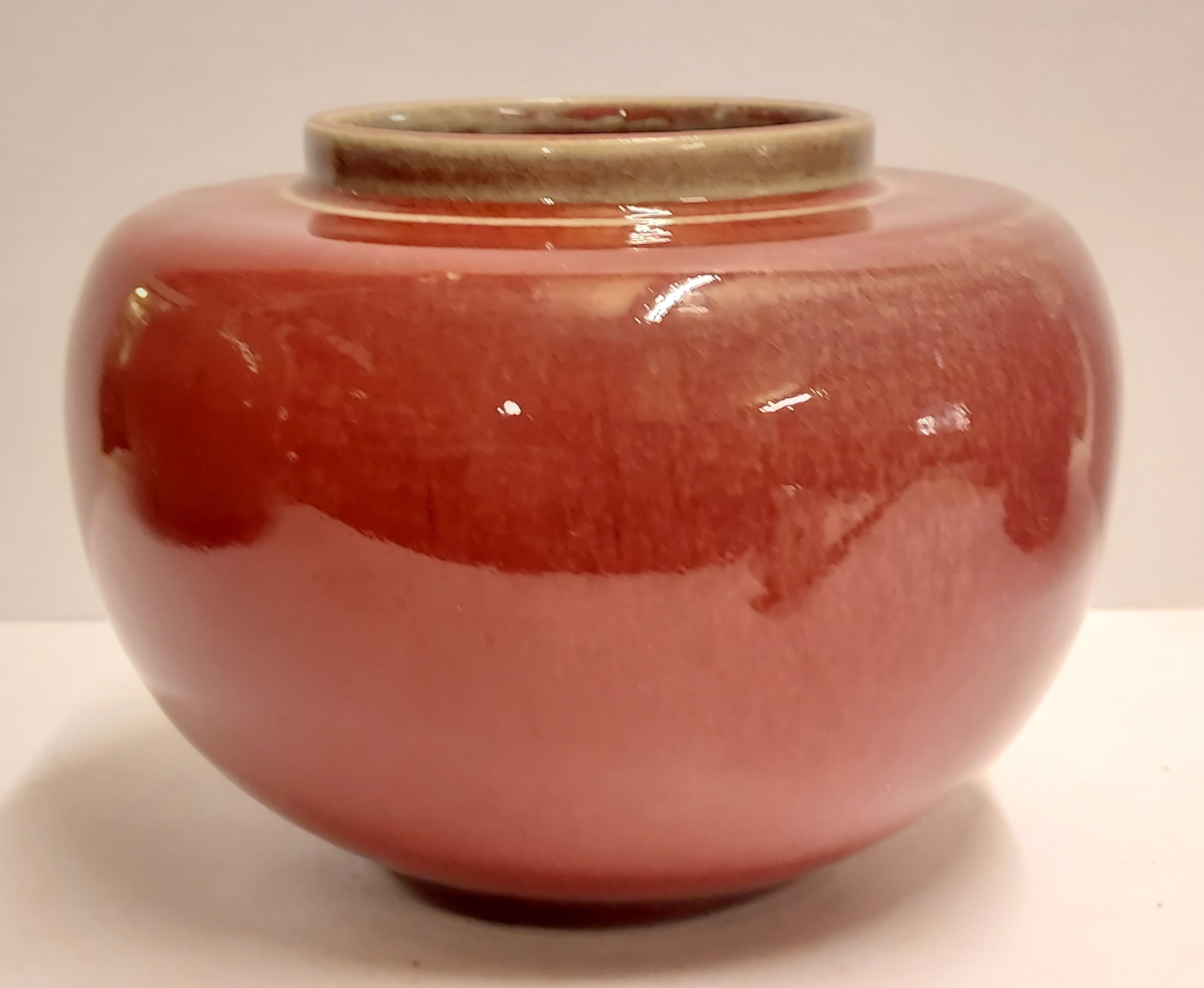 Vase en grès avec glaçure rouge clair. Marque sur le dessous.