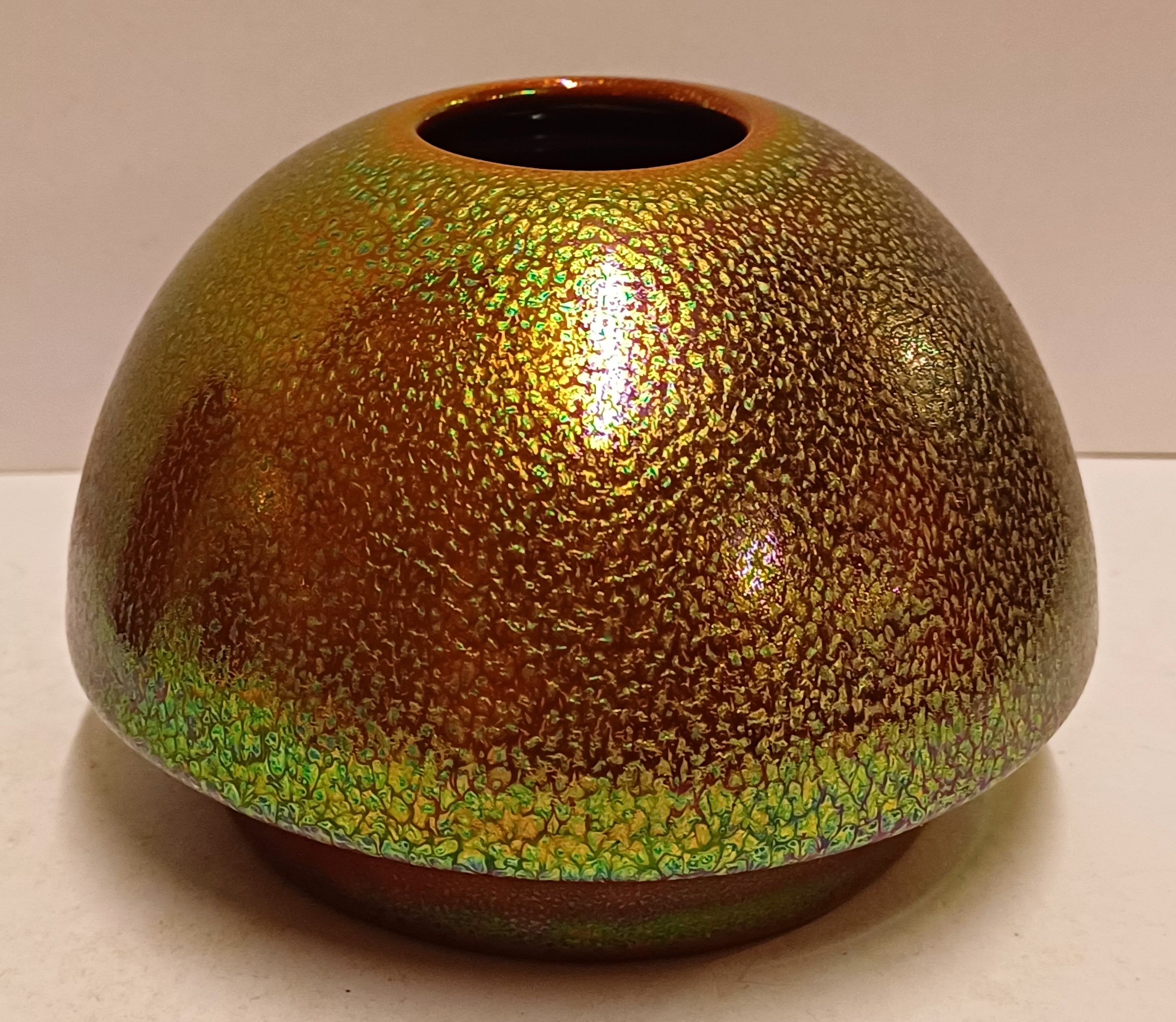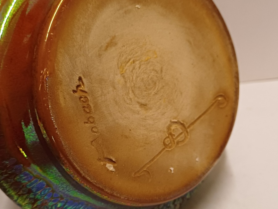 Aardewerken vaas met glanzende glazuur. Onderzijde met fabrieksmerk en kunstenaars monogram.