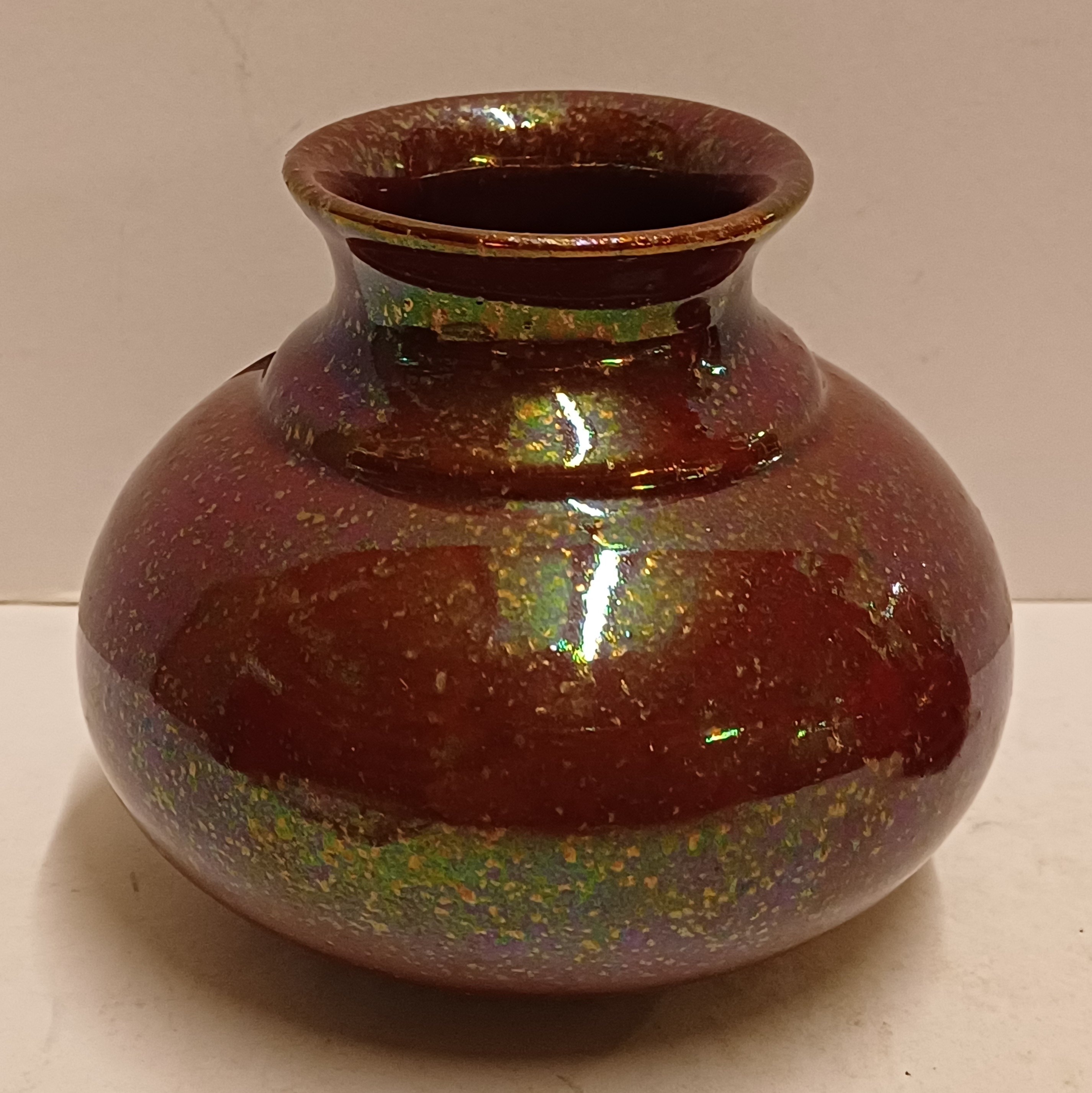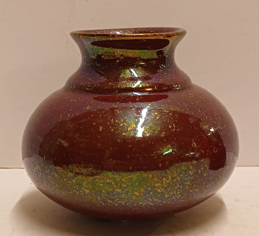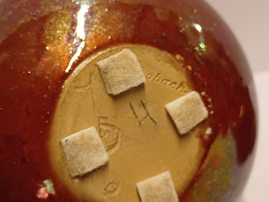 Aardewerken vaas met glanzende glazuur. Onderzijde met fabrieksmerk en kunstenaars monogram.