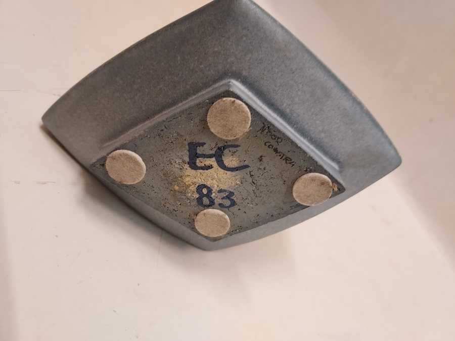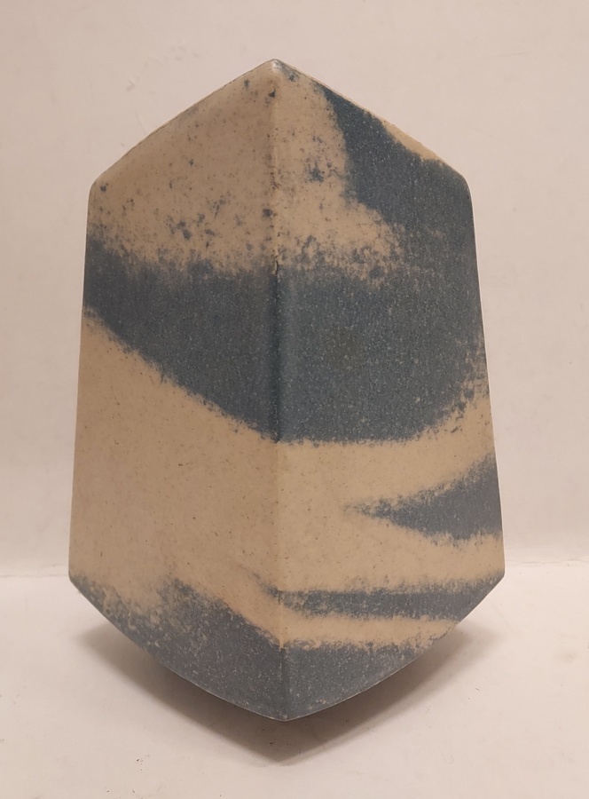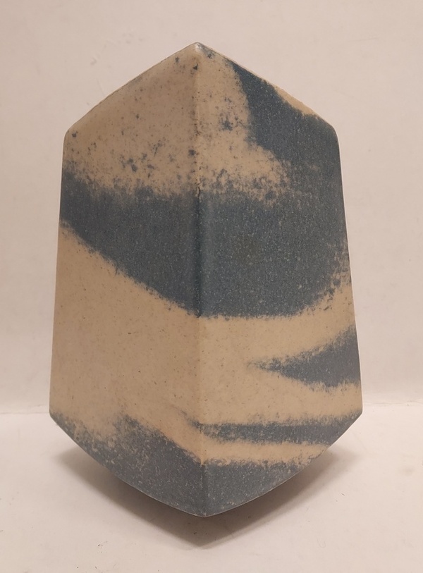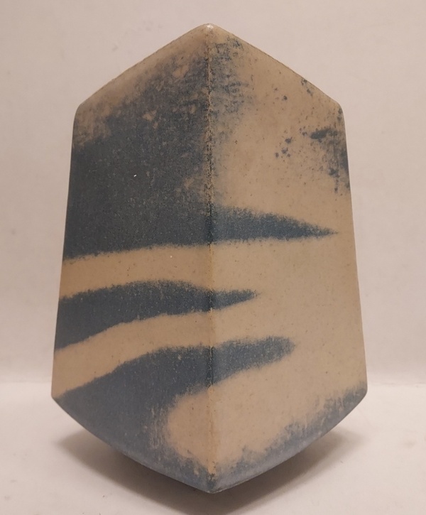 Vase avec décor bleu crème. Base avec monogramme et '83.