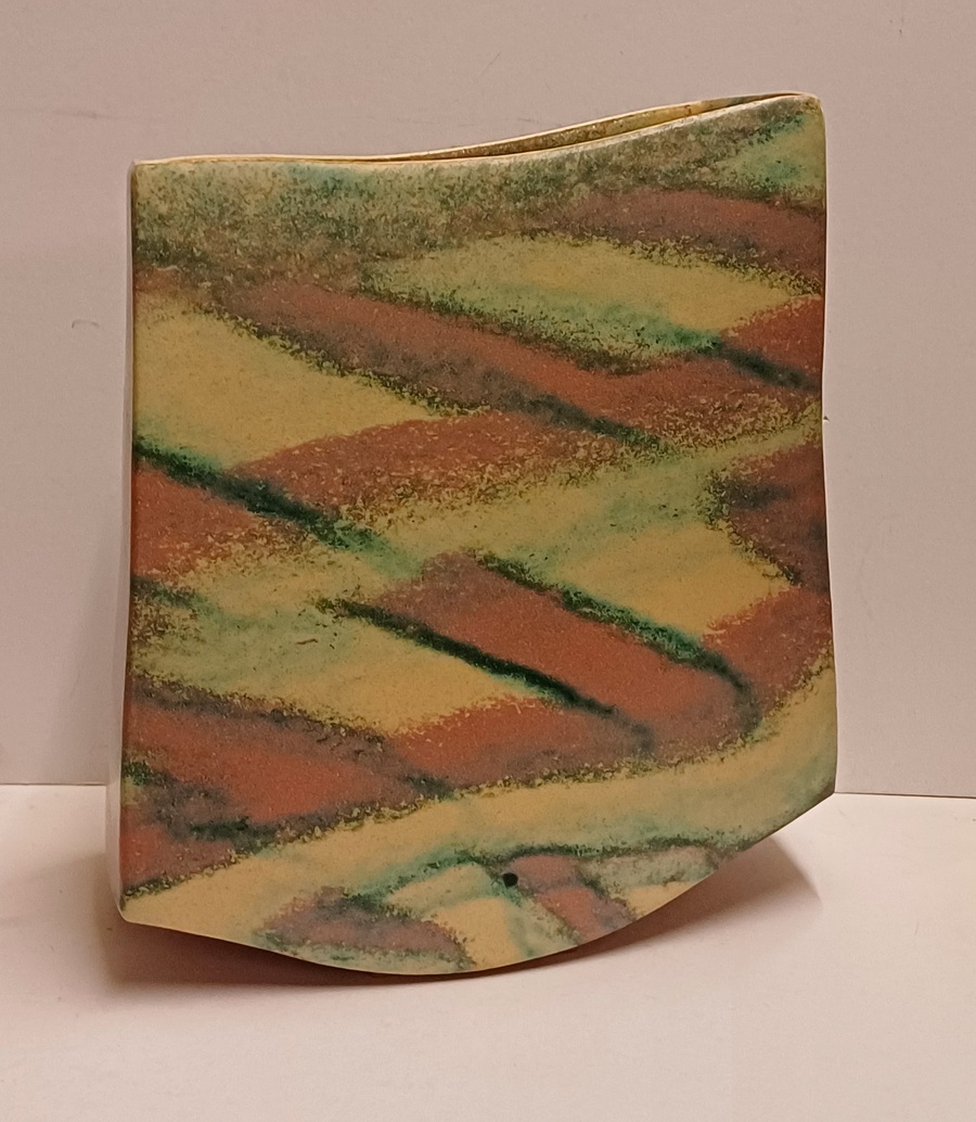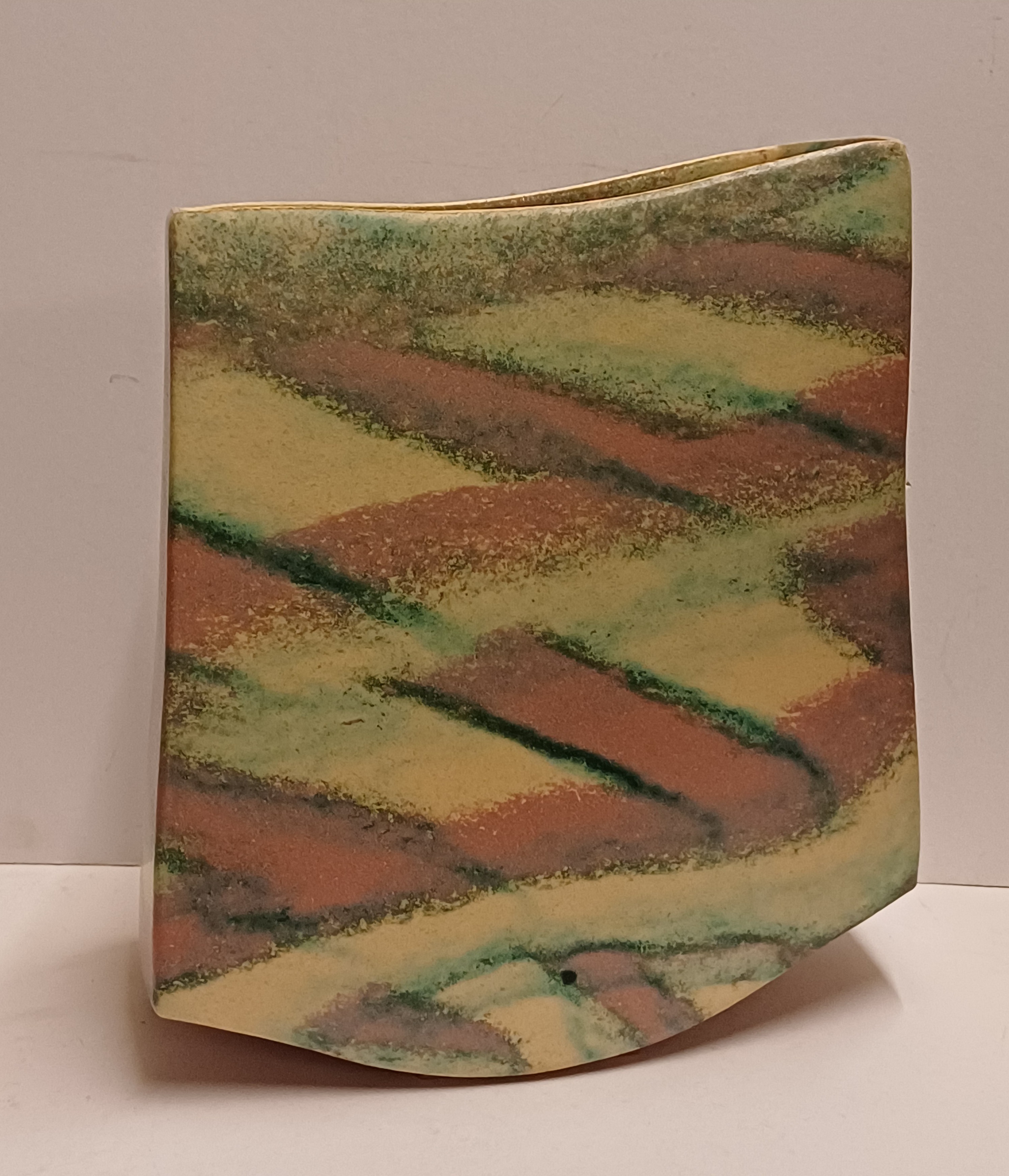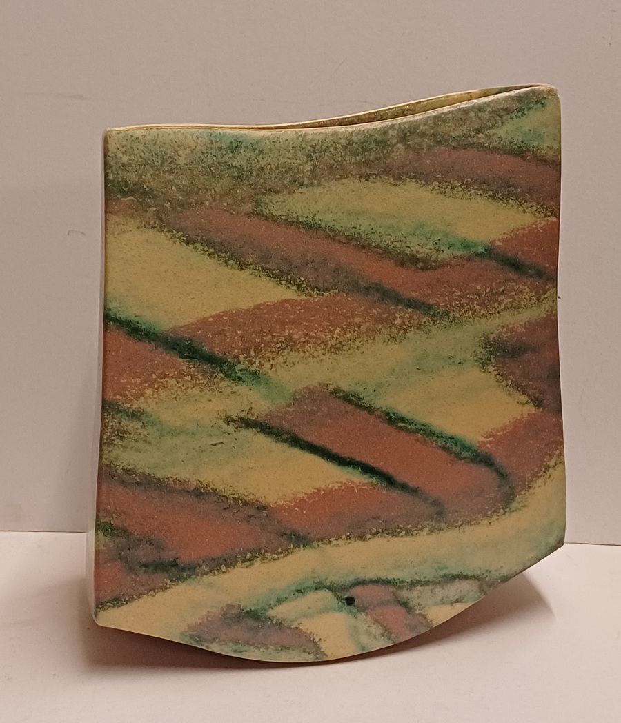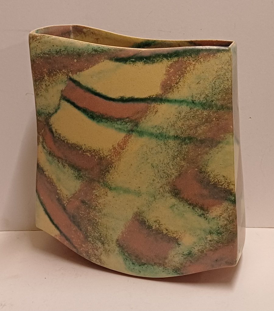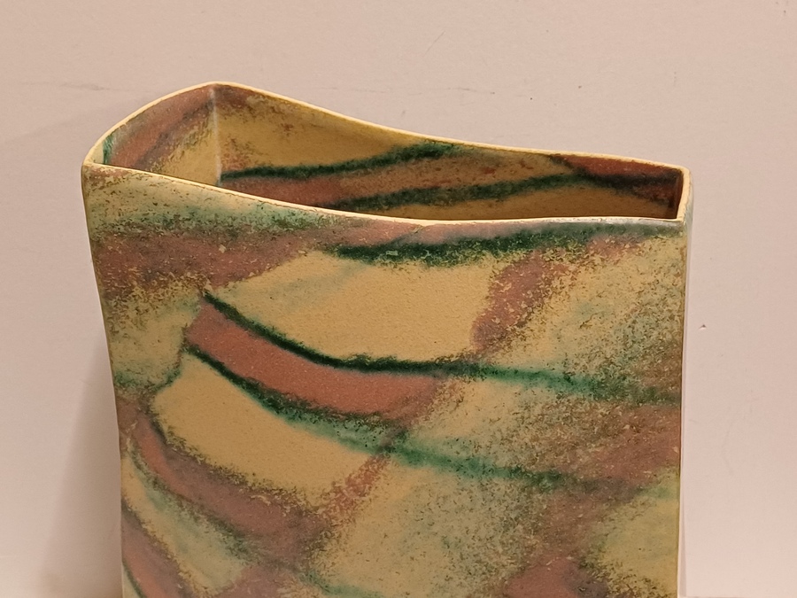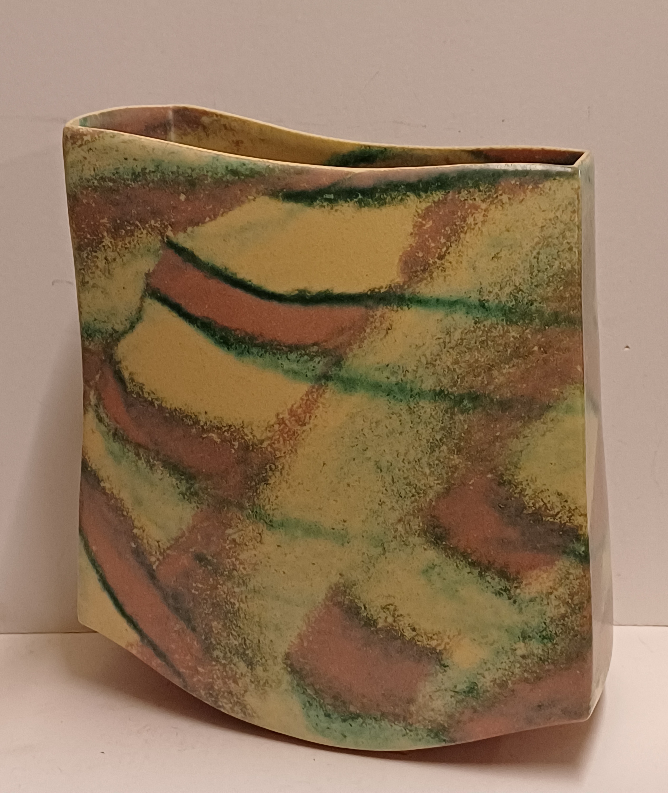 Vase en grès avec glaçure blanche, rose et verte. Marqué, 1989.