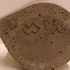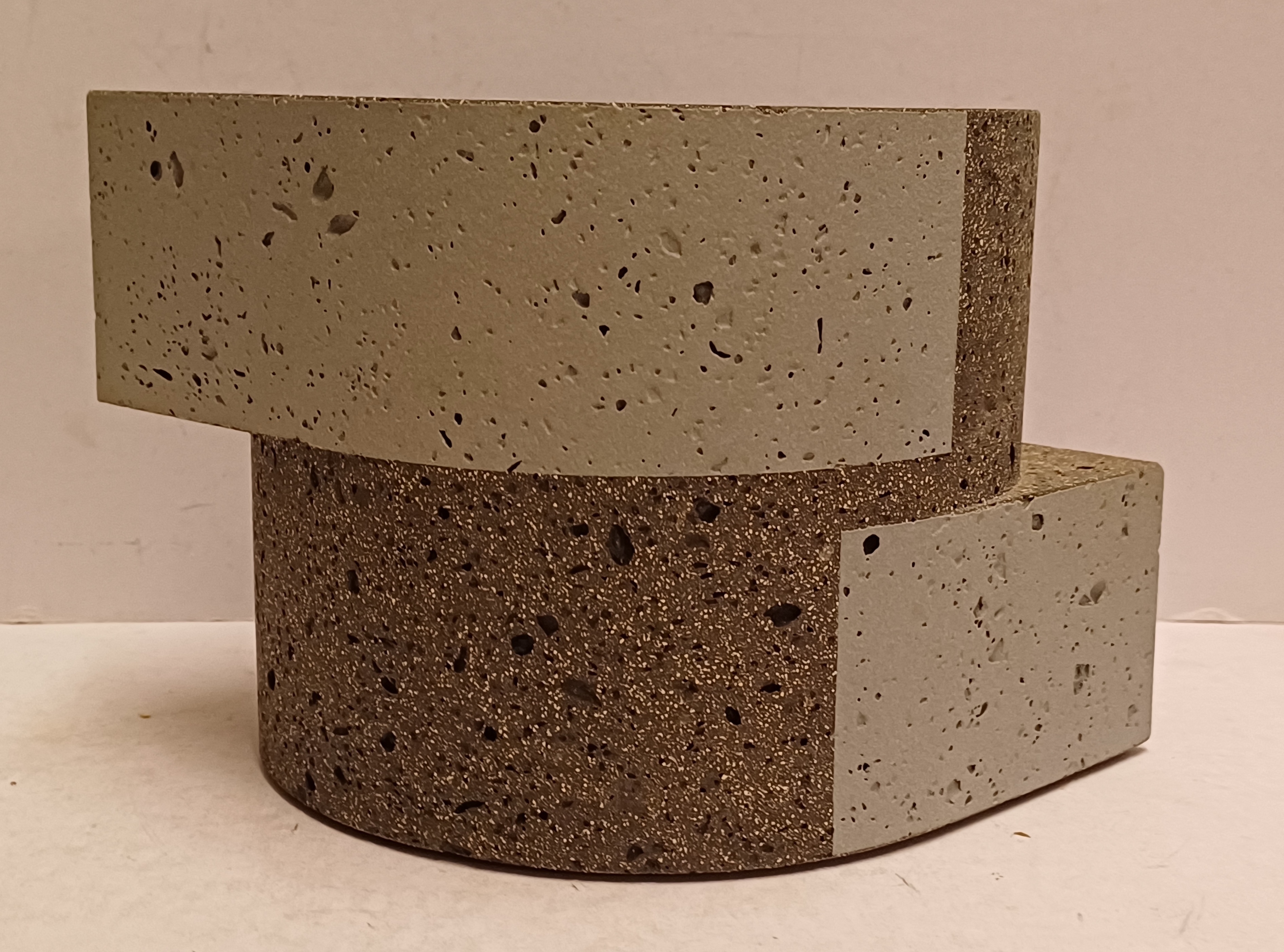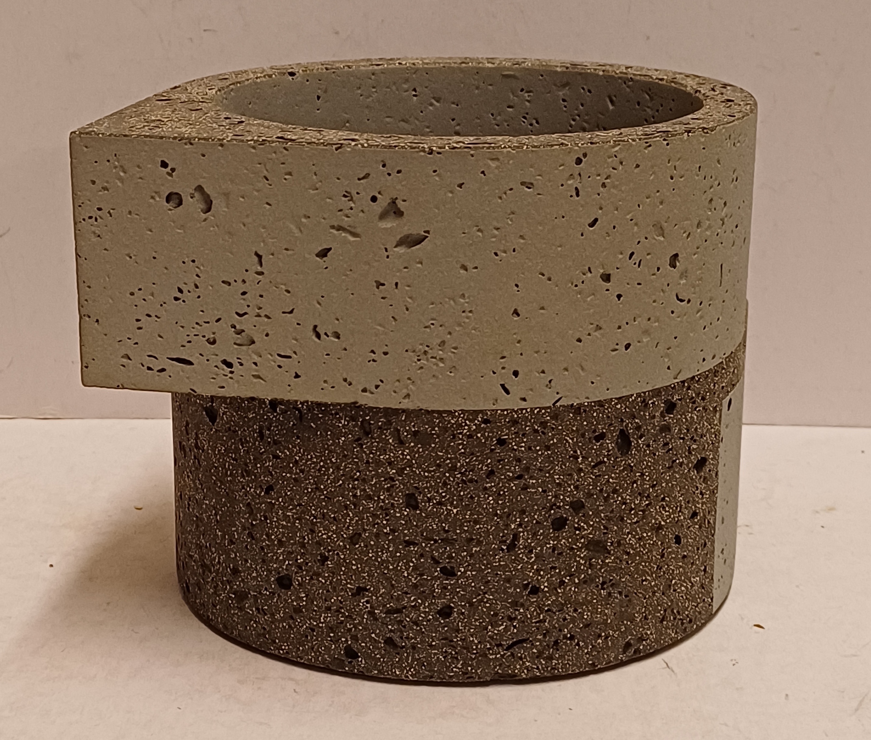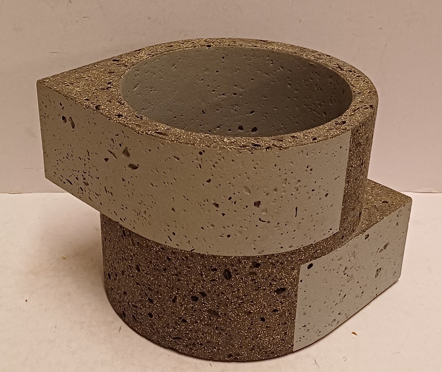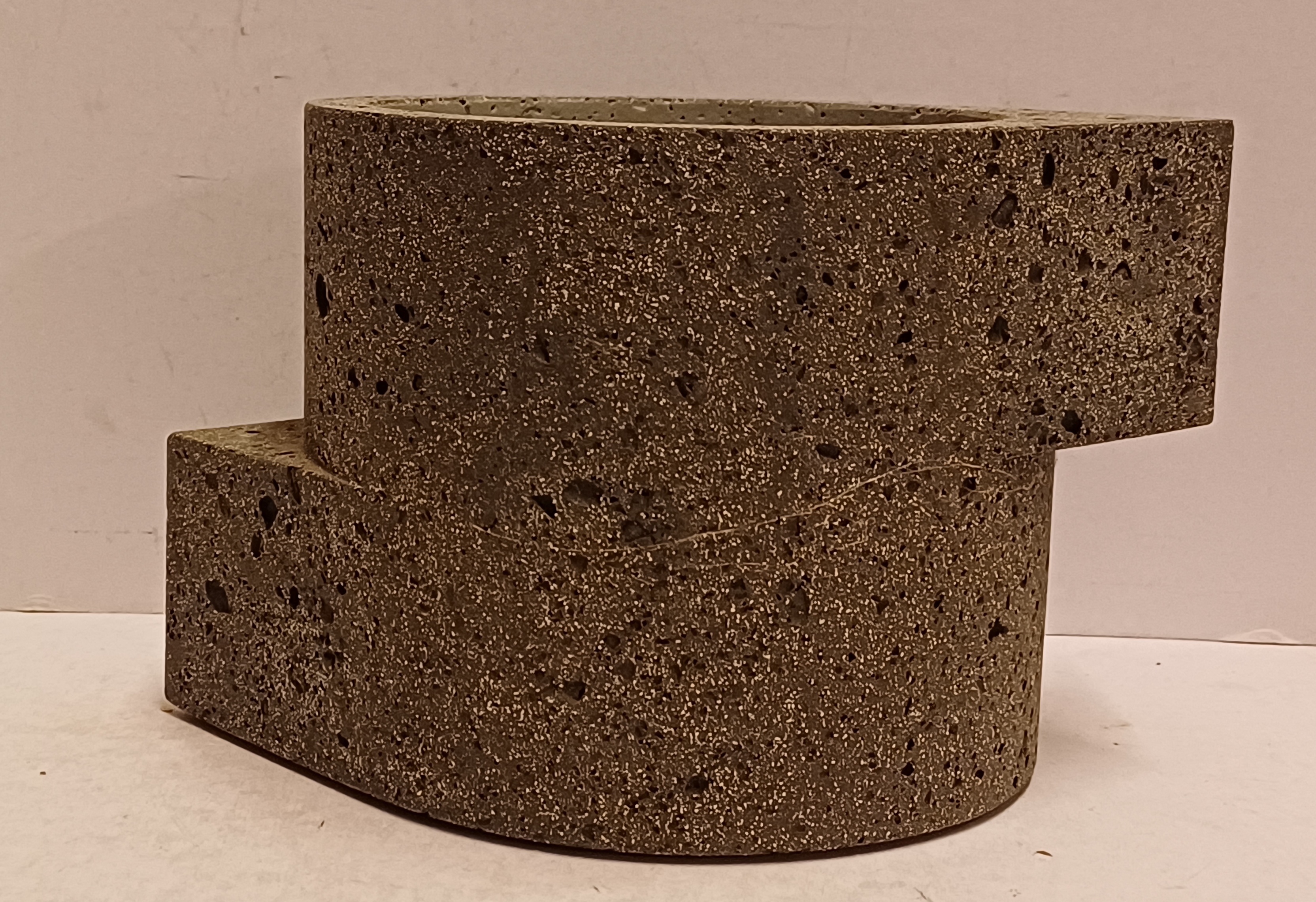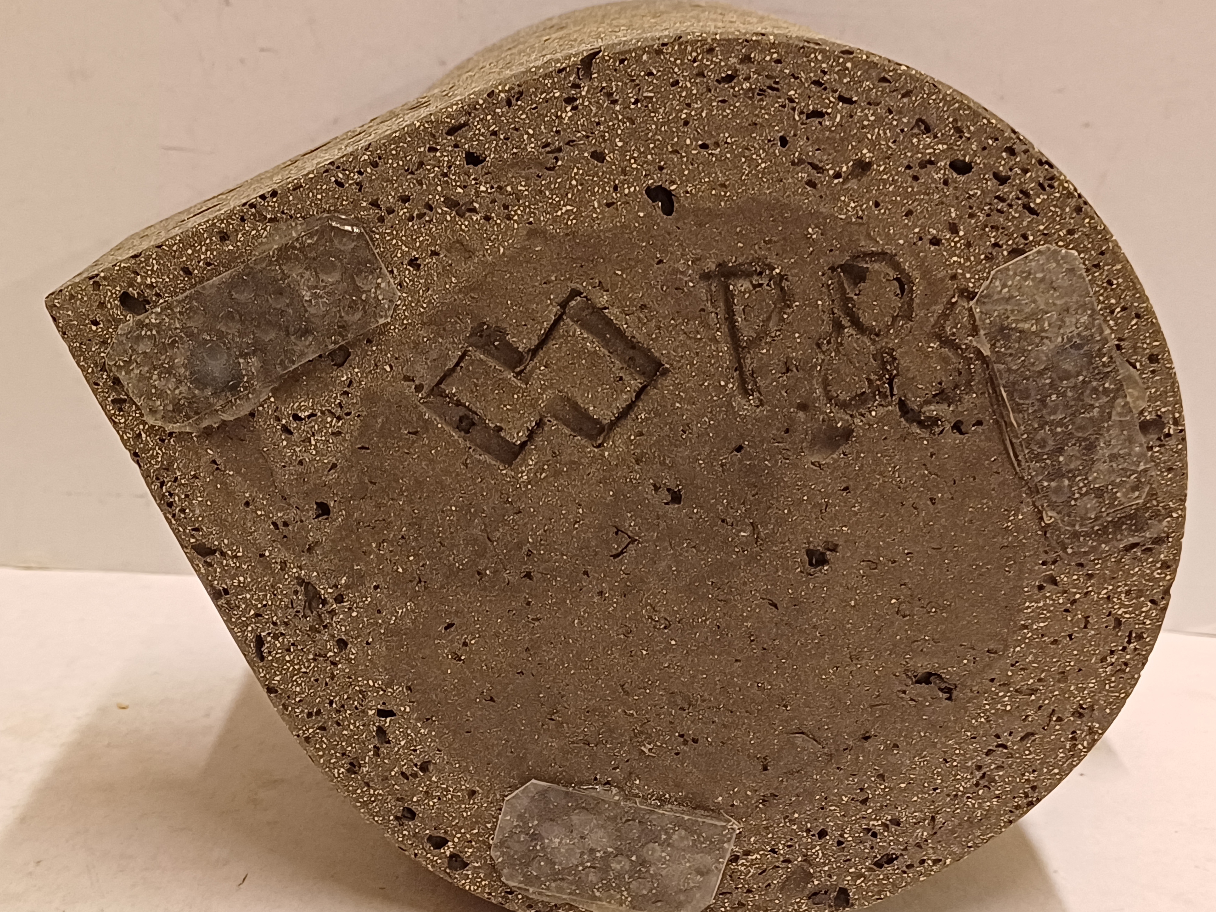Sculpturale vaasvorm met grijze vlakken en opengebarsten structuur. Onderzijde gemerkt.