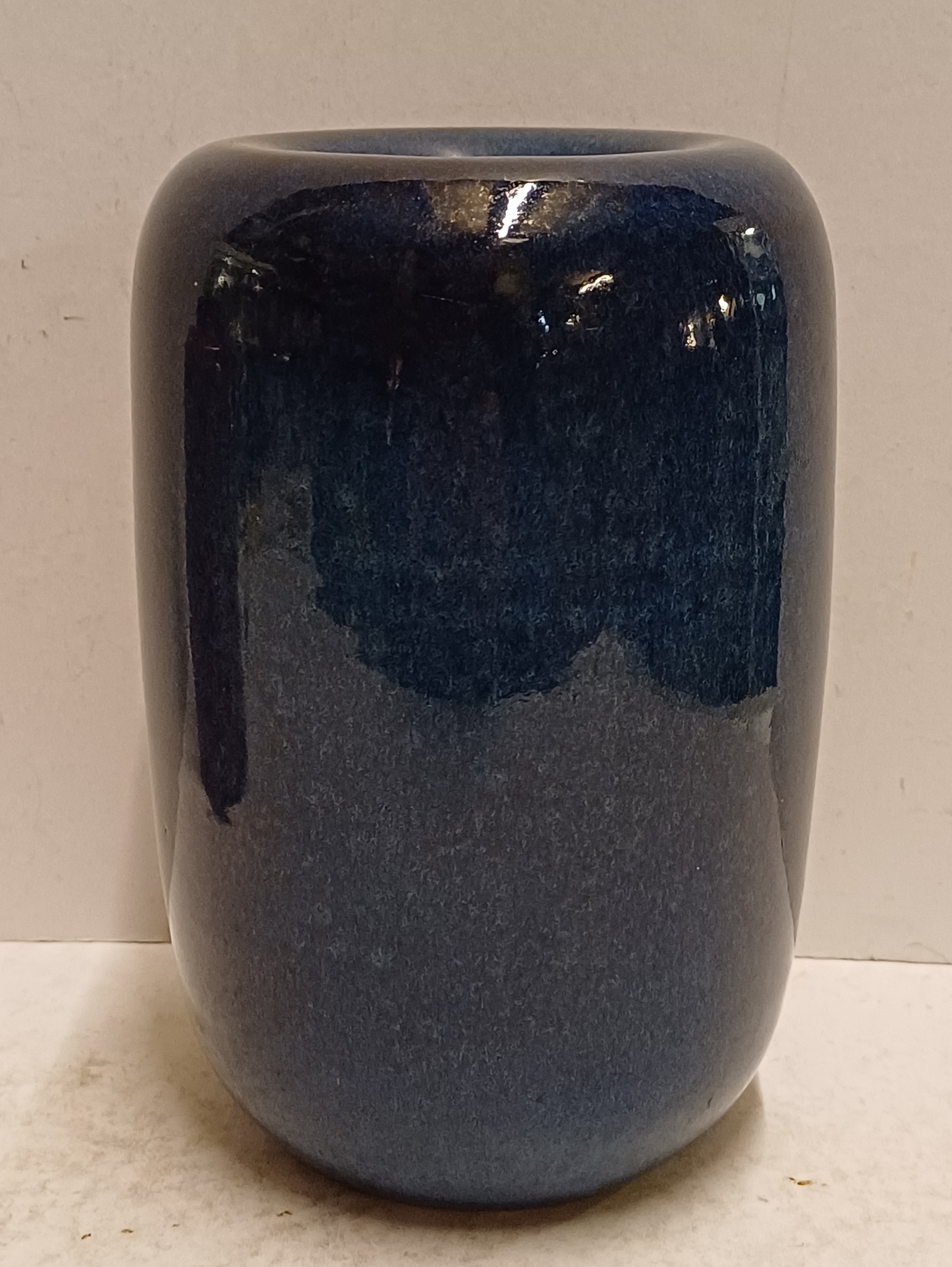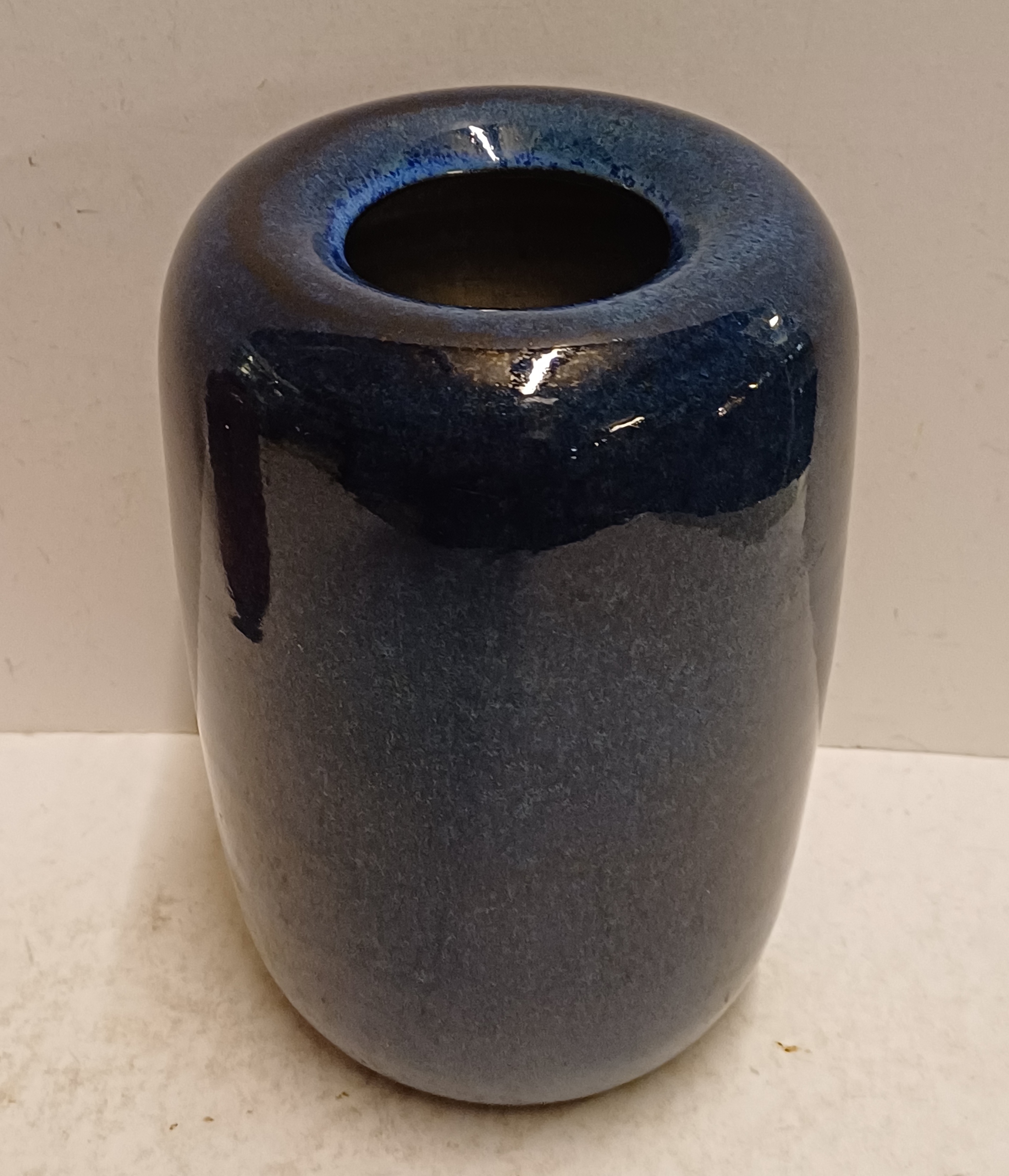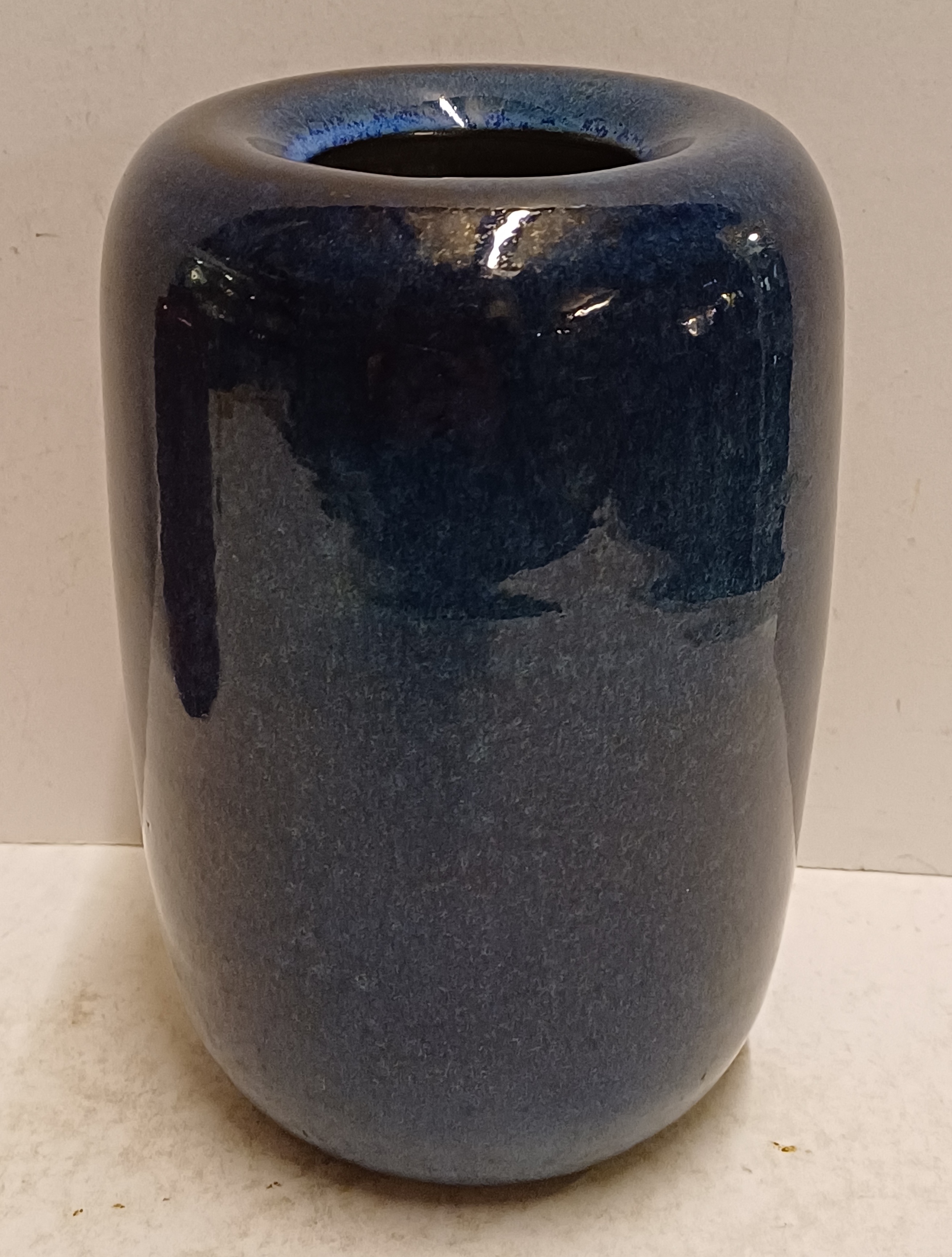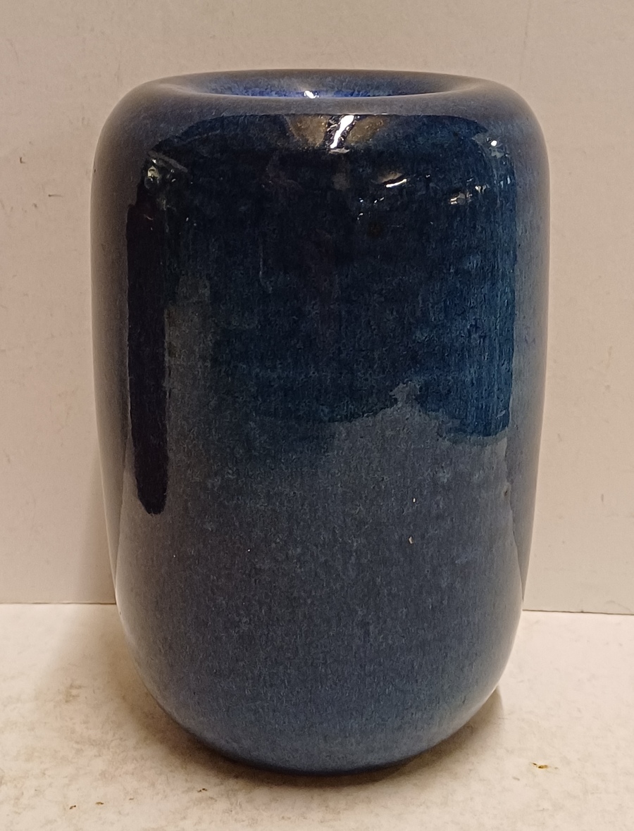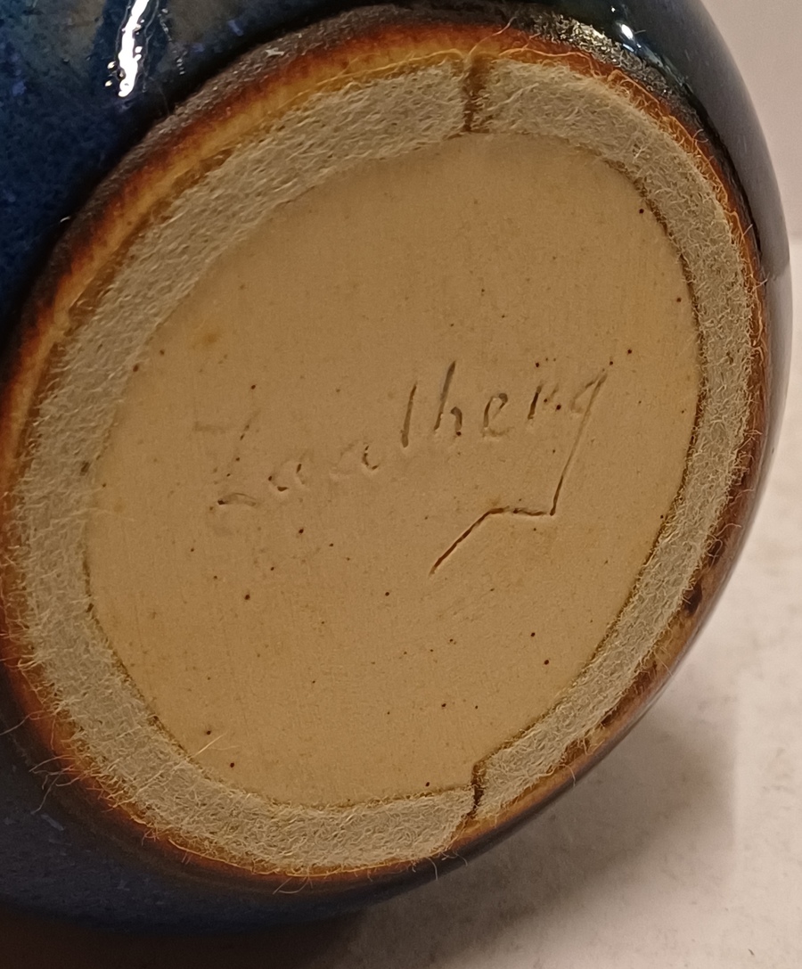 Aardwerken vaas met naar binnengeslagen rand en blauwe glazuur. . Onderzijde gesigneerd Zaalberg.
