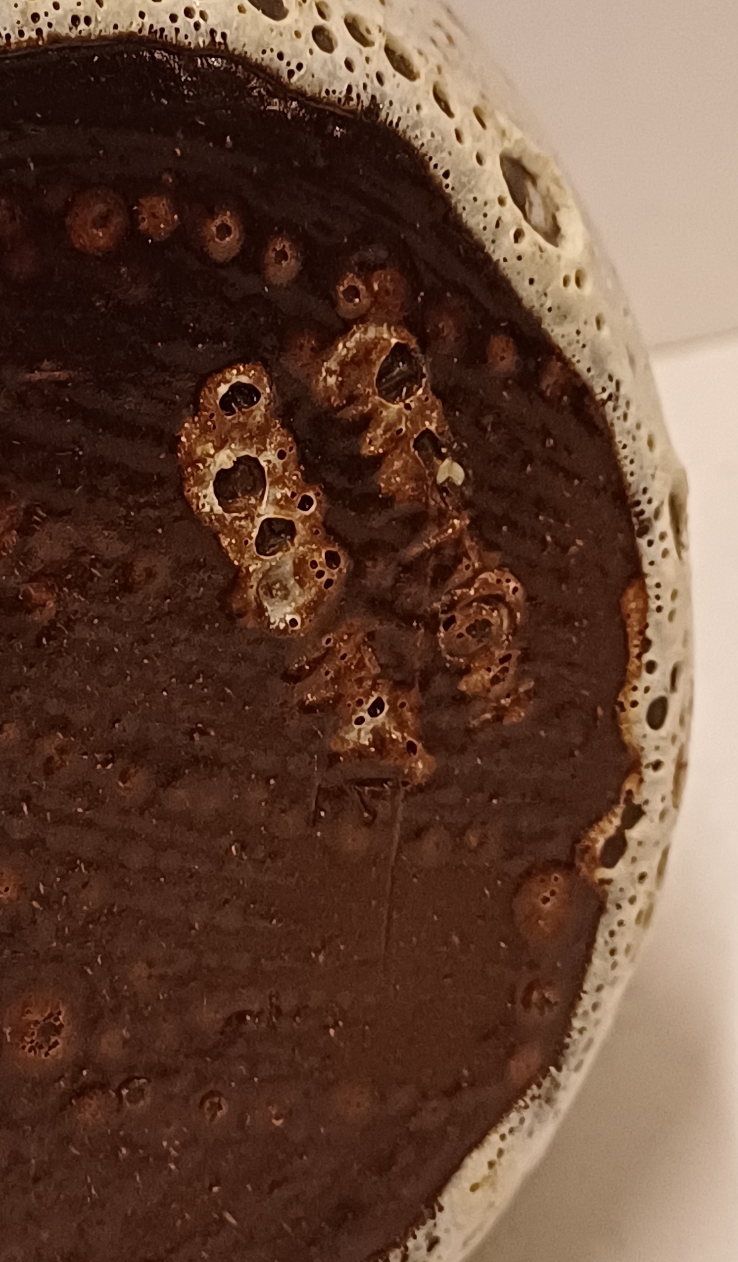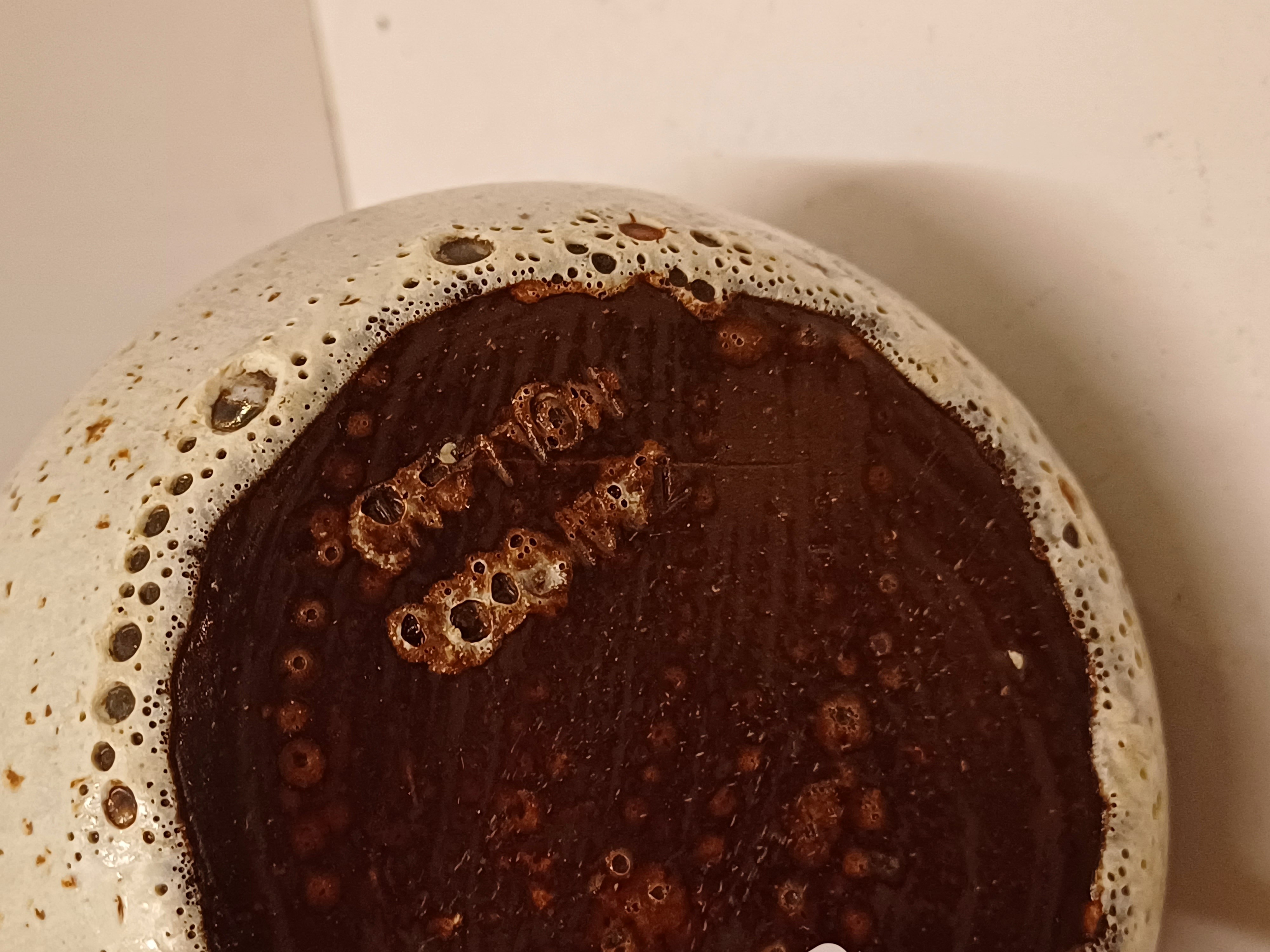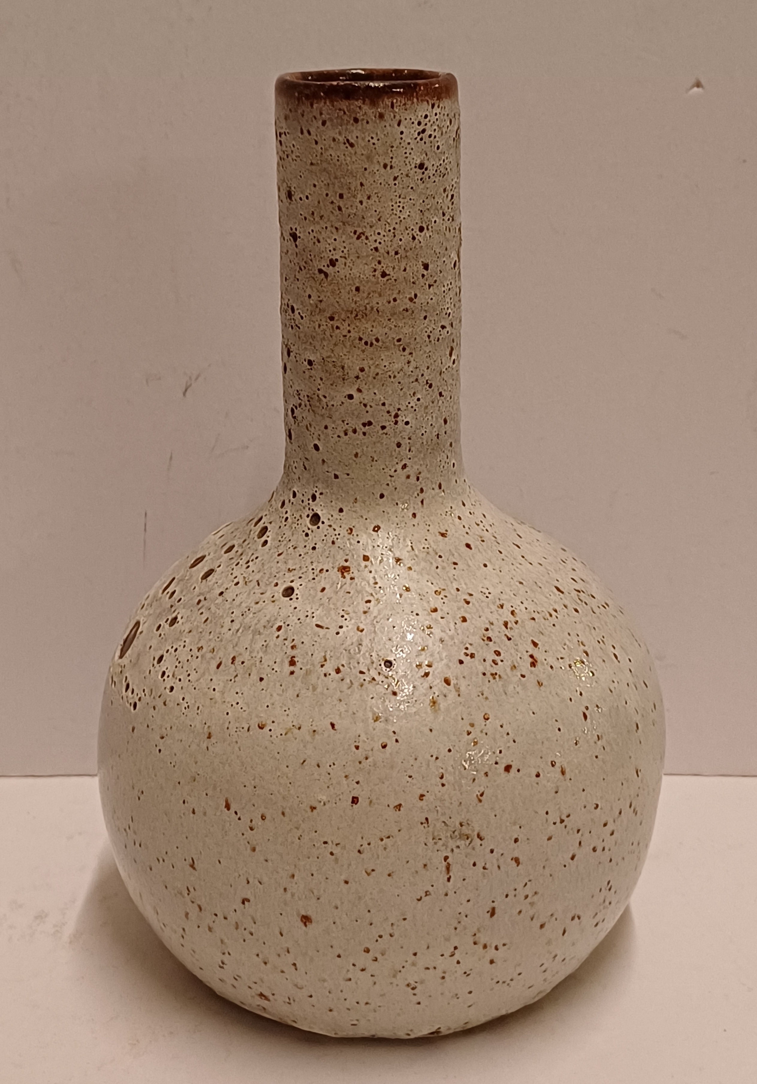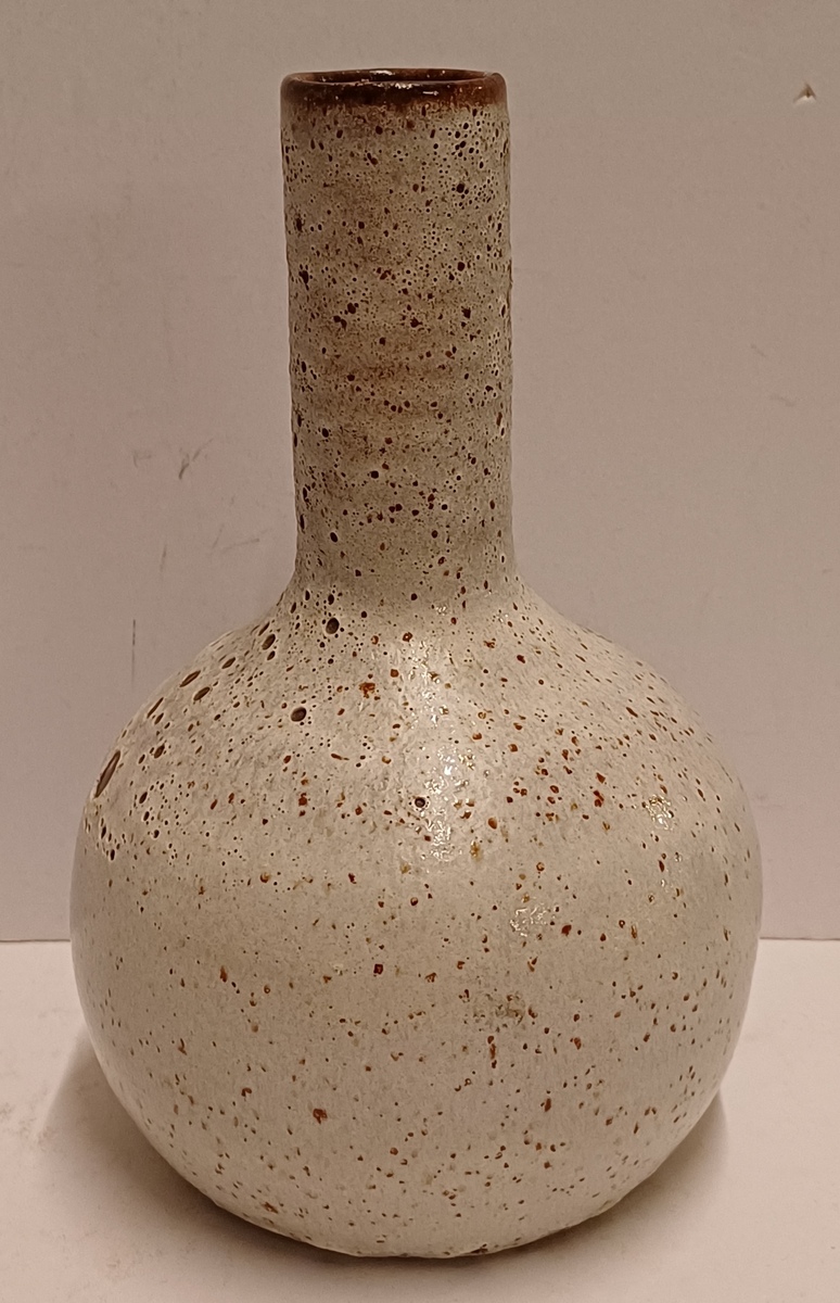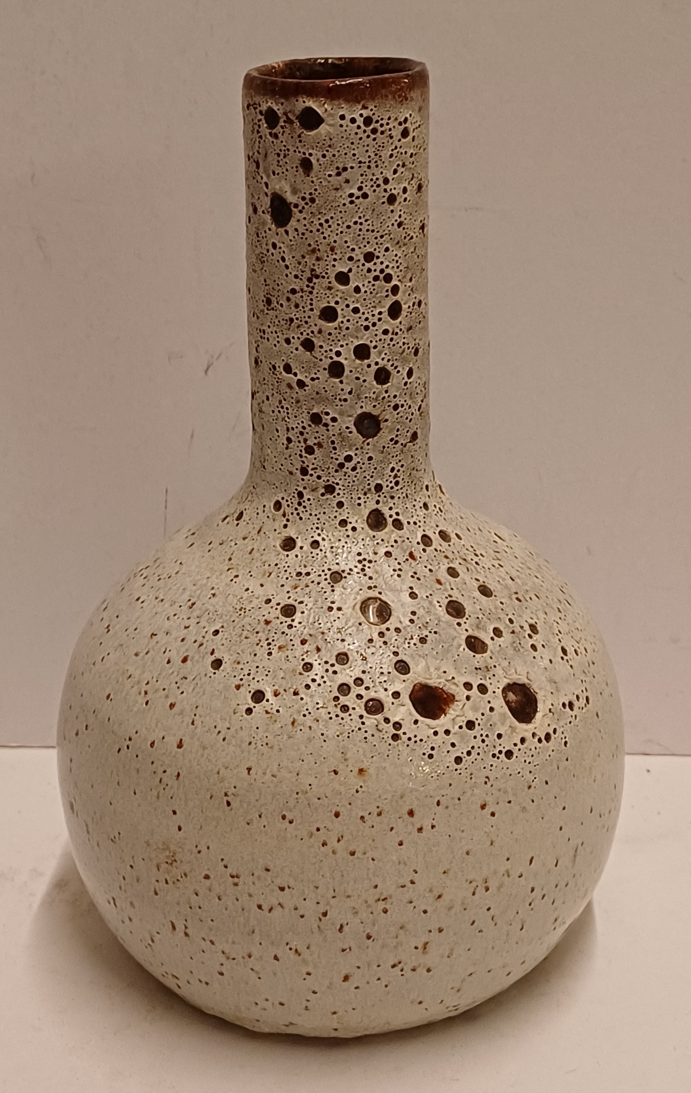Vase à col bombé avec glaçure grise mousseuse. Base avec marque de fabrique.