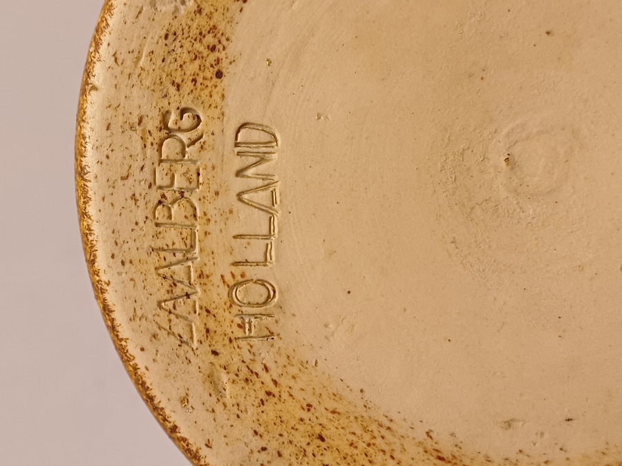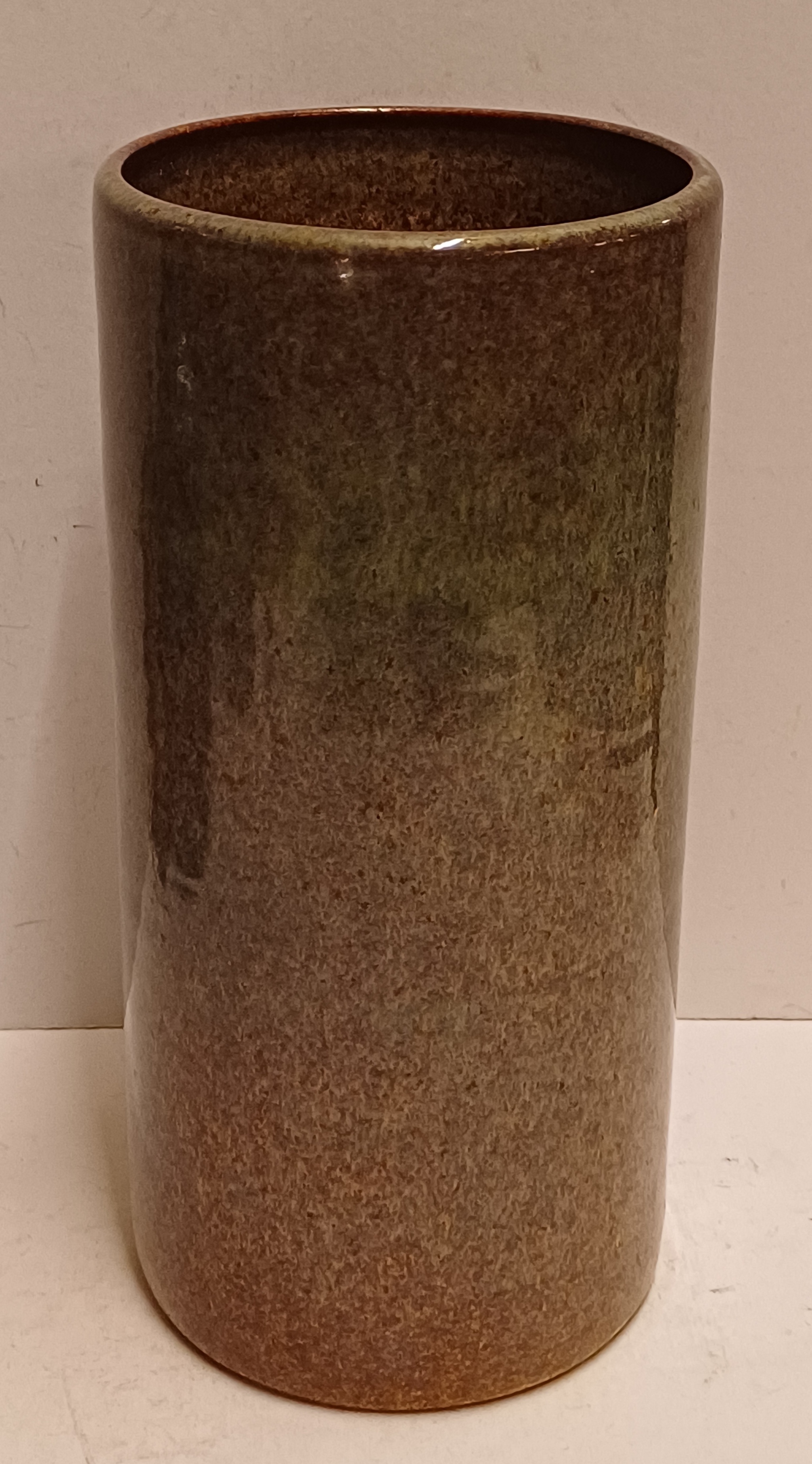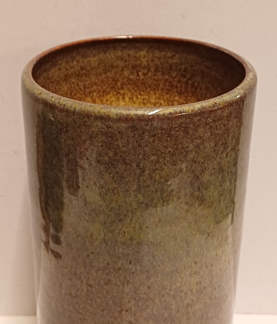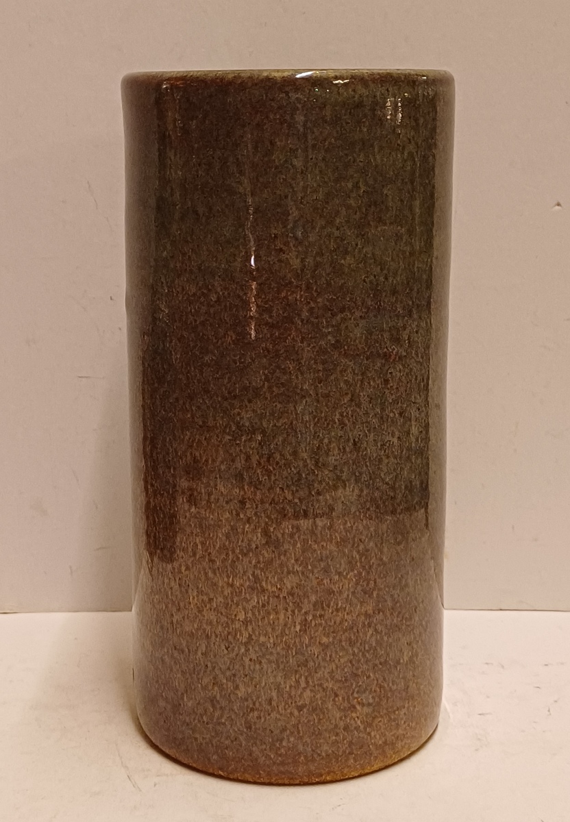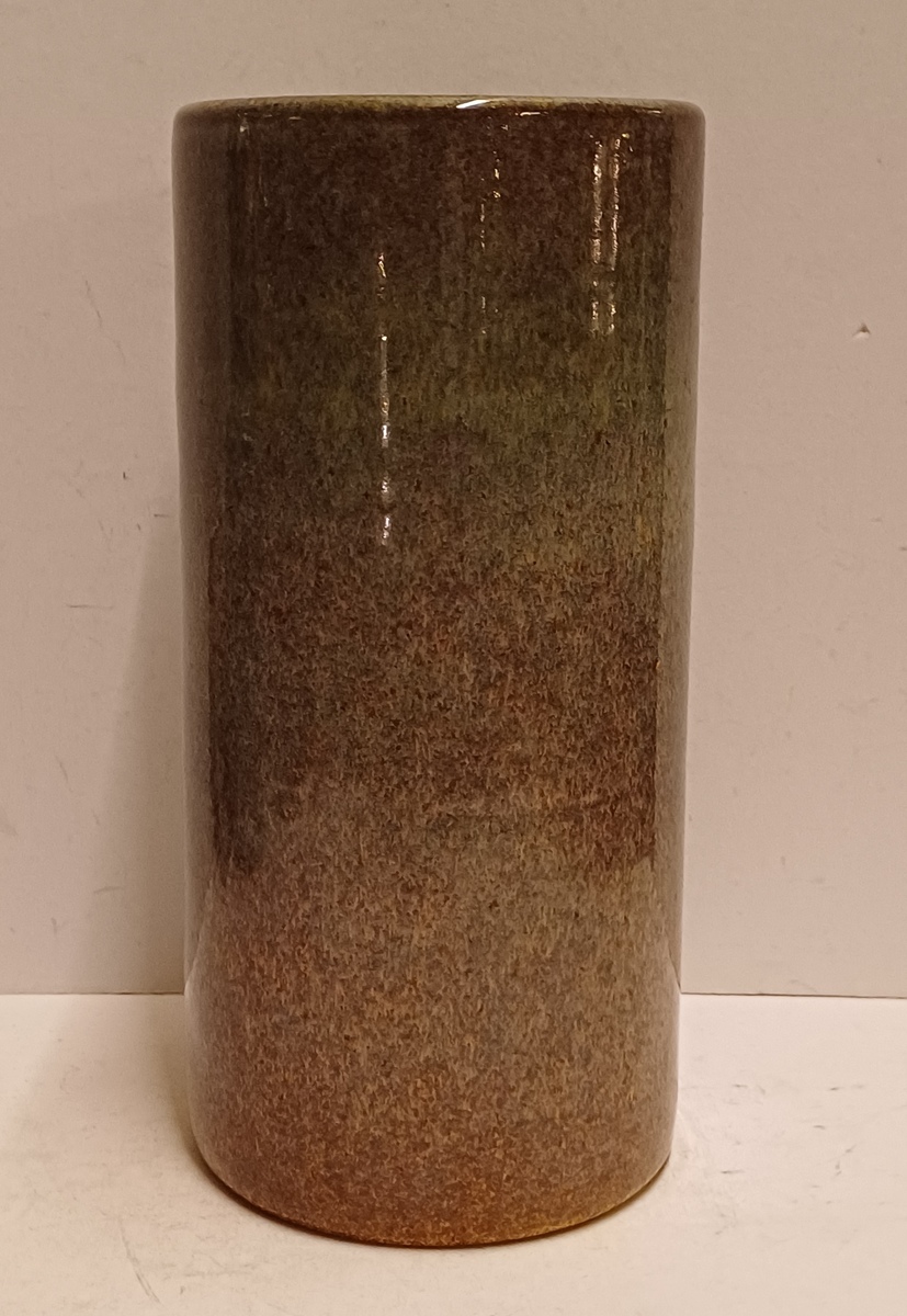 Cilindrische vaas met meerkleurig glazuur Onderzijde met fabrieksmerk.