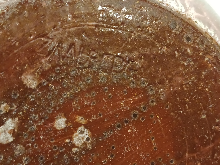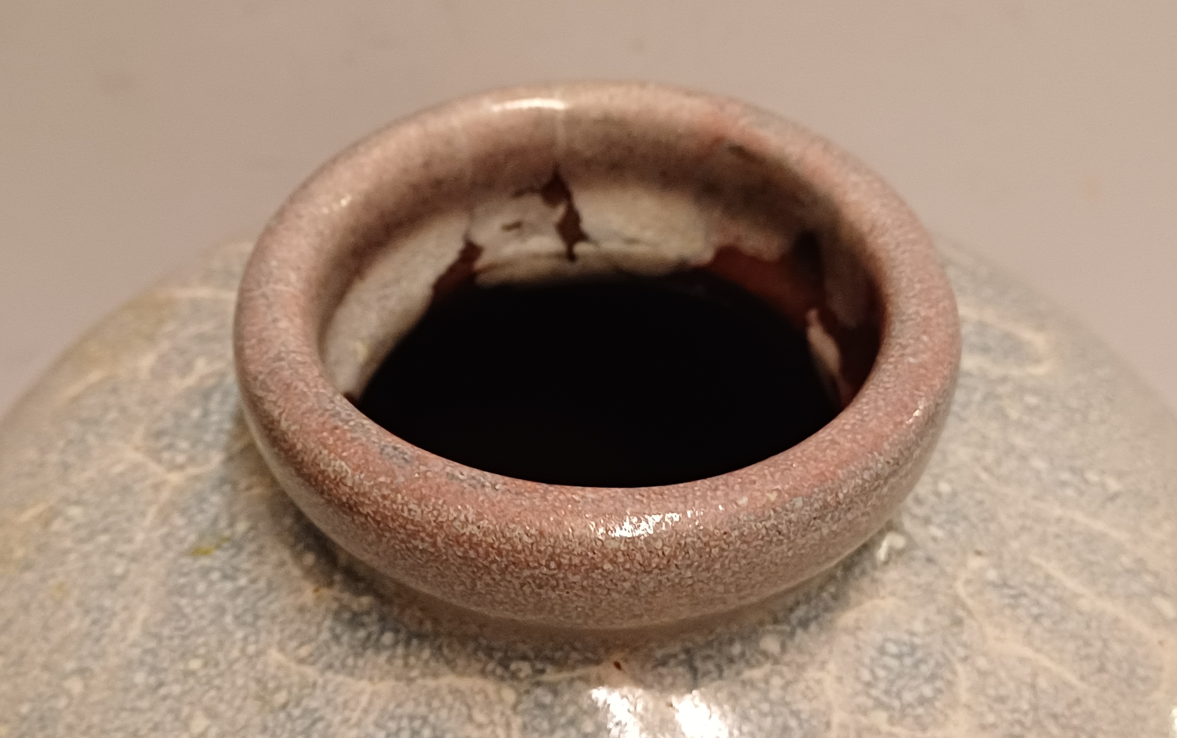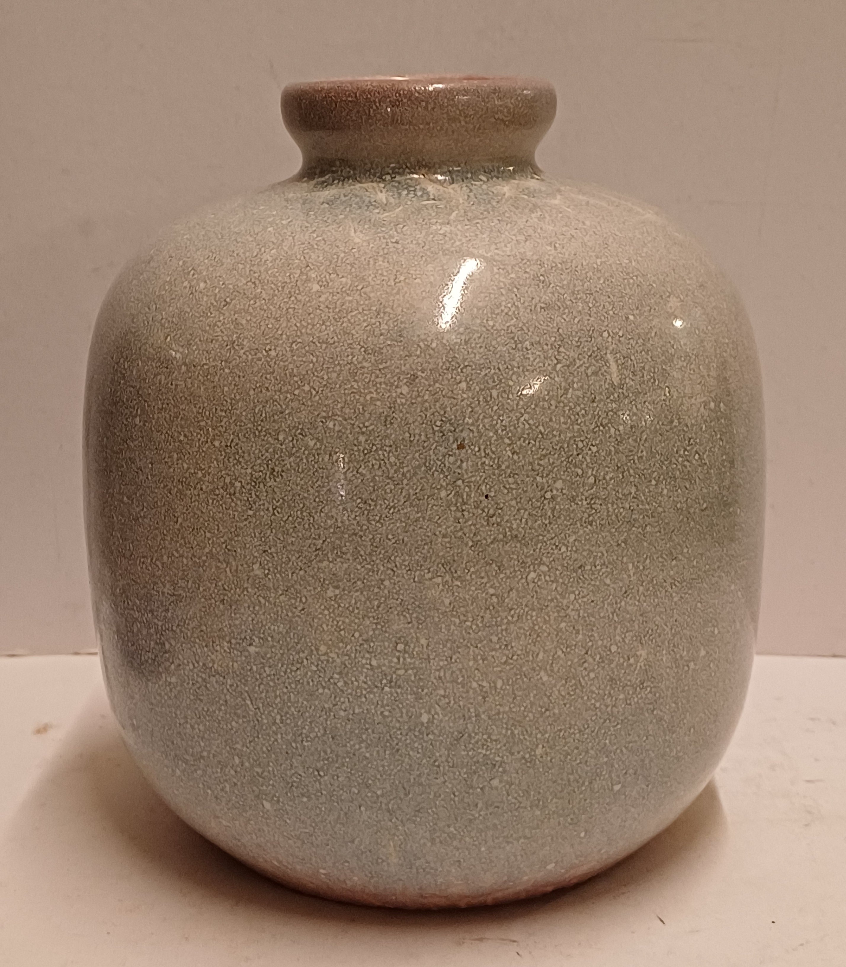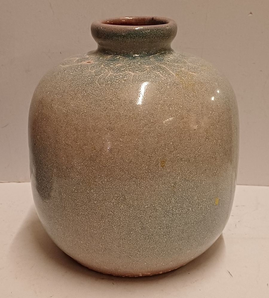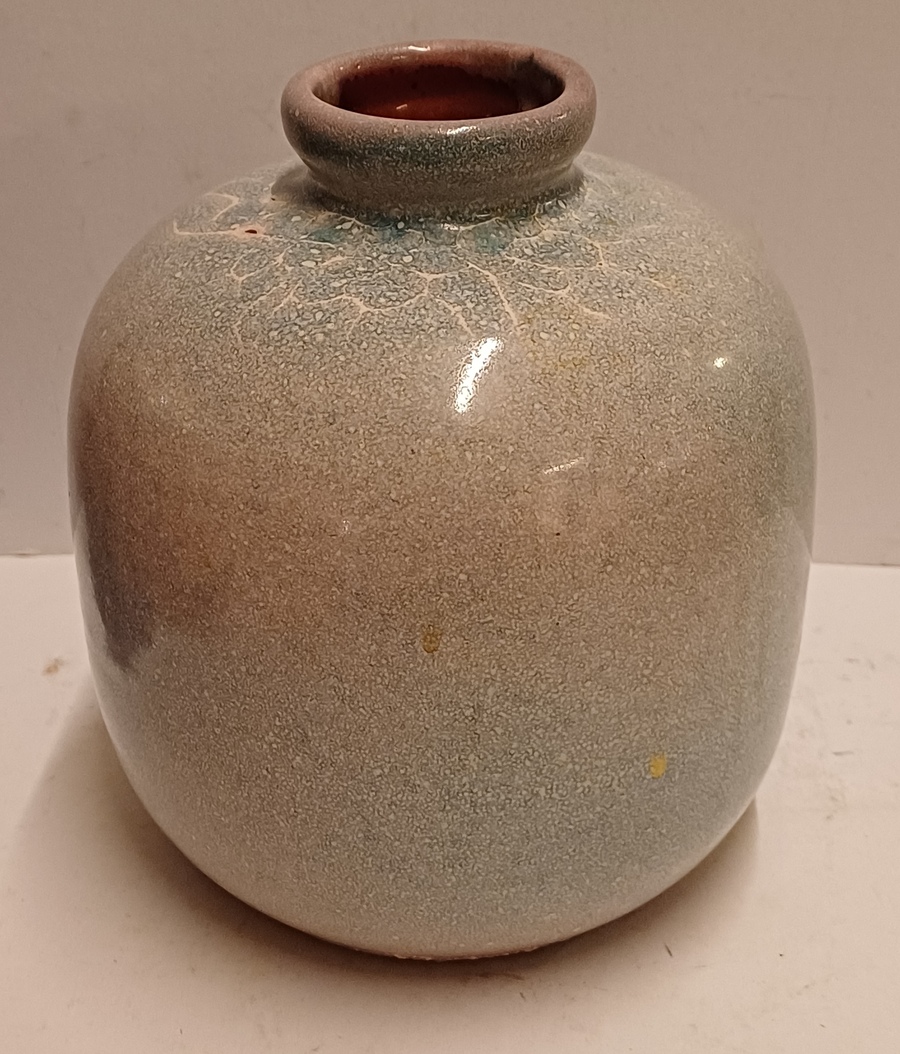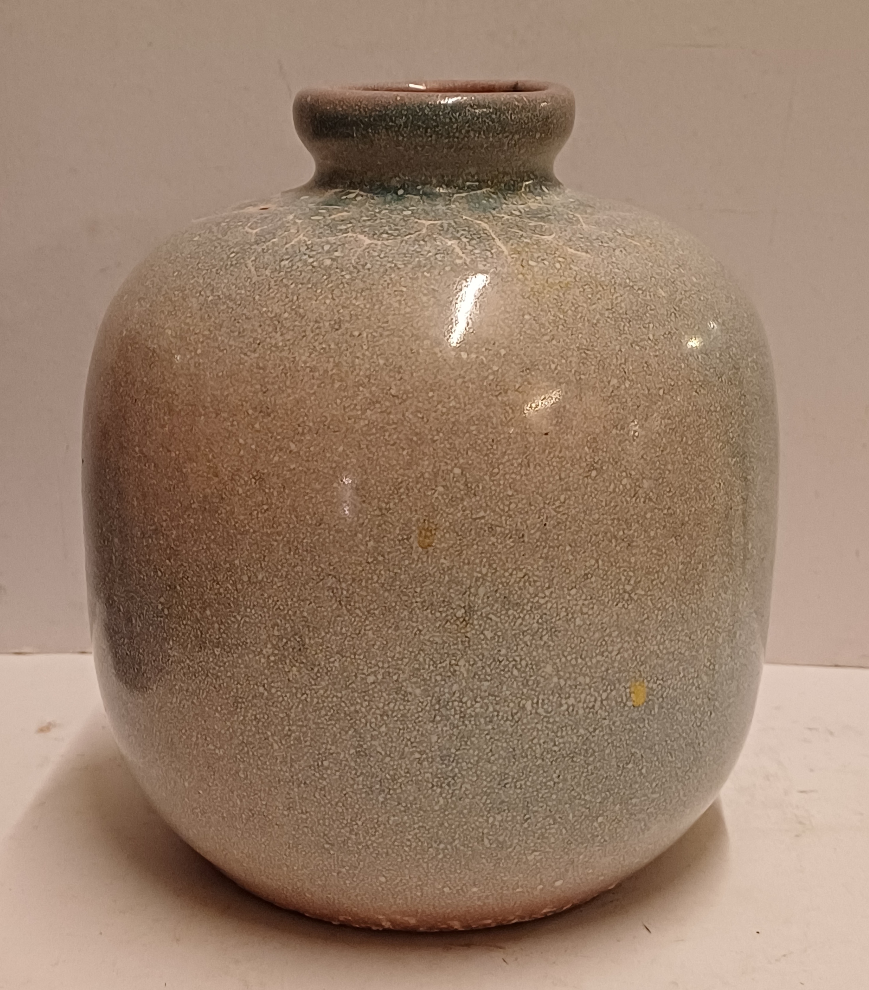 Aardewerken vaas met gespikkelde glazuur. Onderzijde gemerkt.
